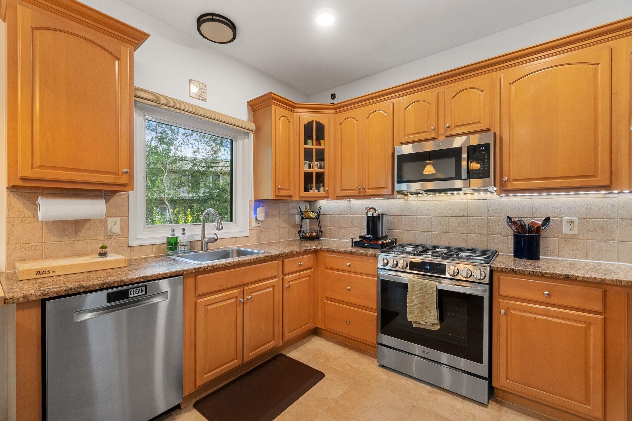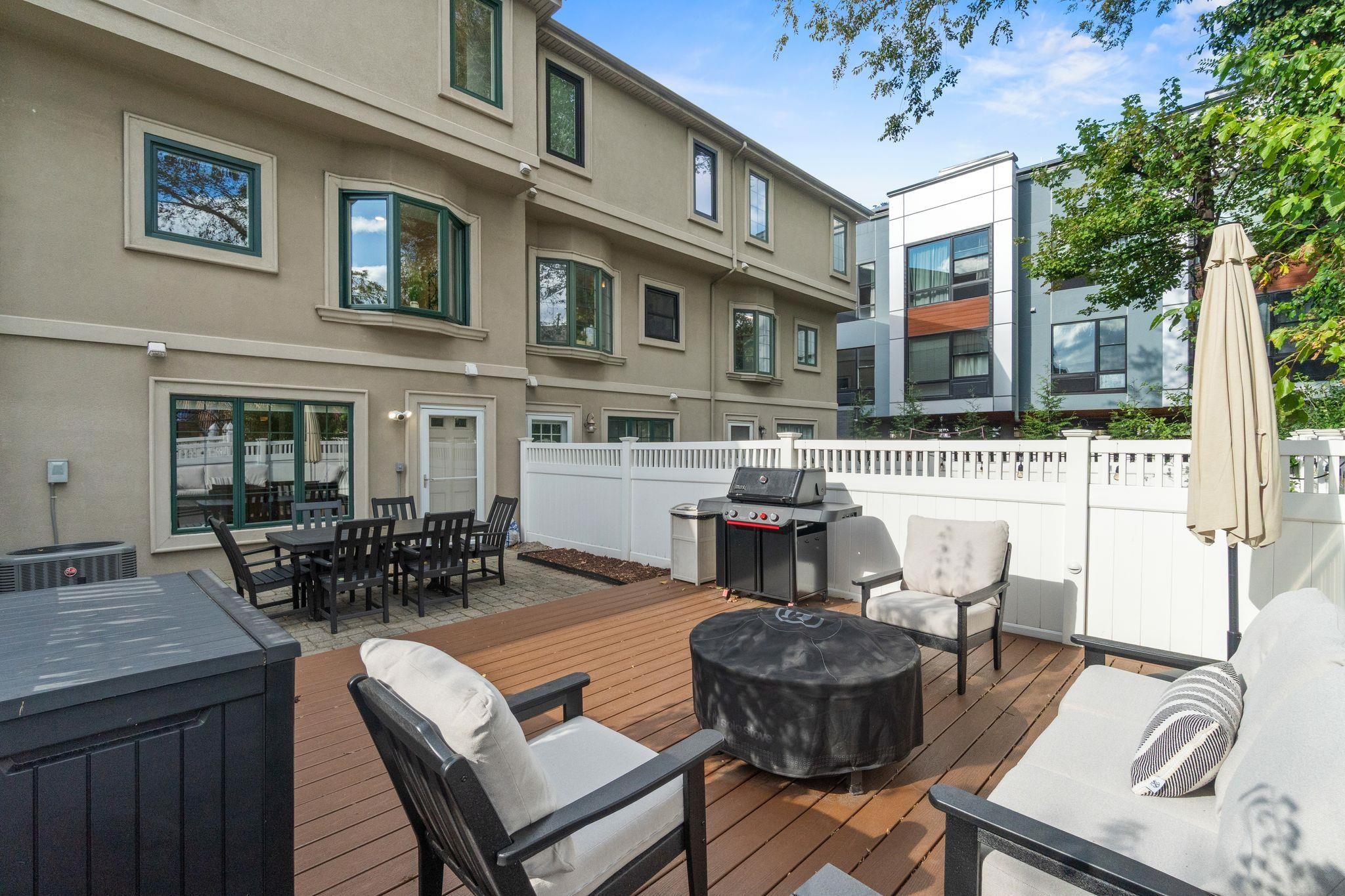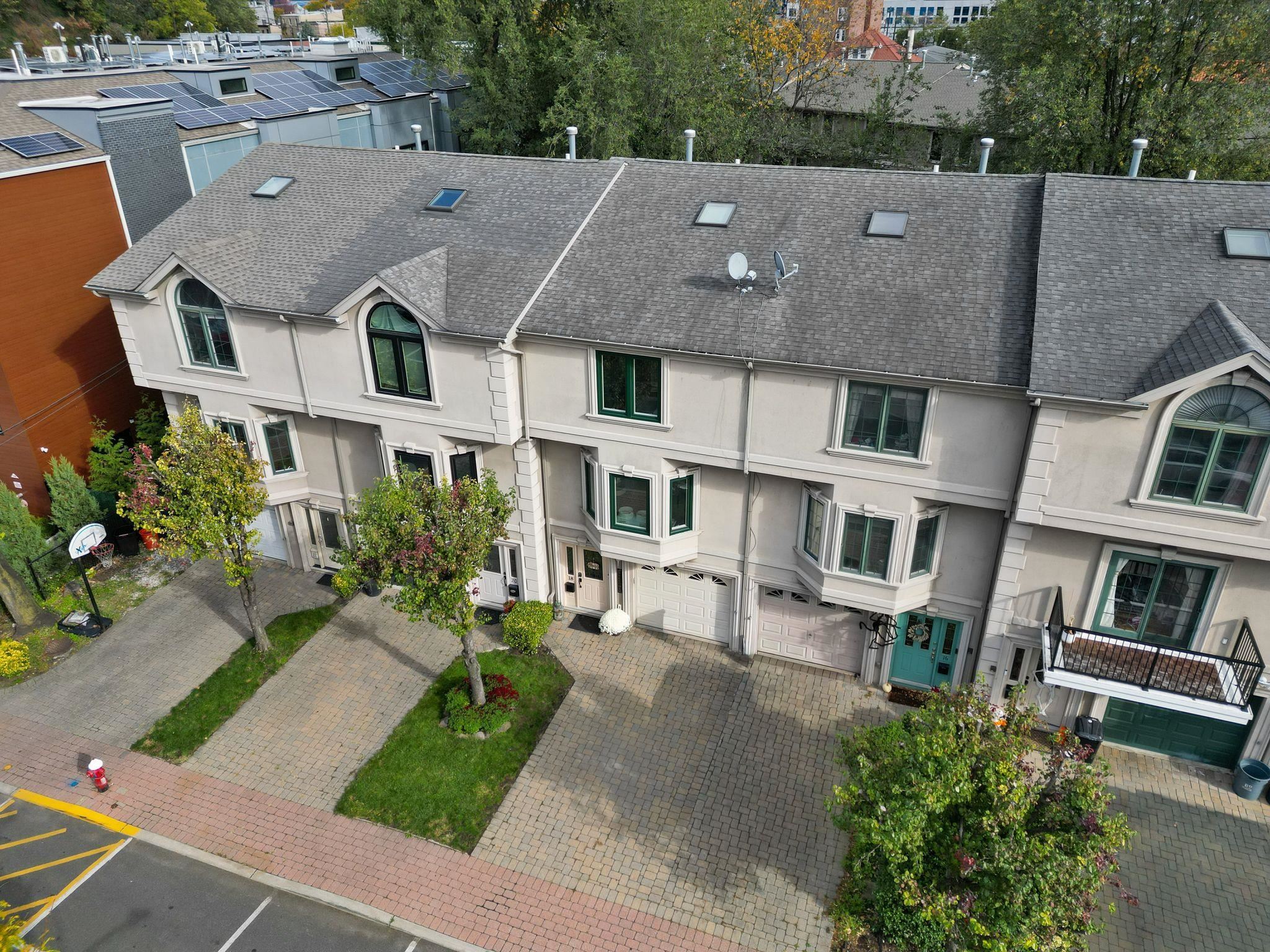 Experience the perfect balance of urban convenience and suburban comfort in this elegant three-bedroom, three-and-a-half-bath smart townhome offering nearly 2,000 square feet of refined living space just minutes from Manhattan and Hoboken. Across three levels, the home showcases custom woodworking, elegant trim, designer finishes, and integrated smart-home features. The entry floor includes a welcoming foyer, updated GE washer and dryer (2024), a full bath, and a spacious bonus room that opens to a private backyard with a Trex composite deck that is perfect for outdoor dining and entertaining. Wainscoting continues up the stairs to the main level, which offers open living and dining areas flowing seamlessly into a chef’s kitchen with granite countertops, ample cabinetry, and high-end stainless-steel appliances. Upstairs, the primary suite features vaulted ceilings, custom built-ins, and an updated ensuite bath, along with two additional bedrooms and another full bath. Smart-home technology includes dimmer switches, a Nest thermostat on each floor, a smart doorbell, and a backyard floodlight camera, plus Ethernet wiring in key locations throughout the home. Additional upgrades include Andersen Series 400 windows (2025), a new central air-conditioning system (2023), LED recessed lighting, newer kitchen appliances and GE washer and dryer (2024). Set on a quiet residential street across from a playground, this home offers peaceful living with private parking, a single-car garage, and driveway. All just minutes to Midtown Manhattan via NJ Transit and within easy walking distance of Hoboken’s waterfront, parks, and dining.