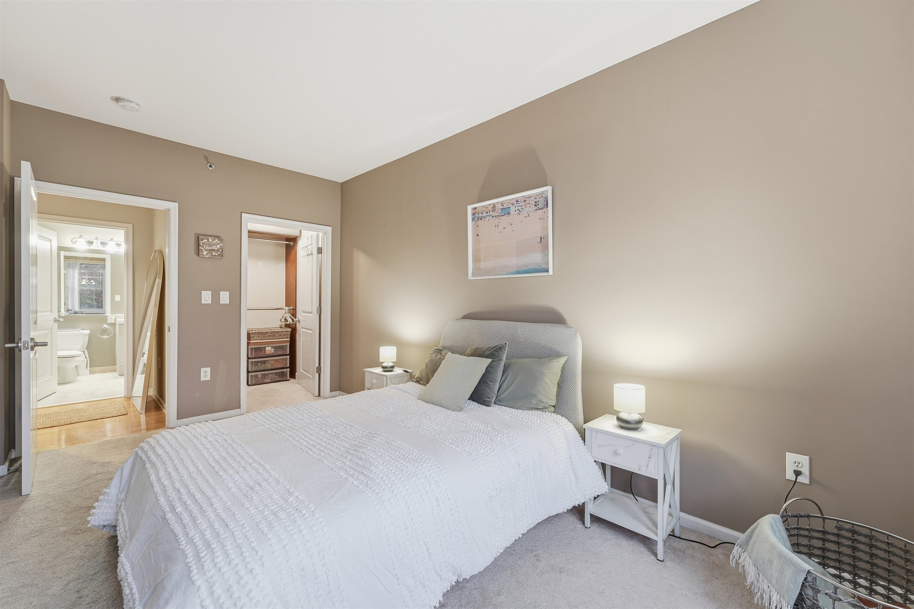 Live the luxe life at this waterfront 1 BR Condo in Port Liberte! This spacious home is South-facing and serene, featuring a private balcony with treetop views, a gracious floorplan, and 1 car assigned parking. Live comfortably at this community with unparalleled amenities including a private riverfront walking trail with NYC Skyline and River views. Experience elevated waterfront living in this meticulously maintained home. Step into a sunlit living space featuring an open-concept layout that seamlessly connects the living and dining areas. The modern kitchen is equipped with stainless steel appliances, including a gas range, microwave, dishwasher, catering to both everyday living and entertaining. The bedroom is king-sized with a huge customized walk-in closet and room for a sitting area. Additional highlights include an in-unit washer and dryer, customized closets and intercom system. Community Amenities: Port Liberte is a gated, European-inspired waterfront enclave offering residents access to: Two outdoor swimming pools- the infinity pool has direct views of NYC! Tennis and basketball courts, a 4,600-square-foot fitness center with saunas and massage rooms Clubhouse, playground, and dog park, and optional deep-water slips for seasonal docking of boats and watercraft. On-site shuttle service to Grove Street PATH Station and Paulus Hook ferry terminal. Monthly maintenance fees cover heat, water, hot water, parking, daily trash removal, snow removal, and full access to all community amenities.