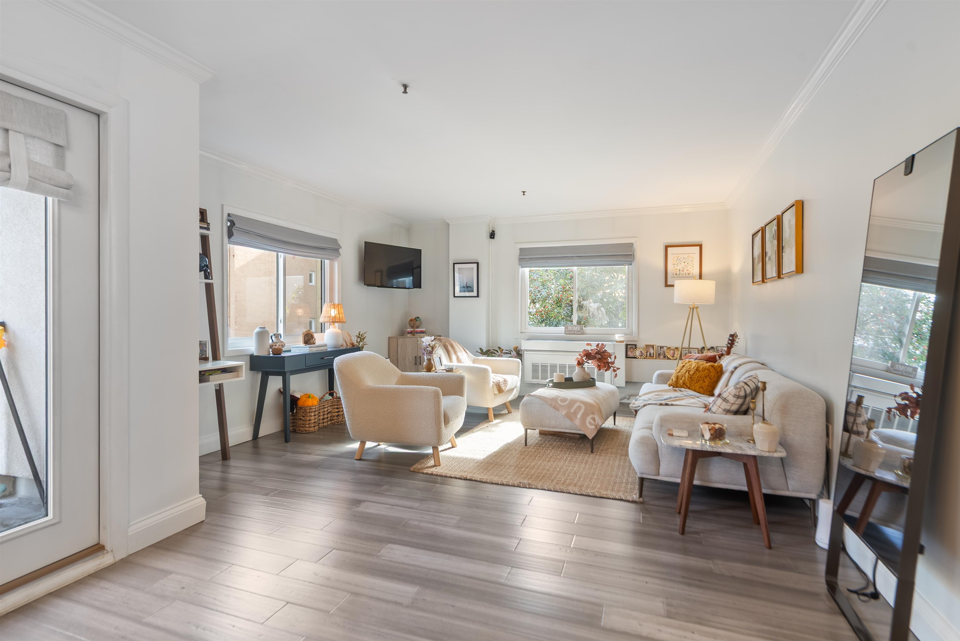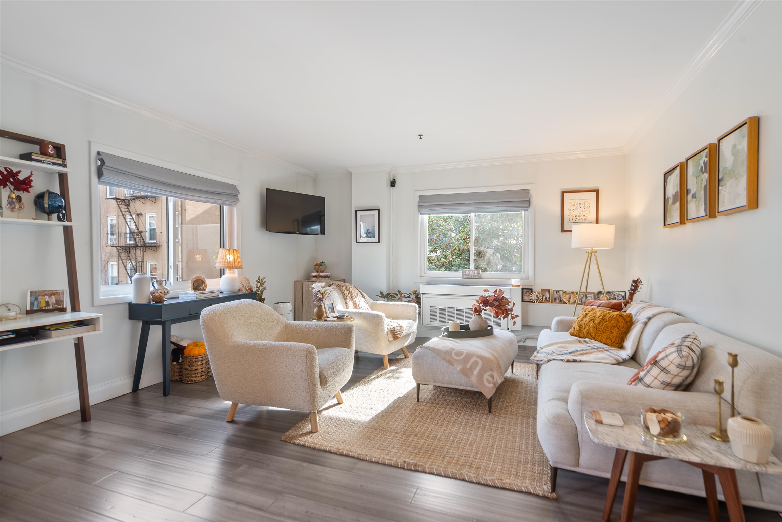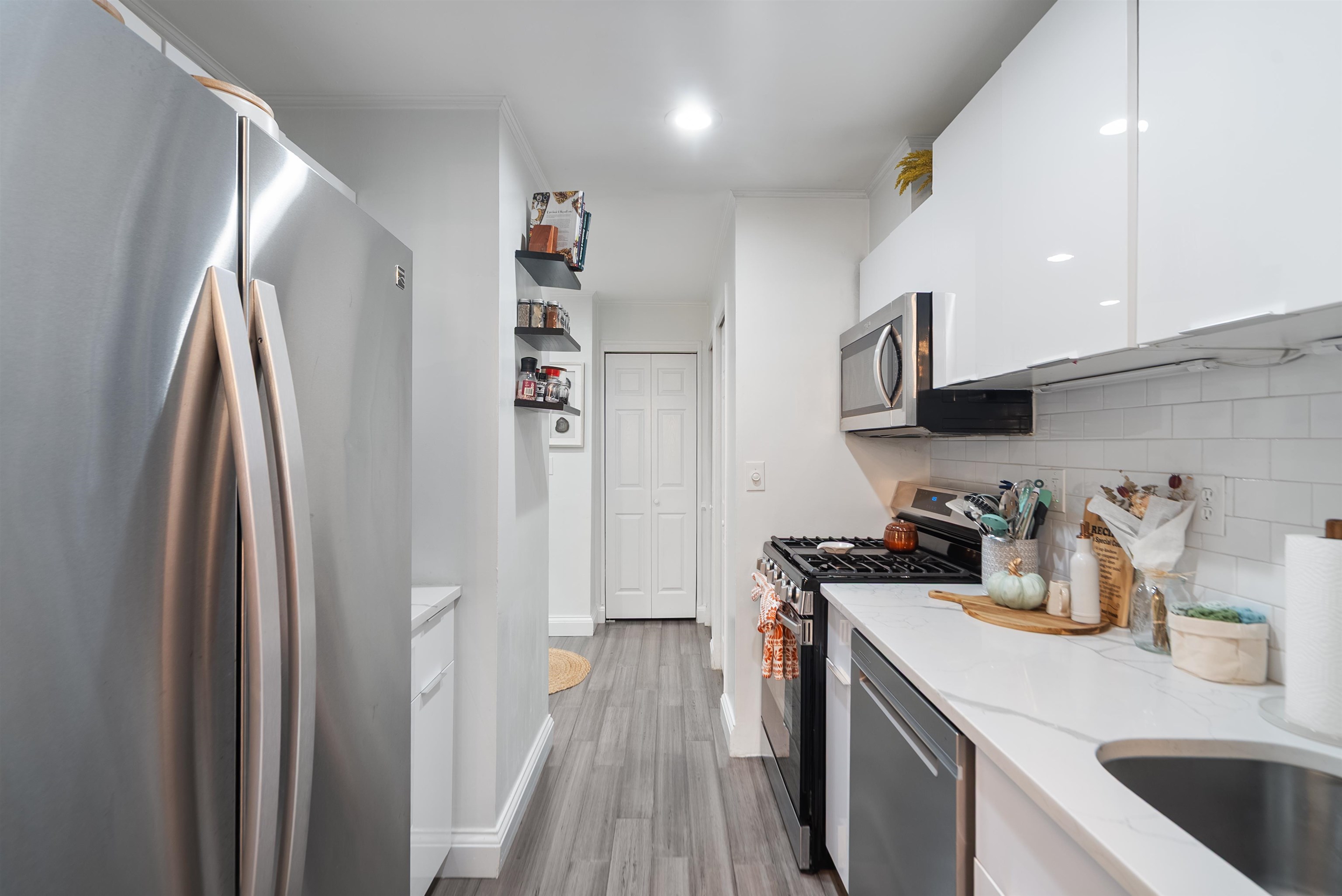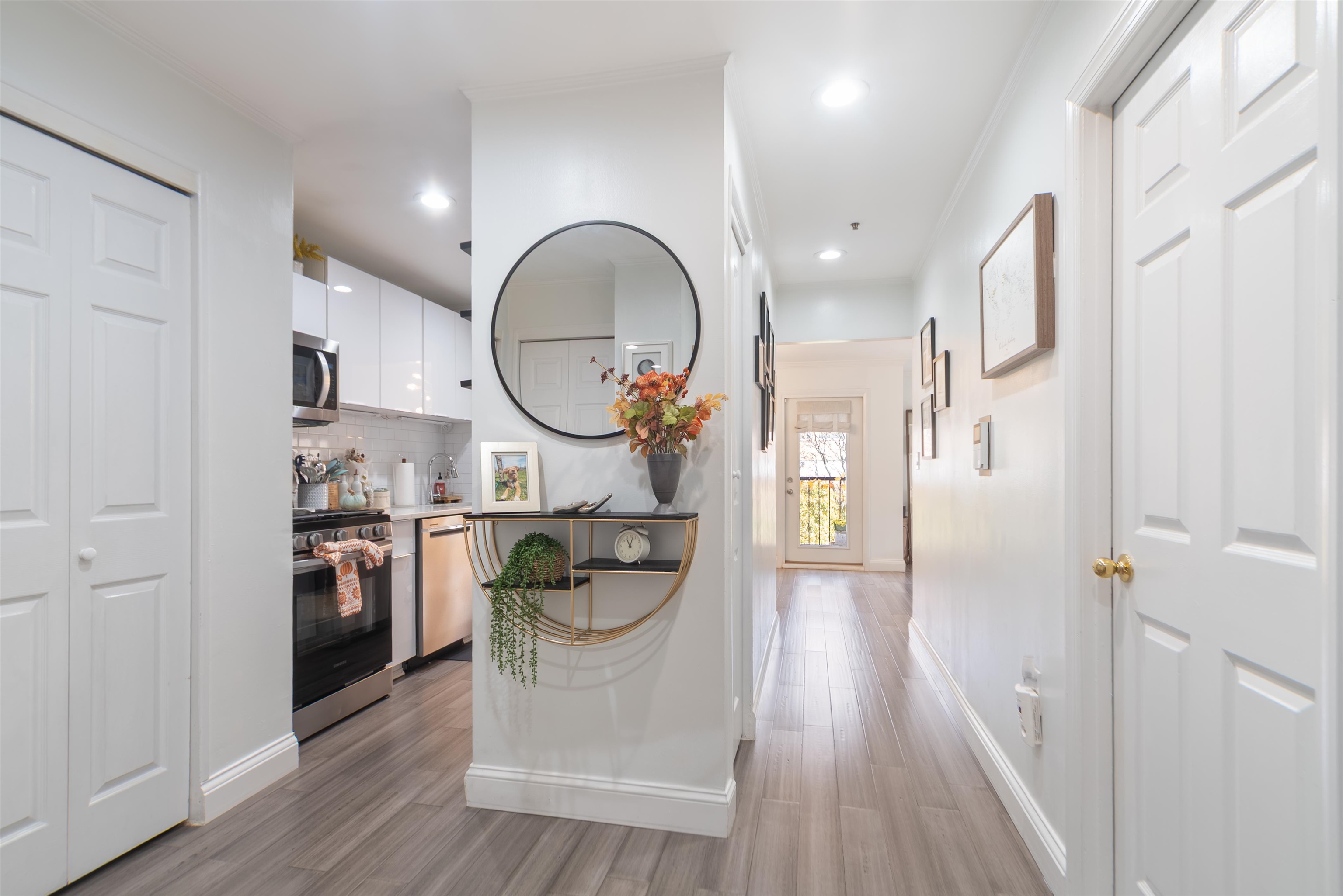 Welcome home to this beautifully updated 1-bedroom, 1-bath with deeded parking in the highly sought-after Hamilton Park neighborhood of downtown Jersey City. Spanning approximately 800 square feet, this bright and spacious unit offers the perfect blend of comfort, style, and convenience. The inviting open layout features a modern kitchen with stainless-steel appliances and an updated bathroom, complemented by ample storage—including three bedroom closets (one being a large walk-in) and four additional closets throughout the unit. Enjoy the ease of in-unit laundry and the luxury of your own private terrace, perfect for morning coffee or evening relaxation. This charming elevator building offers additional amenities including a fitness center and a shared rooftop with skyline views. An unbeatable find in this coveted neighborhood just moments from Hamilton Park, local cafes, shops, and easy NYC transportation.