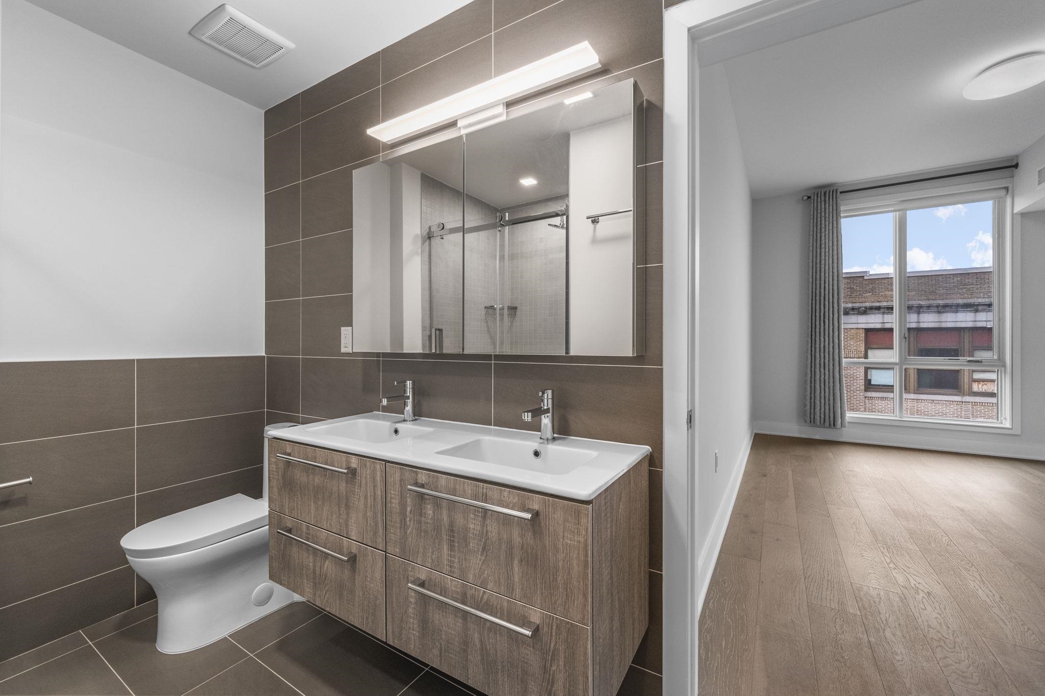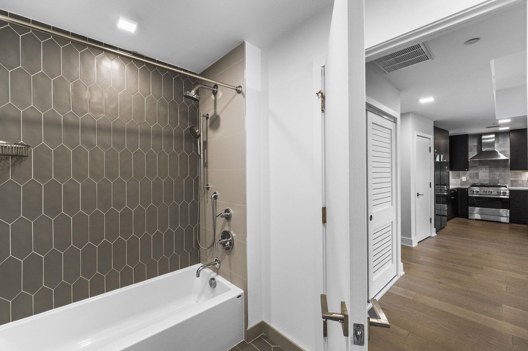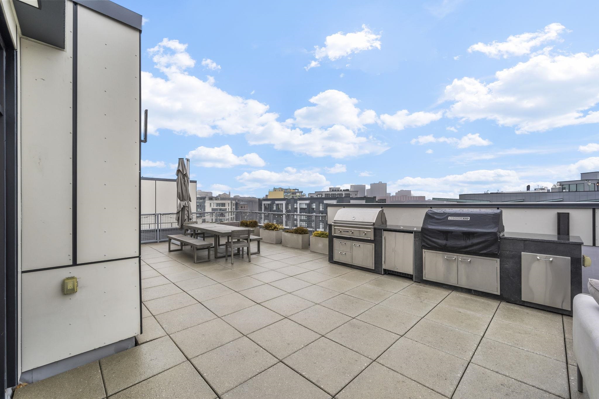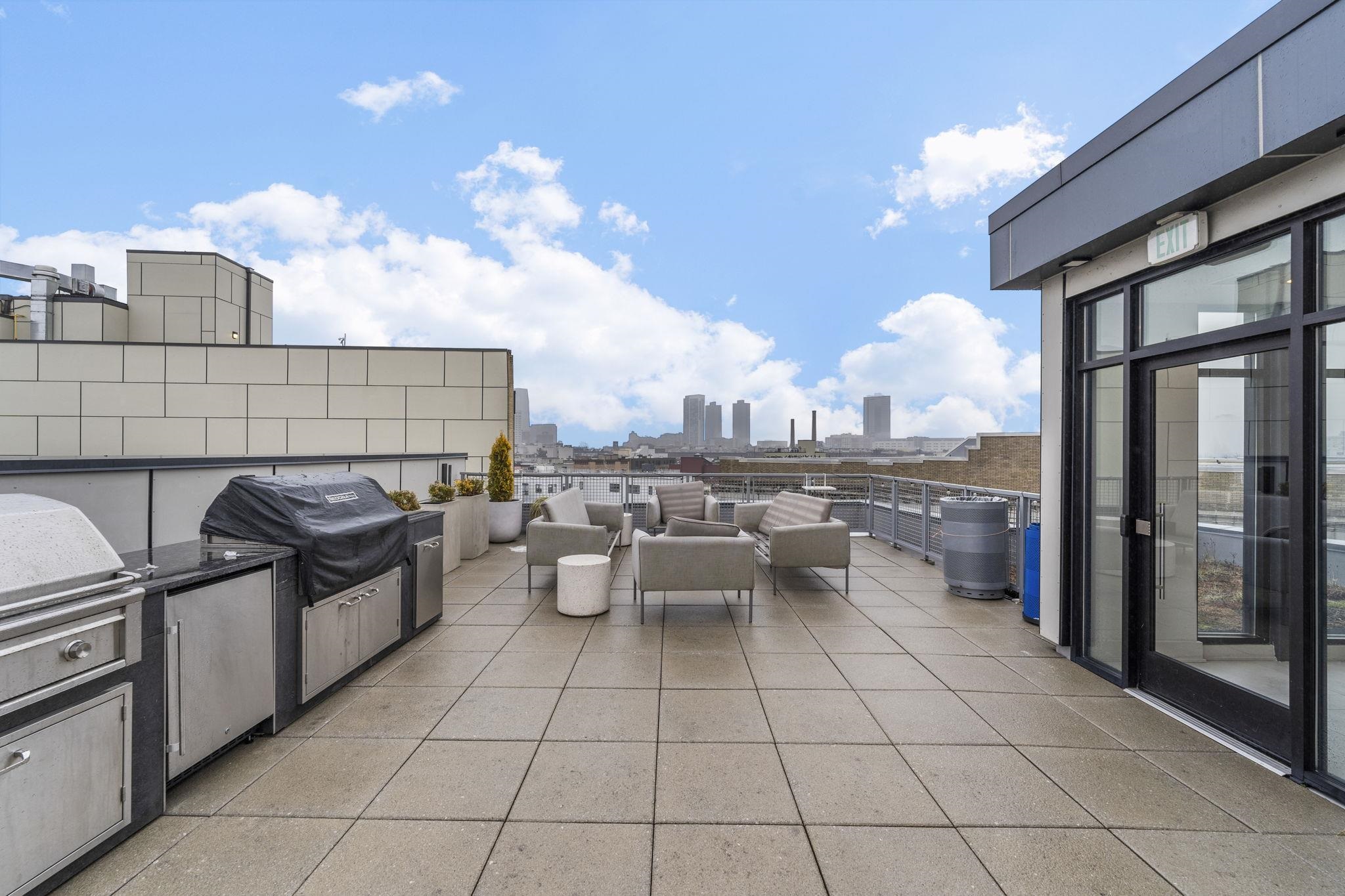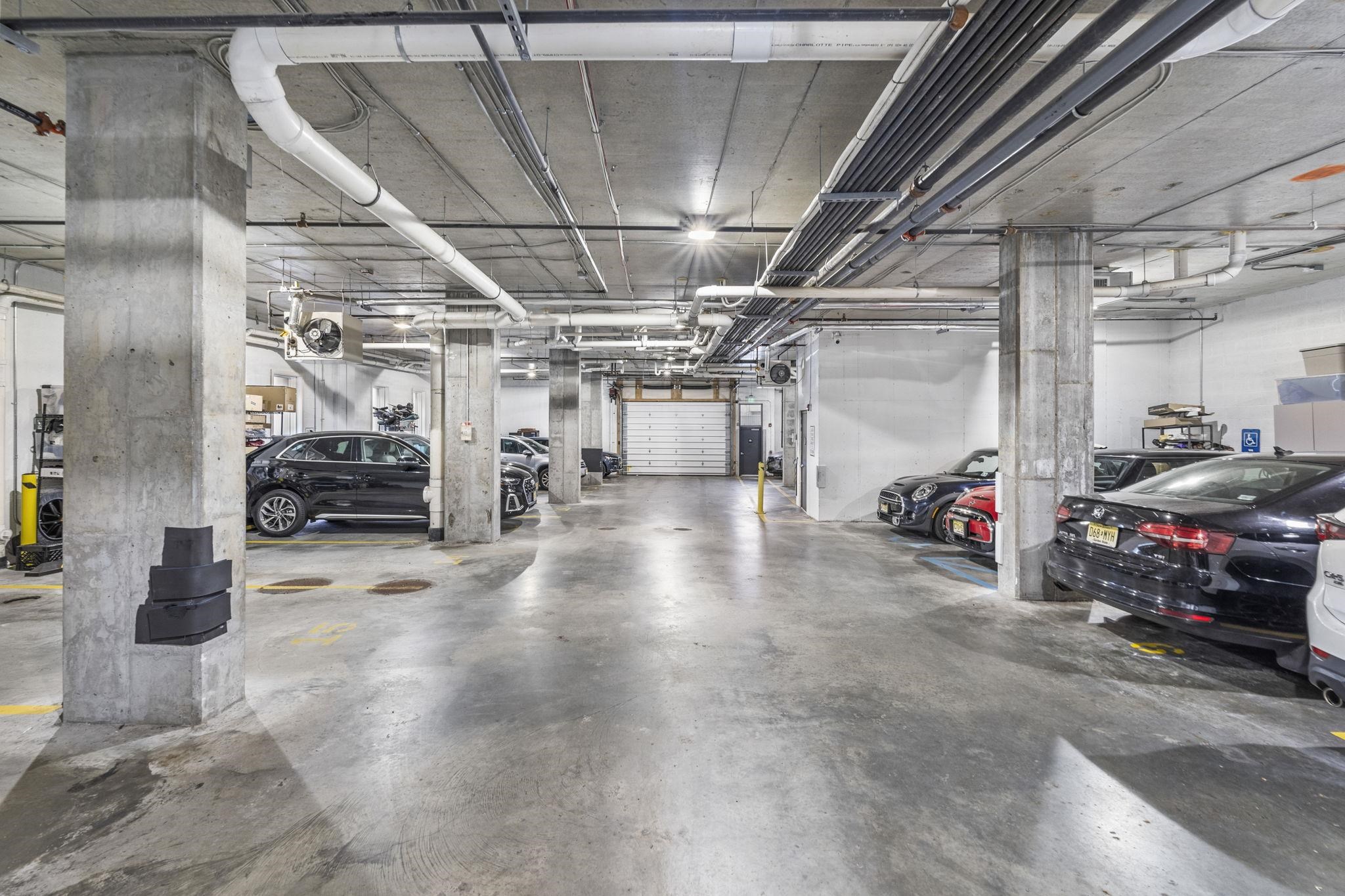 Fabulous 2 bedroom 2 full bath home with a garage space very well maintained by the first owner like new. The layout is ideal for both easy access and privacy, with two spacious bedrooms and bathrooms on the two sides of the big center area connecting the living room, dining room and the kitchen. The 10-feet ceiling height and big windows adds to the comfort of abundant sunlight and airy atmosphere. The spacious walk-in closet attached to the master bedroom fully furnished with wooden shelves, together with the closet at the entry and in the second bedroom, offer an ample and well-organized complete storage solution. The appliances are both high-end and practical, topped by a powerful separately vented range hood, a microwave conveniently hybridded with a convect oven (air fryer) and a fridge of exceptional storage division and capacity. To complete, the unit has central AC and heat with Nest control and full-size washer/dryer. Window treatments are carefully figured out as well: both shades and curtains are included in the sale. Everything is ready for your easy move-in! The building built in 2020 by Weingarten is steel and concrete between floors, which minimizes your worries about neighbor noises. The 16-unit building has great management by Hunter Homes and stable low HOA fees. The building is equipped with a secure butterfly system, elevator, garage parking, a secure package room, bike storage and a roof garden with couches and grills, where you can invite friends or simply relax yourself. The location is superb for downtown Jersey City life: walking distance to PATH trains (which takes you to Manhattan in 10 minutes), light rail and buses for easy commute; abundant choices of parks, restaurants, groceries, sports centers and entertainments nearby for whichever lifestyle you have.