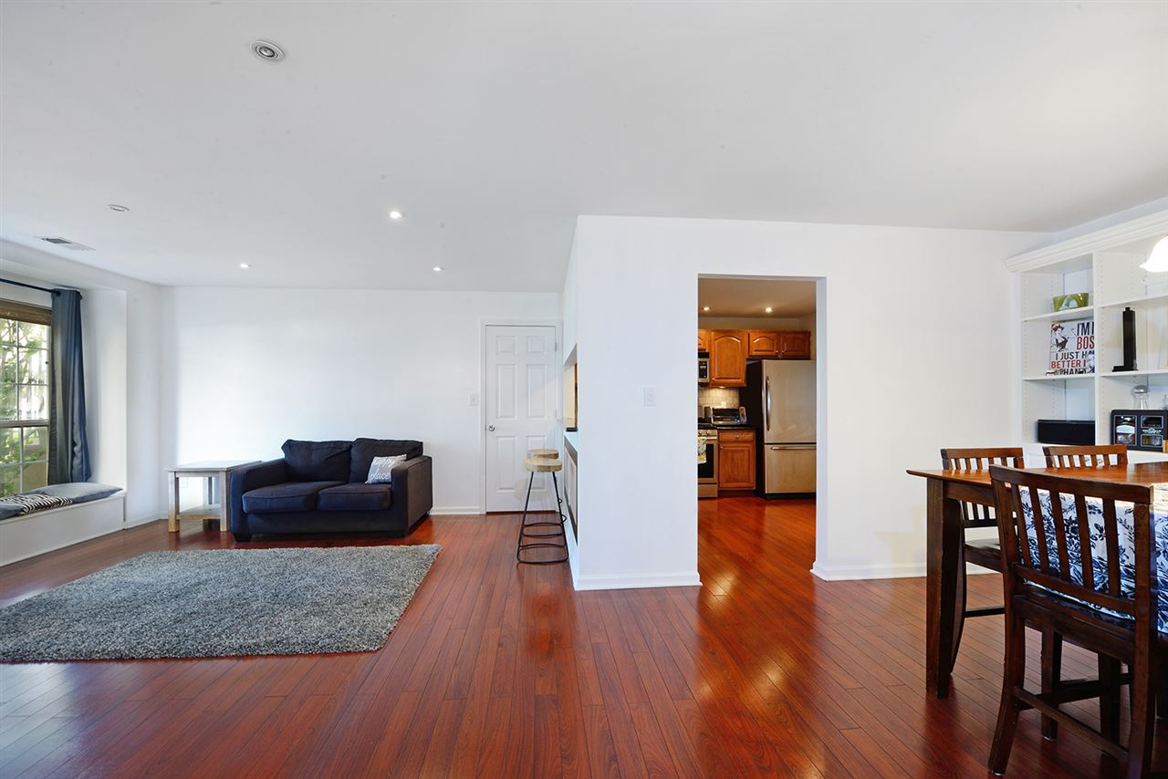 Located on Droyer’s Point in the sought-after private riverfront community of Society Hill, this 3 bedroom, 1 bath ground level home features an open living room and spacious dining area with custom built-in shelving. The kitchen includes stainless steel appliances, black granite countertops, and ample cabinetry. The three bedrooms are bright and sunny with many windows, and each room is large enough to fit a queen or king-sized bed. The bathroom has a double vanity and a large shower/tub. Bonus room can be used as an office or a potential second bath. Plenty of storage throughout with numerous closets. Features include in-unit Whirlpool washer/dryer, and central air heat. Society Hill offers amenities including an in-ground pool, clubhouse, beautiful landscaping and pathways, plenty of guest parking and 24-hour gated security. One assigned parking spot included.