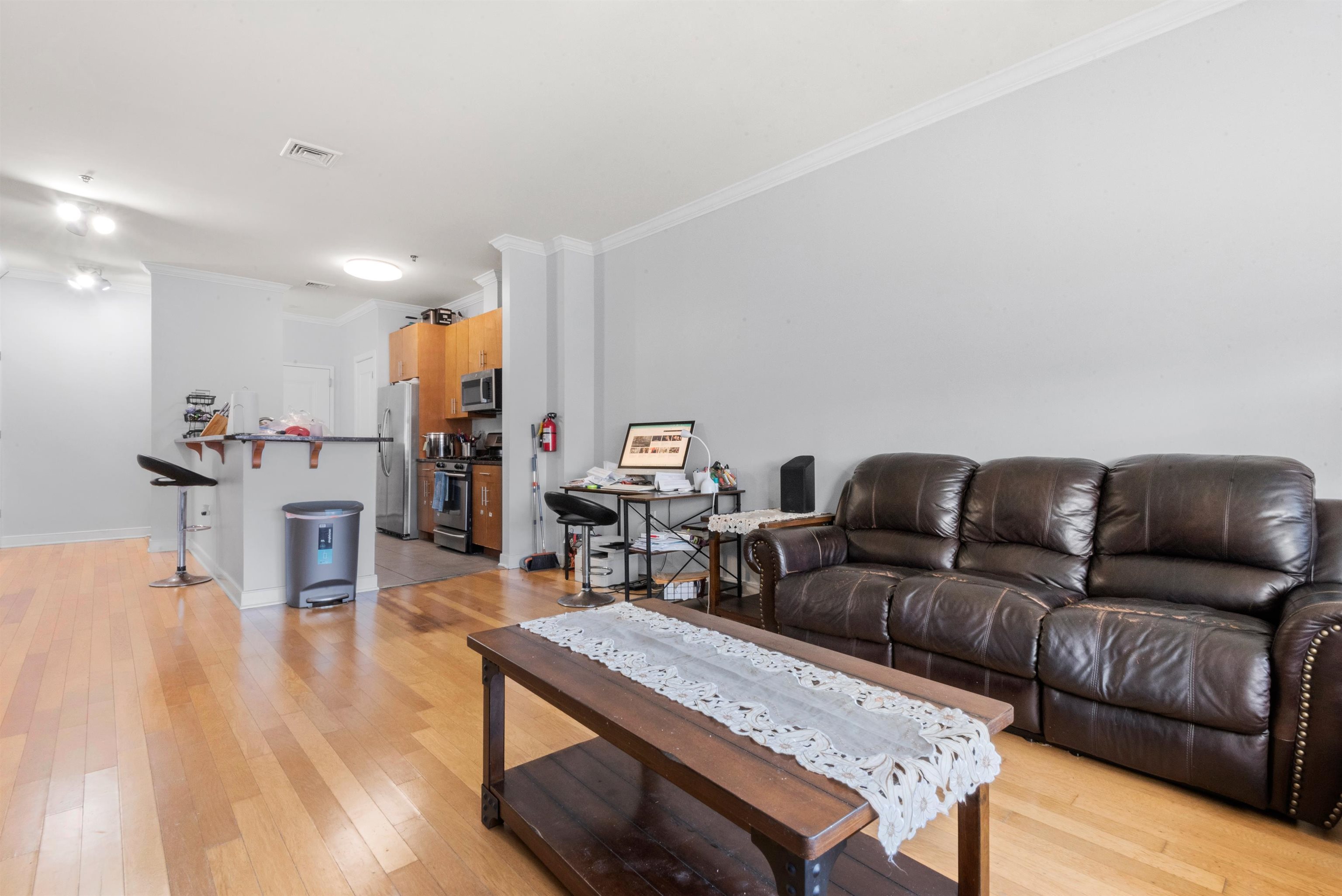 Welcome to the Station at West Side where luxury and location meet!Just steps away from the West Side Avenue Light Rail, this sundrenched, large 1424 square foot 3 bedroom 2 full bath unit features hardwood floors throughout, central A/C, a gourmet kitchen with stainless steel appliances and an ample amount of wooden kitchen cabinetry. Unit also features an ample amount of closet space with a deeded garage parking space along with your own terrace. Take advantage of a community service room which features a fitness center. Schedule your showing today and become a part of the Jersey City growth! Don’t only think of this as a beautiful home but along term investment with appreciation with the new construction being built in this section of Jersey City with the light rail steps away for an easy commute into the city! Motivated Seller!!