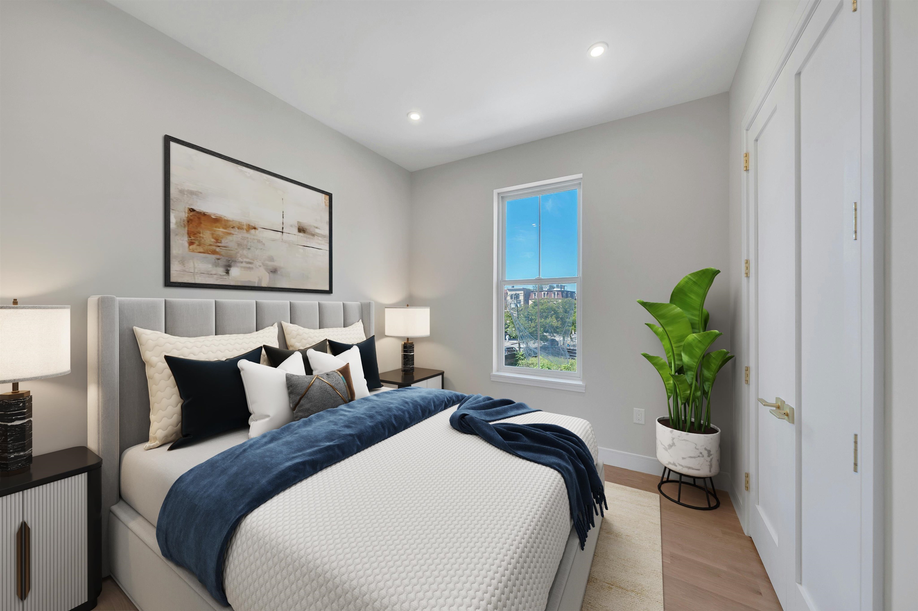 Step inside Unit 1 at 26 Clinton Avenue, an exceptional new-construction condominium offering sophisticated design, elevated finishes, and modern functionality in the heart of Bergen-Lafayette. Spanning 1,840 sq ft, this three-bedroom, two-and-a-half-bath residence blends clean architectural lines with warm textures. 10-footceilings, 8-foot doors, and white oak hardwood floors create an expansive, light-filled atmosphere that feels inviting at every hour of the day. The chef’s kitchen is a stunning centerpiece, featuring Fabuwood Luna cabinetry, a Pistachio island, and quartz countertops and backsplash. Brass fixtures and hardware lend a timeless elegance that perfectly complements the home’s modern design. Each bathroom is carefully curated with backlit designer mirrors and premium finishes, creating a sophisticated, spa-like feel. All bedrooms are generously sized with abundant natural light, while primary suites feature private balconies and en-suite bathrooms for a touch of luxury and privacy. Enjoy two side-by-side covered parking spaces—a rare luxury in this neighborhood—ensuring no vehicle ever blocks the other. Additional highlights include brand-new Rheem HVAC systems, 40-gallon power vent hot water tanks, and energy-efficient construction with Andersen 100 series windows throughout. Set in Bergen-Lafayette—Jersey City’s fastest-growing and most rapidly appreciating neighborhood—this location is surrounded by a wave of investment, development, and community growth. 26 Clinton Ave offers the perfect balance of urban convenience and long-term value.