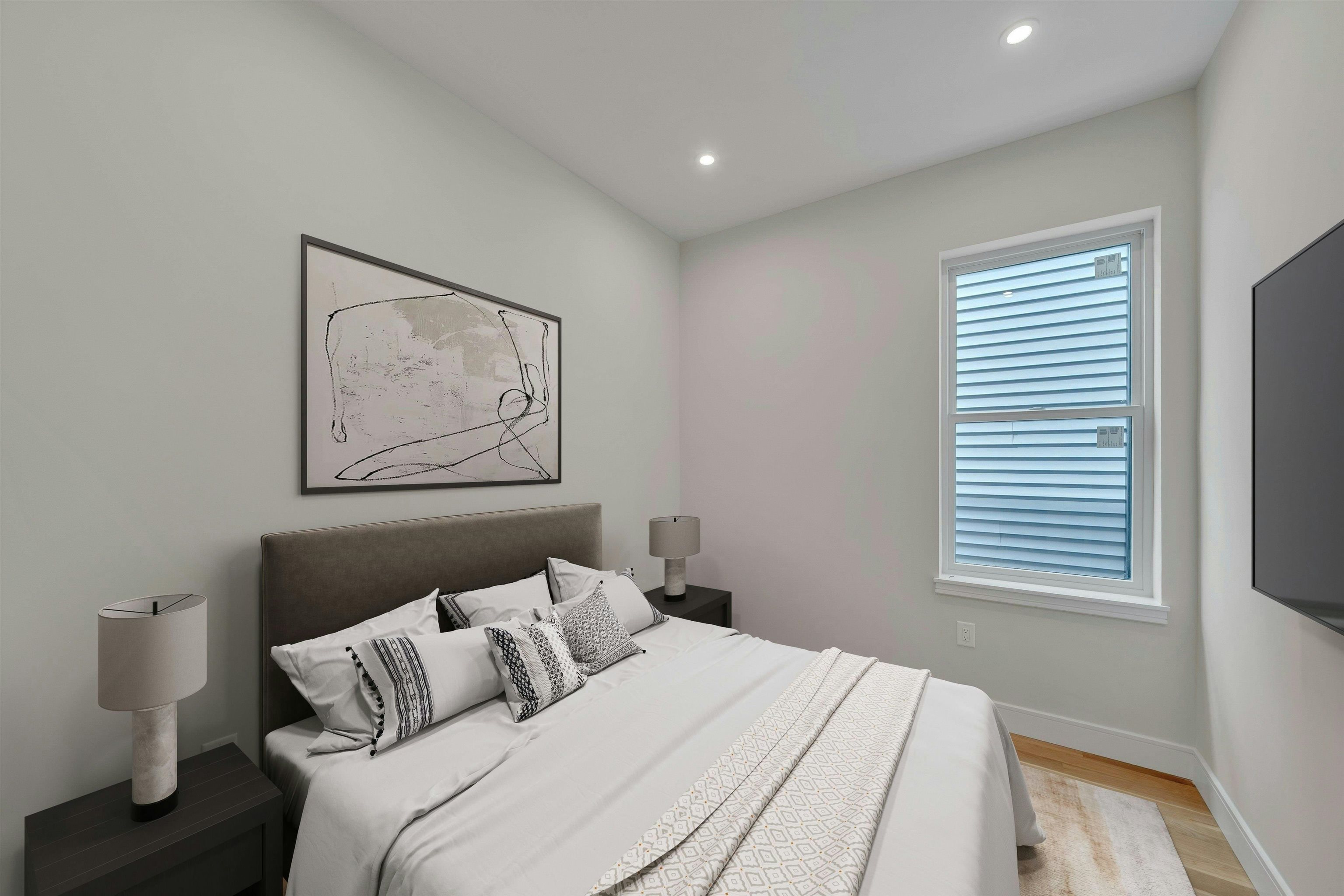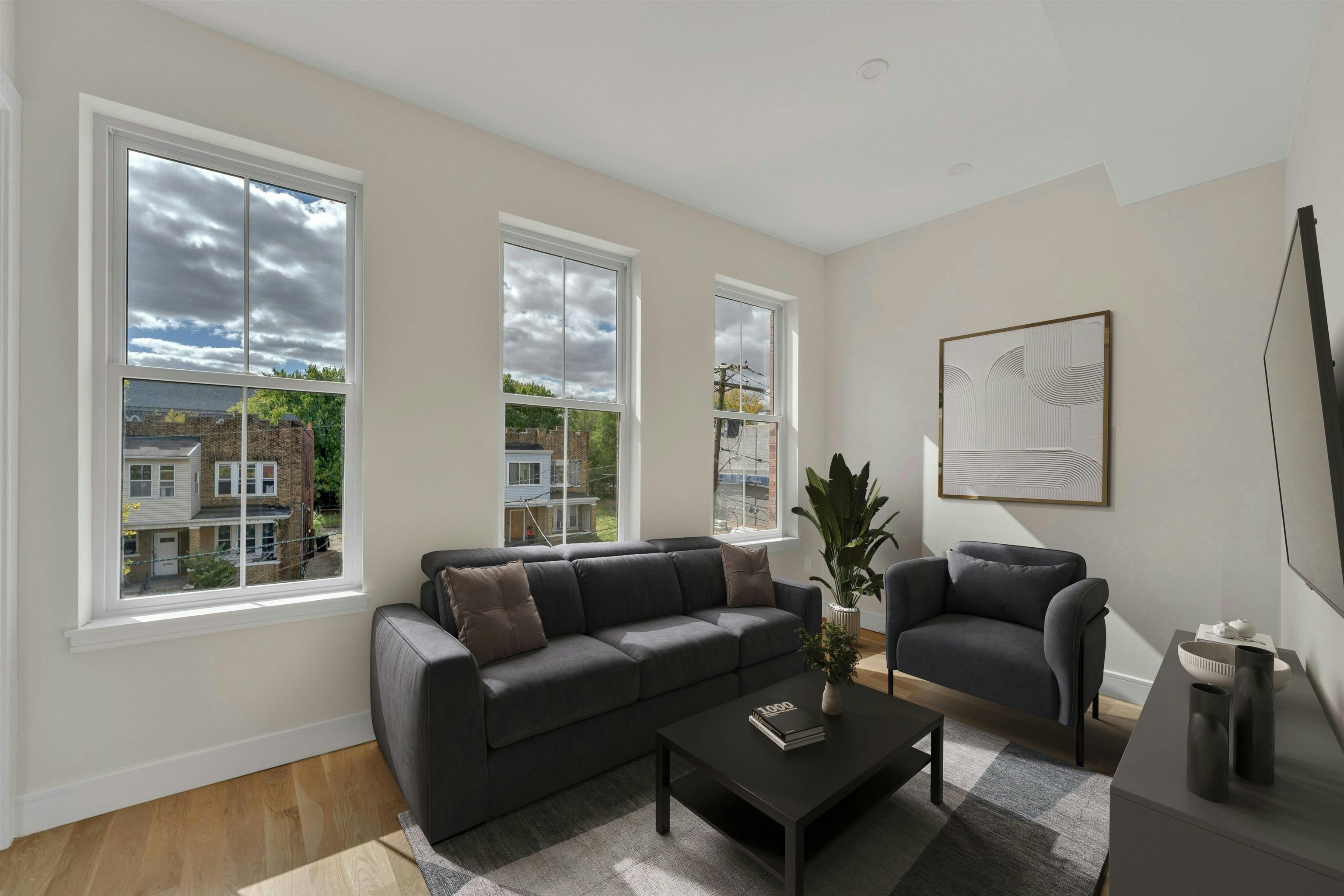 Step inside Unit 2 at 28 Clinton Avenue, a new-construction condominium that blends modern design, premium finishes, and smart functionality in Bergen-Lafayette. With ~1,451 sq ft, this three-bedroom, two-and-a-half-bath residence delivers luxury and a thoughtful layout, featuring 10-foot ceilings, 8- foot doors, and white oak hardwood floors throughout. The kitchen features Fabuwood Luna cabinetry, a Pistachio island, quartz countertops and backsplash, and brass fixtures—creating a sophisticated and timeless aesthetic. Each bathroom offers backlit designer mirrors and high-end finishes, while bedrooms are spacious and bright, with the primary suite including a private balcony and en-suite bathroom. Enjoy a finished private roof deck with breathtaking skyline views of Manhattan and Downtown Jersey City, creating an unmatched entertaining and relaxation space. Additional highlights include brand-new Rheem HVAC systems, 40-gallon powervent hot water tanks, and energy-efficient Andersen 100 Series windows. Located in Bergen-Lafayette—Jersey City’s fastest-growing and most rapidly appreciating neighborhood—this residence is surrounded by a wave of investment, development, and community energy, making 28Clinton Ave a rare and valuable opportunity
