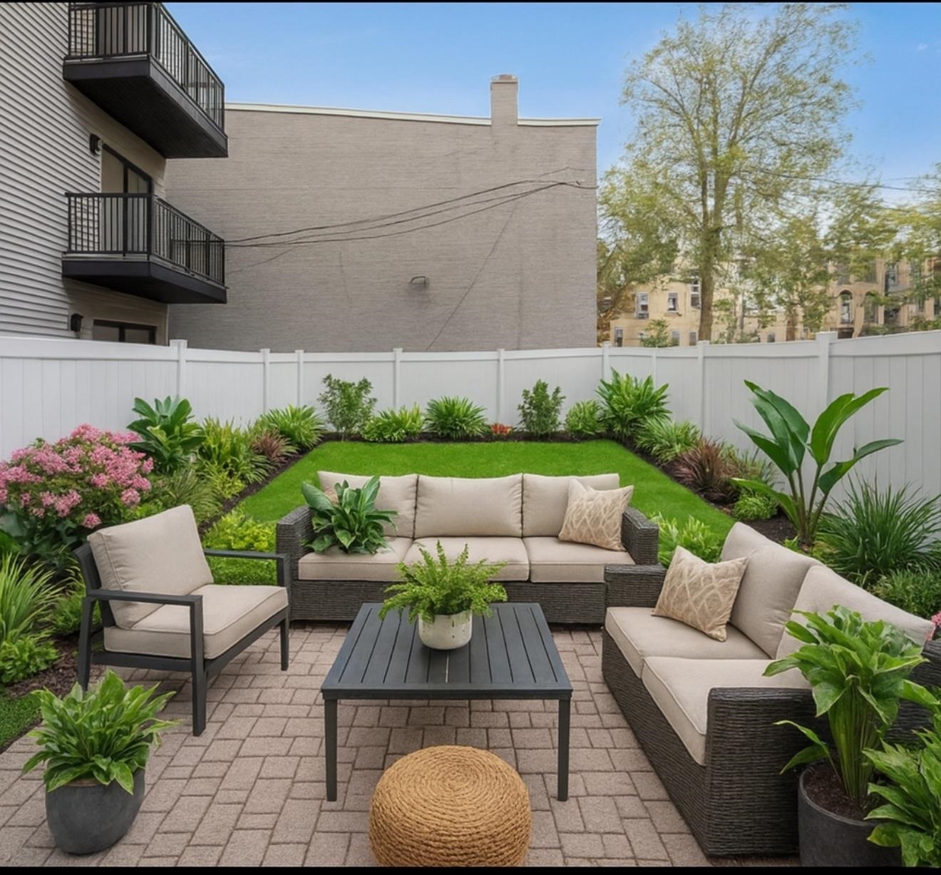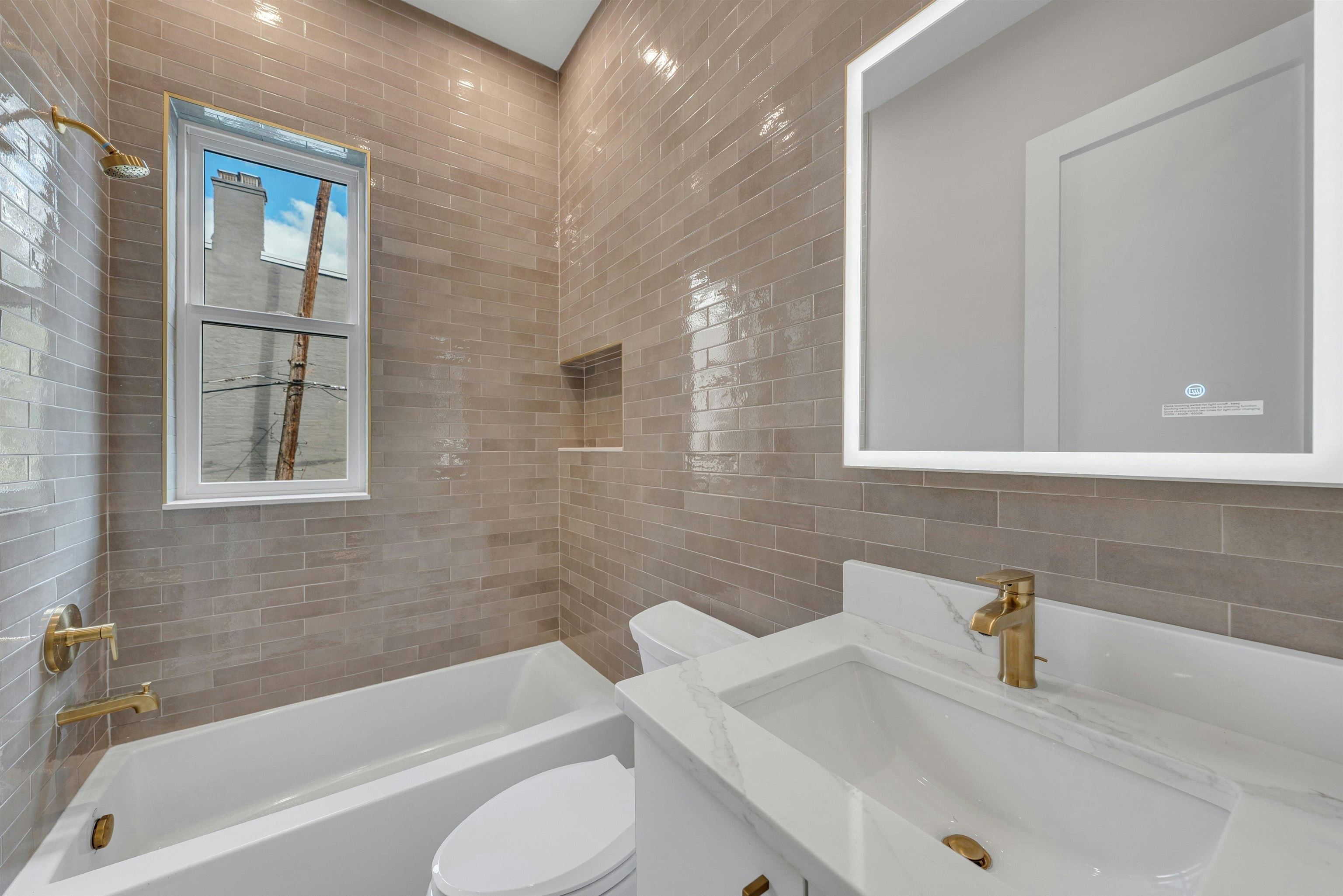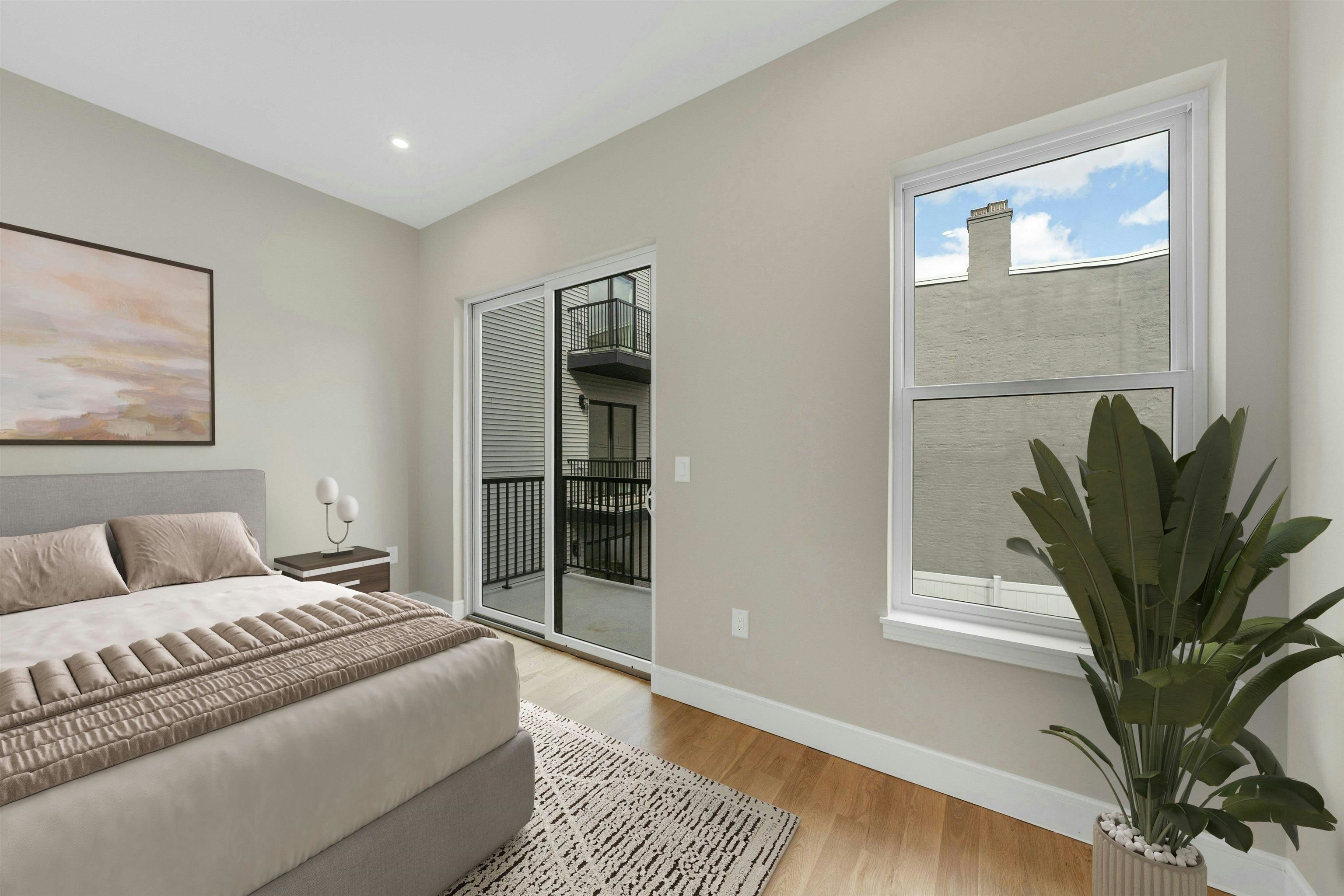 Step inside Unit 1 at 28 Clinton Avenue, a thoughtfully designed new-construction condominium that combines sophisticated finishes, timeless style, and modern comfort in Bergen-Lafayette. Spanning ~1,338 sq ft, this three-bedroom, two and-a-half-bath residence offers 10-foot ceilings, 8-foot doors, and white oak hardwood floors throughout. Natural light floods the home, creating an inviting and spacious feel. The chef’s kitchen showcases Fabuwood Luna cabinetry, a Pistachio island, quartz countertops and back splash,and brass fixtures, perfectly balancing contemporary elegance with warm design elements. Each bathroom is finished with backlit designer mirrors and premium materials, while bedrooms are spacious and bright, and the primary suite includes a private balcony and en-suite bath. Step outside to enjoy your private landscaped backyard, featuring a fresh lawn, mulched garden beds, gray vinyl fencing, and paver patio—a rare and serene outdoor escape. Additional highlights include Rheem HVAC systems, 40 gallon powervent hot water tanks, and energy-efficient Andersen 100 Series windows. Located in Bergen-Lafayette, one of Jersey City’s fastest-growing neighborhoods, this home is surrounded by ongoing investment and development, making 28 Clinton Ave the perfect opportunity for both lifestyle and long-term value.