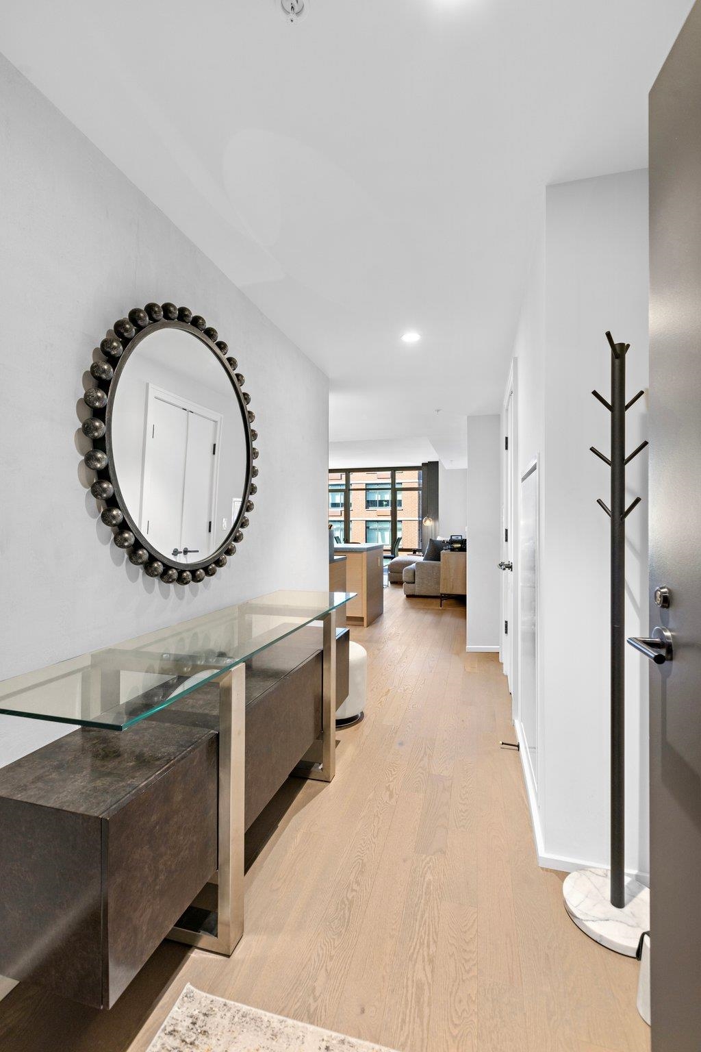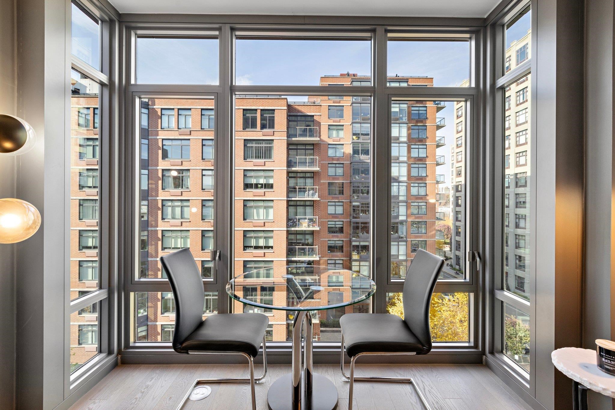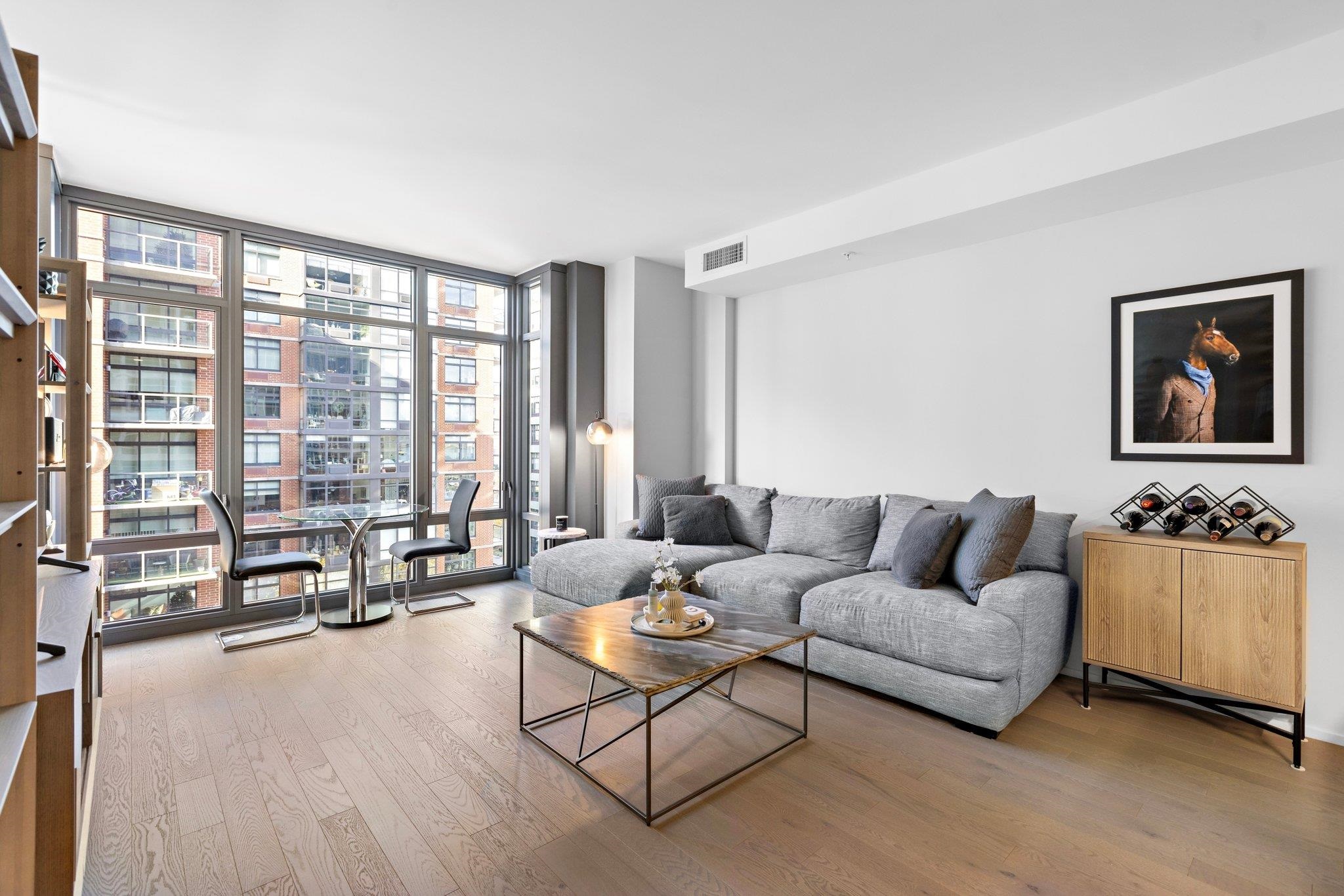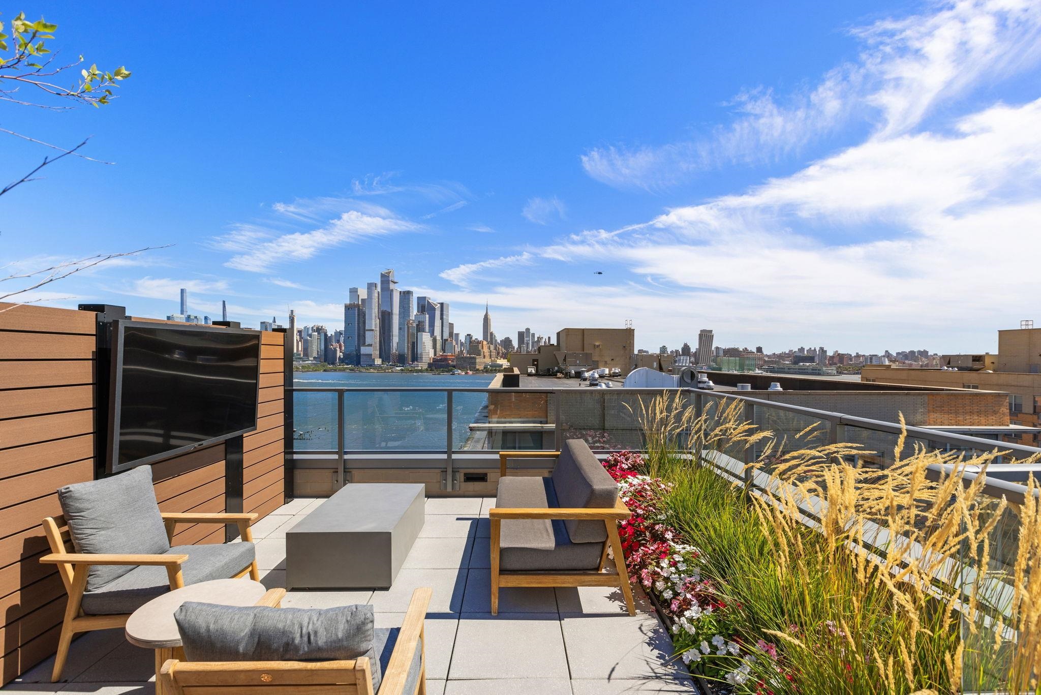 Welcome to Residence 6C at 1425 Hudson, an elegant 1-bedroom, 1-bath home in one of Hoboken’s most sought-after uptown waterfront buildings. This west-facing residence is filled with afternoon light, enhanced by floor-to-ceiling windows that frame open city views. The well-appointed kitchen features quartz countertops, custom cabinetry, and a suite of premium Thermador appliances, while the open living area provides an ideal setting for both entertaining and everyday comfort. The spacious bedroom offers a large closet, and the spa-inspired bath showcases designer tilework and a glass-enclosed shower. Additional highlights include wide-plank hardwood floors throughout, central air, motorized blinds, custom designer painted walls, and a full-size washer and dryer. Residents enjoy a landscaped rooftop terrace with Manhattan skyline views, outdoor grills, a plunge pool, a fitness center, a children’s playroom, and 24-hour concierge service. Perfectly located just moments from the 14th Street Ferry, NJ Transit bus lines, parks, and the vibrant shops and restaurants of Washington Street, Residence 6C offers the perfect balance of luxury and lifestyle.
