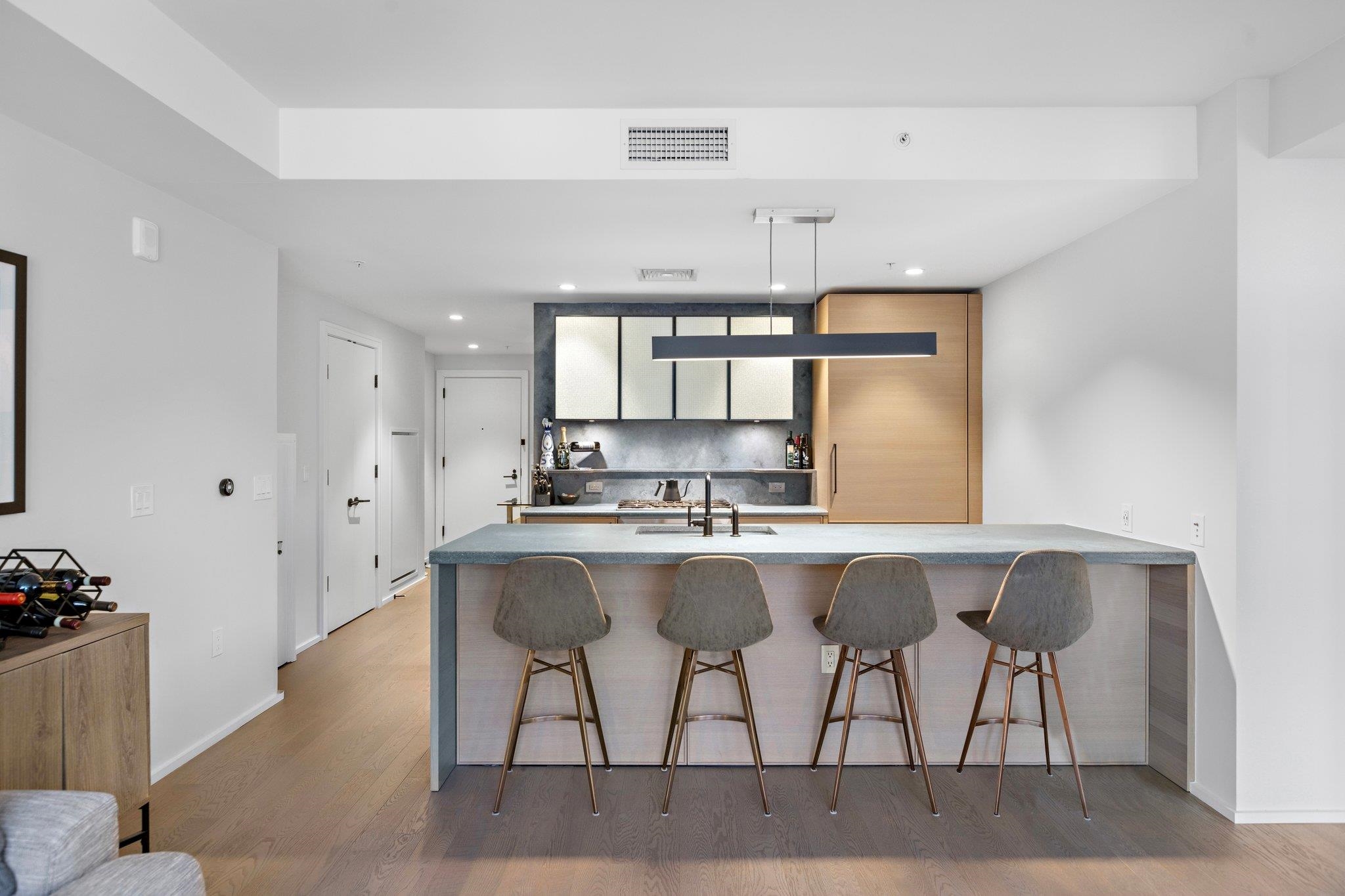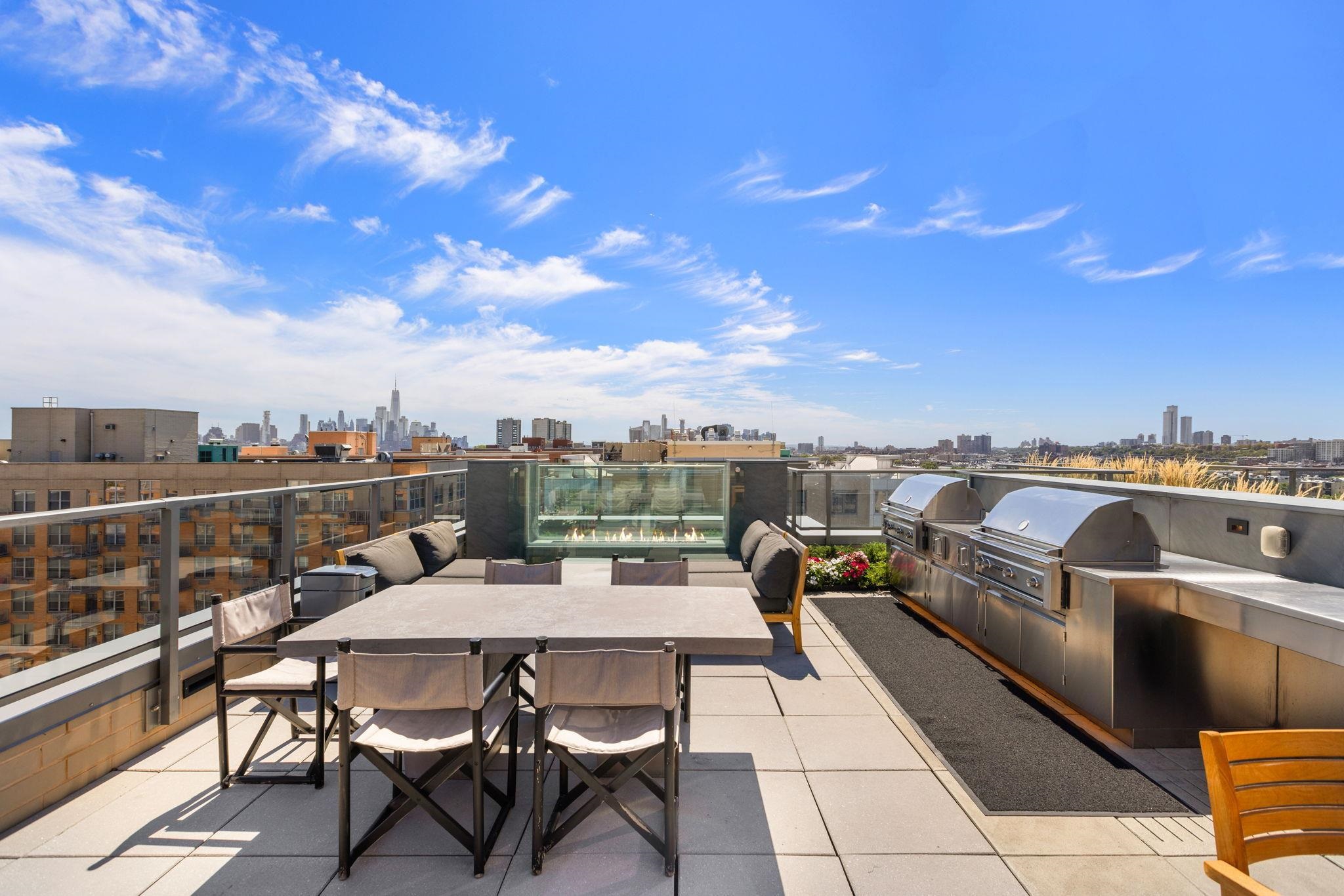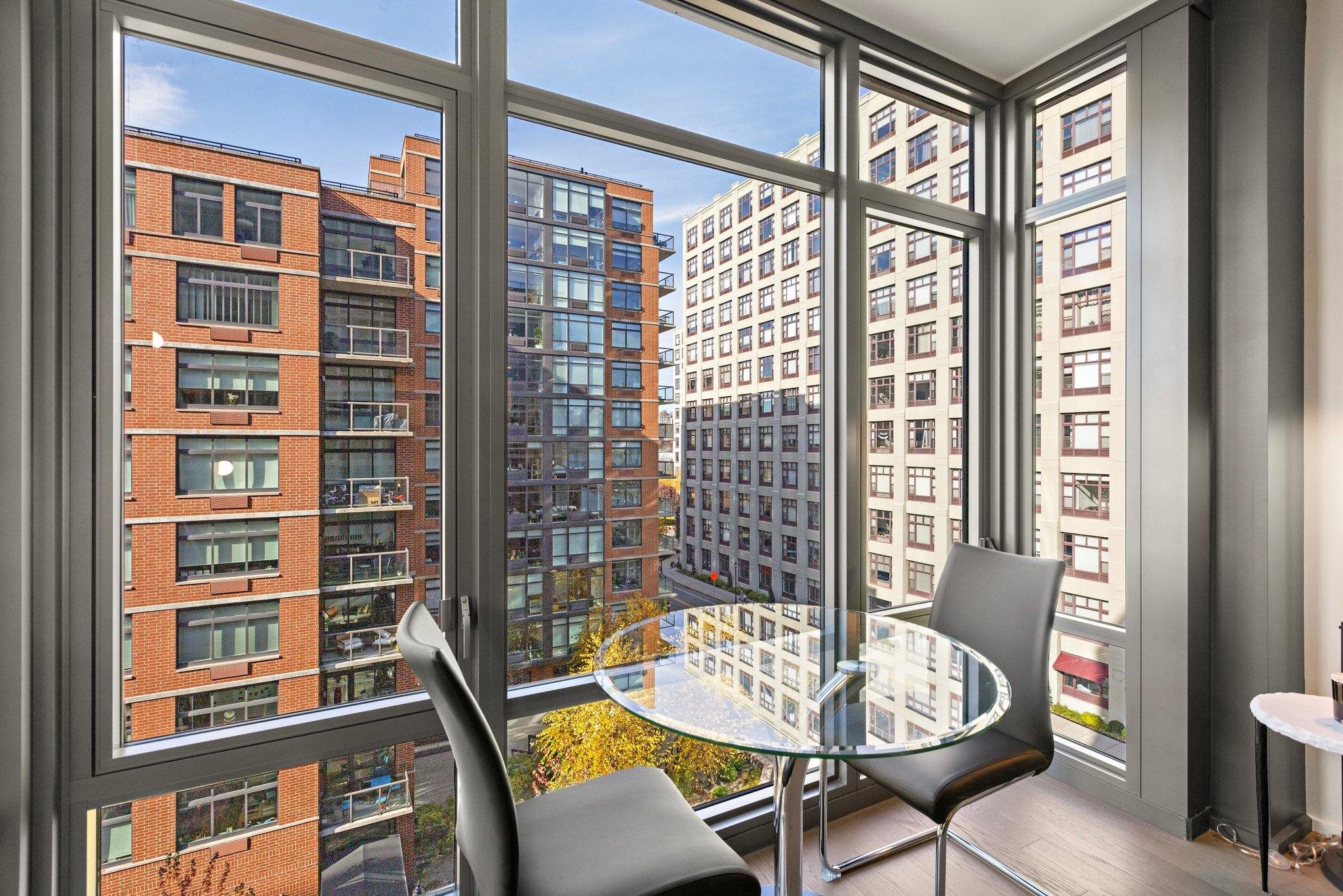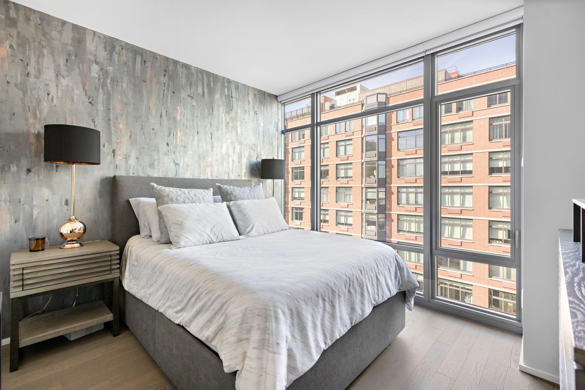Welcome to Residence 6C at 1425 Hudson, an elegant 1-bedroom, 1-bath home in one of Hoboken’s most sought-after uptown waterfront buildings. This west-facing residence is filled with afternoon light, enhanced by floor-to-ceiling windows that frame open city views. The well-appointed kitchen features quartz countertops, custom cabinetry, and a suite of premium Thermador appliances, while the open living area provides an ideal setting for both entertaining and everyday comfort. The spacious bedroom offers a large closet, and the spa-inspired bath showcases designer tilework and a glass-enclosed shower. Additional highlights include wide-plank hardwood floors throughout, central air, motorized blinds, custom designer painted walls, and a full-size washer and dryer. Residents enjoy a landscaped rooftop terrace with Manhattan skyline views, outdoor grills, a plunge pool, a fitness center, a children’s playroom, and 24-hour concierge service. Perfectly located just moments from the 14th Street Ferry, NJ Transit bus lines, parks, and the vibrant shops and restaurants of Washington Street, Residence 6C offers the perfect balance of luxury and lifestyle.