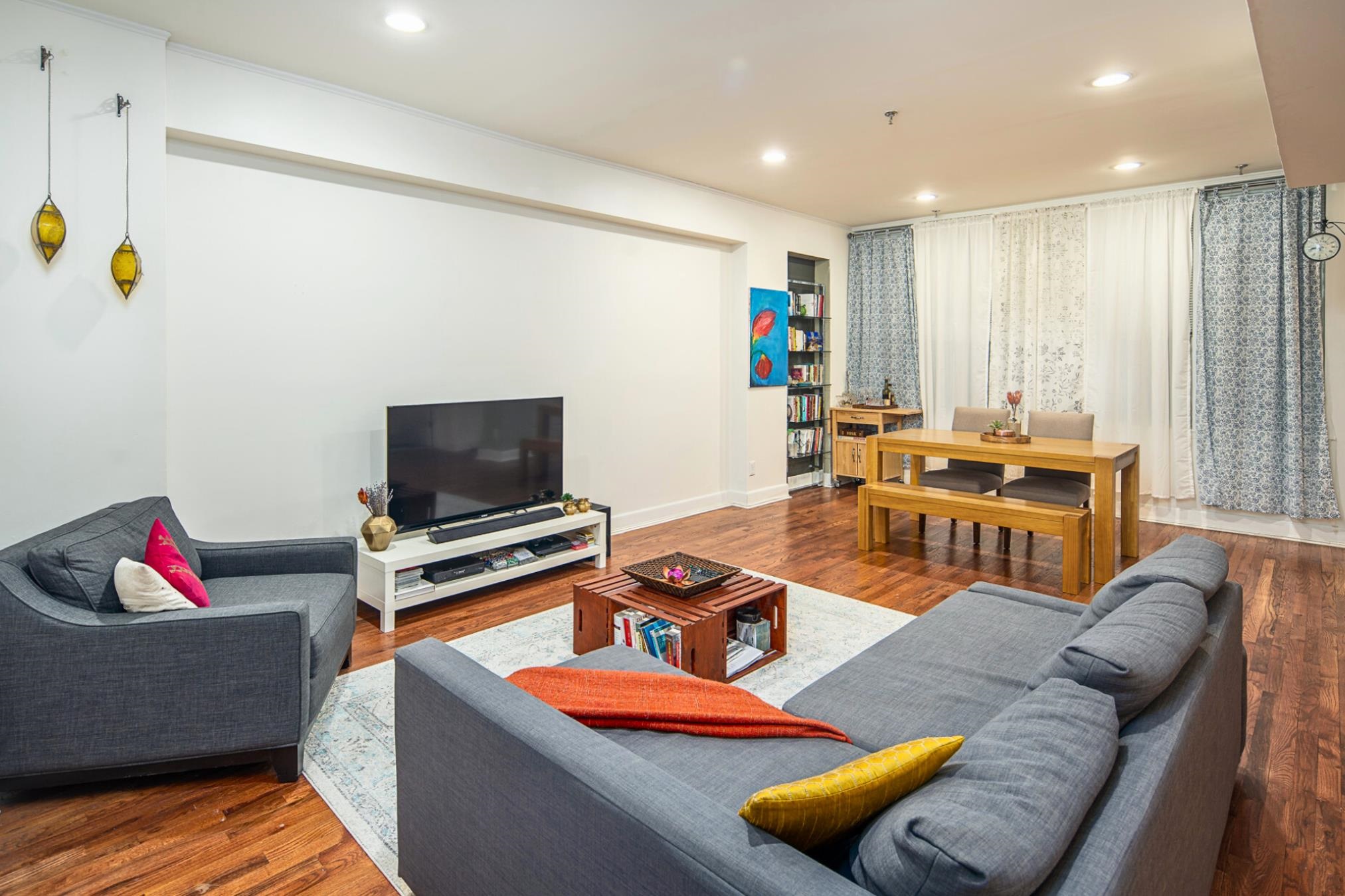 Welcome to 160 Central Ave Unit 1, a premier high-end new construction condo from NKAY Developers in the heart of Jersey City Heights, conveniently located across from Pershing Field Park. This first floor unit has a private entrance and features 3 bedrooms, 2 full baths, private backyard and secure rental parking just 2 doors down. Sleek kitchen is designed with top of the line stainless steel Bosch appliances, quartz waterfall counters and backsplash, oversized stainless steel sink, two-tone custom cabinetry, pot filler, stylish gold hardware and fixtures, and high-end pendant lighting. West facing living and dining room boast a fireplace framed with custom millwork, oversized Andersen windows, and a large closet under the stairs for additional storage. Main bedroom suite faces east and offers ample natural light with a sliding glass door, custom millwork accent wall with dual pendant lighting, walk-in closet with high-end custom built-in shelving and cabinets. Ensuite bathroom offers an oversized double vanity, floor-to-ceiling large format tiles, dramatic warm accent lighting, and a top of the line waterfall shower, sprayer, and jets. Each of the additional 2 bedrooms feature high end custom built-in closets. Washer/dryer in unit add to the convenience of the home. Private professionally landscaped backyard features grass surrounded by a paver patio and boasts a stainless steel kitchen complete with sink and gas/ electric hookups. The home is equipped with a smart doorbell, keyless entry, Legrand smart dimmers, and energy-efficient Nest thermostats. The exterior facade has been designed with modern yet timeless features, exterior lighting, professional landscaping, and a fenced-in front yard. The property comes with a 10-year warranty. Please note that square footage is approximate. Amazing location is just steps from tons of restaurants, shopping, transit options to the city, and the 13-acre park with a trail/path, reservoir, multiple sport fields, pool, ice rink, and much more!