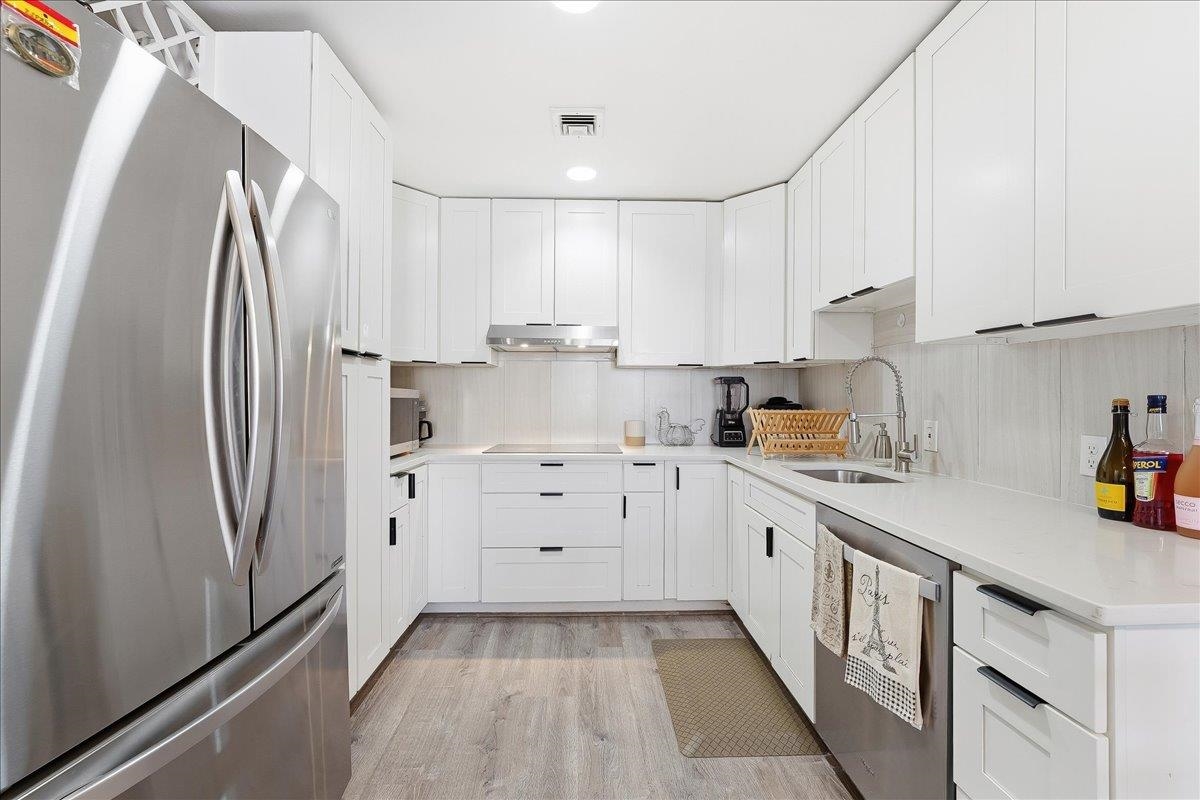 Beautifully Renovated 1,100 Sq Ft private end unit residence with custom finishes & prime comfort at prestigious Port Liberte! This beautifully maintained and freshly painted home strikes the perfect balance between stylish sophistication and everyday comfort. Designed for both entertaining and relaxation, it features updated flooring throughout, recessed lighting, and modern lighting fixtures that add a warm, contemporary touch to every room. Enjoy serene courtyard views and partial NYC Riverfront views from your private balcony, where soft summer breezes make for the perfect backdrop to unwind or host guests. The modernly designed kitchen is a chef’s dream — complete with stainless steel appliances, quartz countertops, and a built-in wine rack. Whether you're whipping up a quick dinner or hosting an elegant gathering, this space will ignite your inner Gordon Ramsay. Retreat to your thoughtfully upgraded bathrooms, featuring sleek finishes and luxurious marble flooring. Each bedroom includes custom-built closets with shelving, providing smart storage solutions and a boutique feel. Natural light pours in through large windows, enhancing the airy, open layout. Additional conveniences include central air conditioning, in-home laundry, and one-car garage parking — all adding to the ease of living. This move-in-ready home is a rare find offering elevated living in a desirable location — don’t miss it! Maintenance fees includes heat, water, hot water, garage parking and Port Liberte amenity package including 24-hour peace of mind gatehouse security, fitness center, infinity pool with NYC Skyline views, a lap pool with clubhouse, tennis & basketball courts, outdoor play area, fenced dog run, designated green spaces, complimentary guest additional guest parking and waterfront promenade walkways with priceless views. Also onsite are personal trainers and massage therapists, exclusive fitness center, Liberty Montessori: The Place for Learning daycare and Preschool. Port Liberte is also home to the renowned Hudson House with its newly acclaimed Felina Steak restaurant to satisfy even the discerning palate! Easy NYC commutes either via onsite high-speed ferry from NY Waterway direct to Wall Street OR Monday thru Friday private Port Liberte Shuttle to Grove St PATH. Just minutes to major highways and Holland tunnel and 15 mins to Newark Liberty Airport. Book your appointment today for this full resort elevated lifestyle experience!