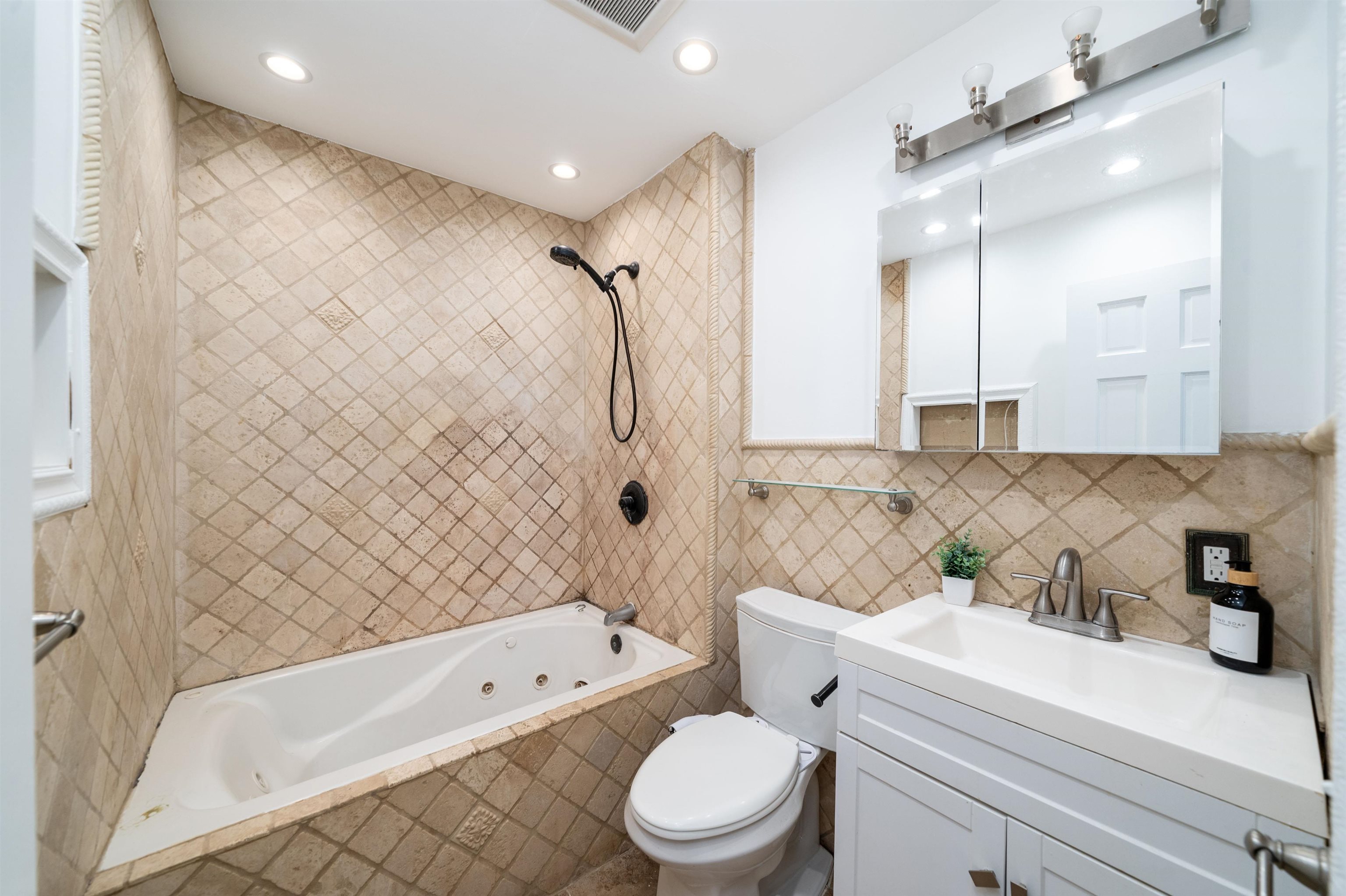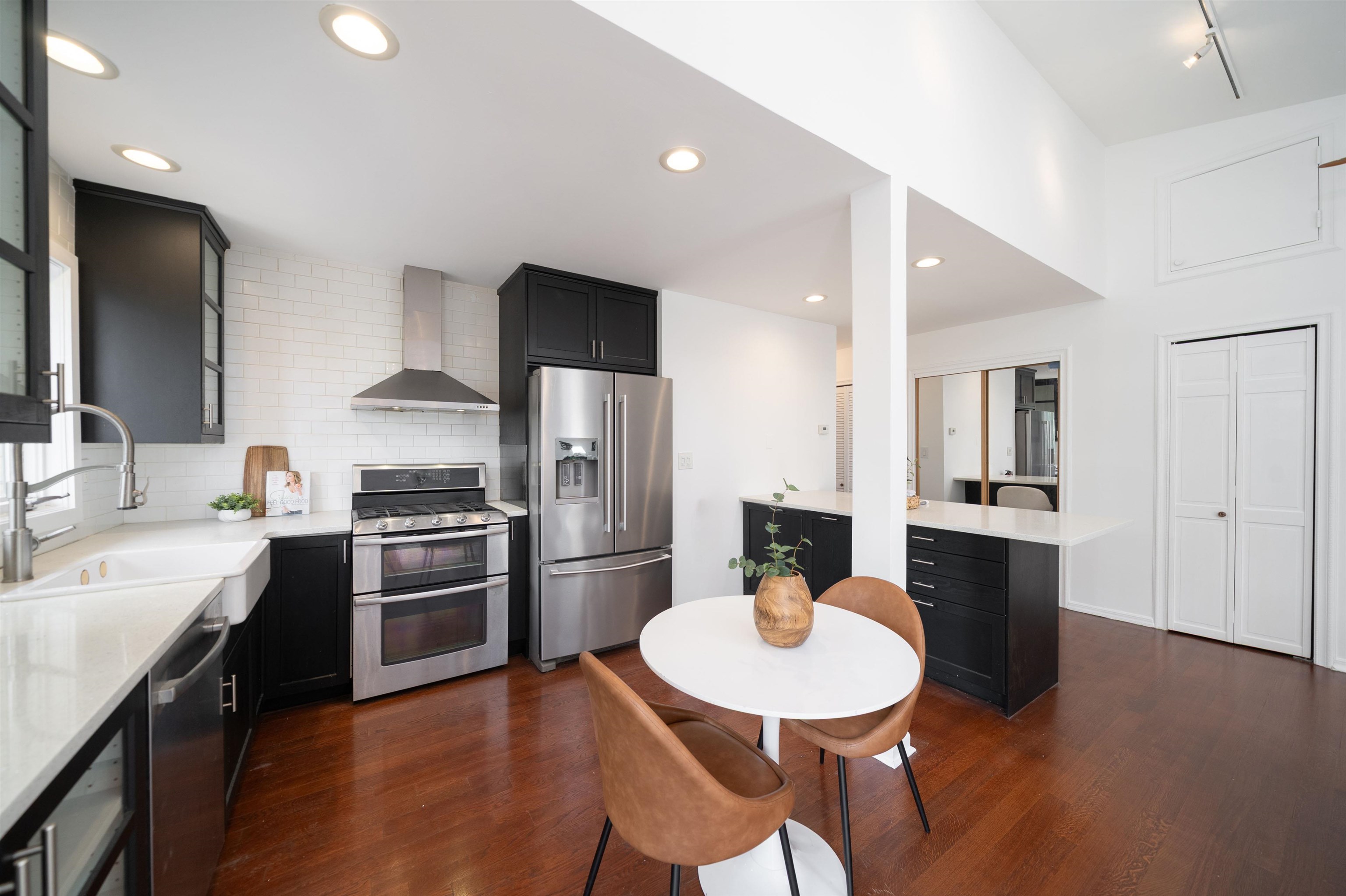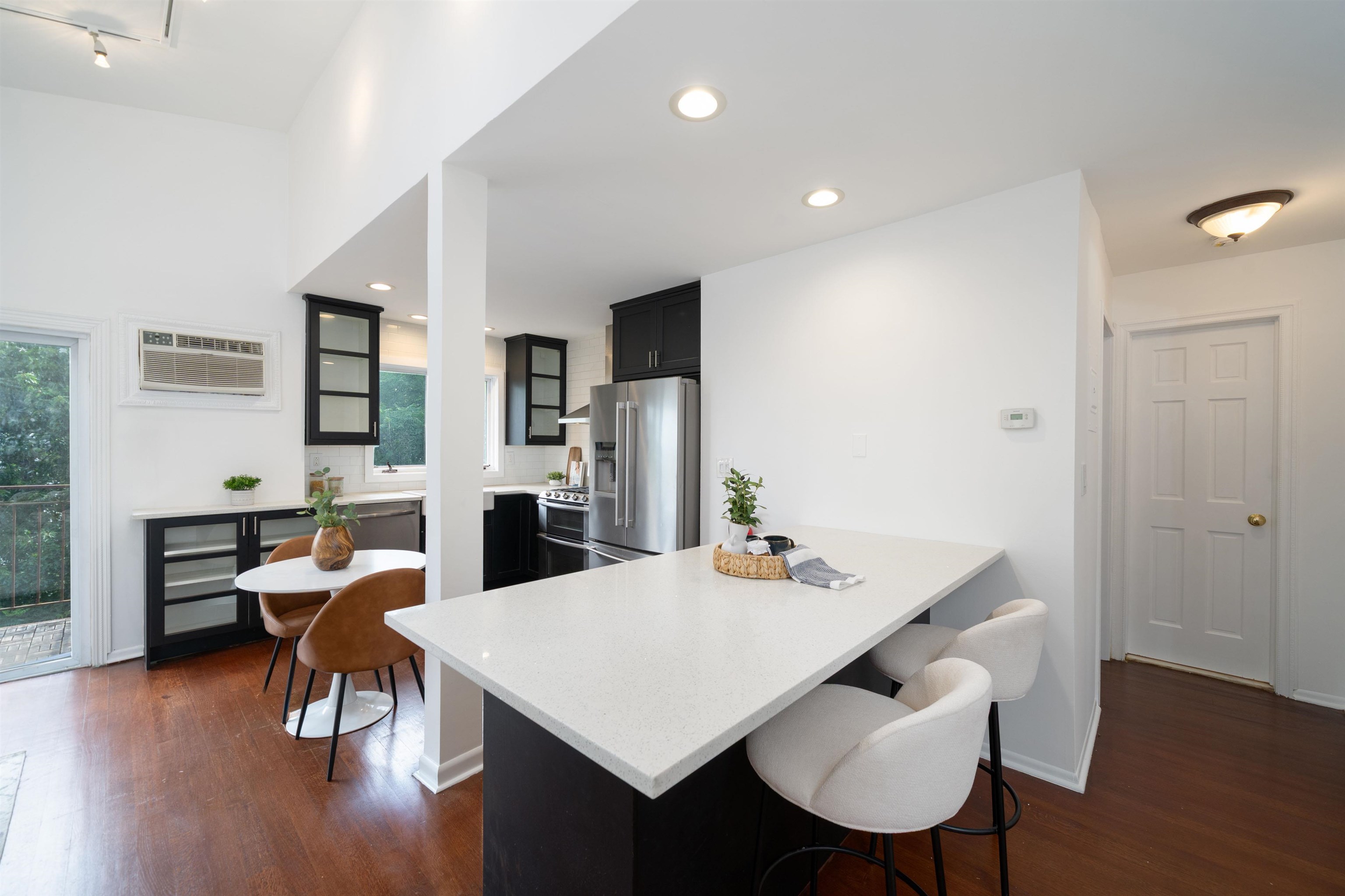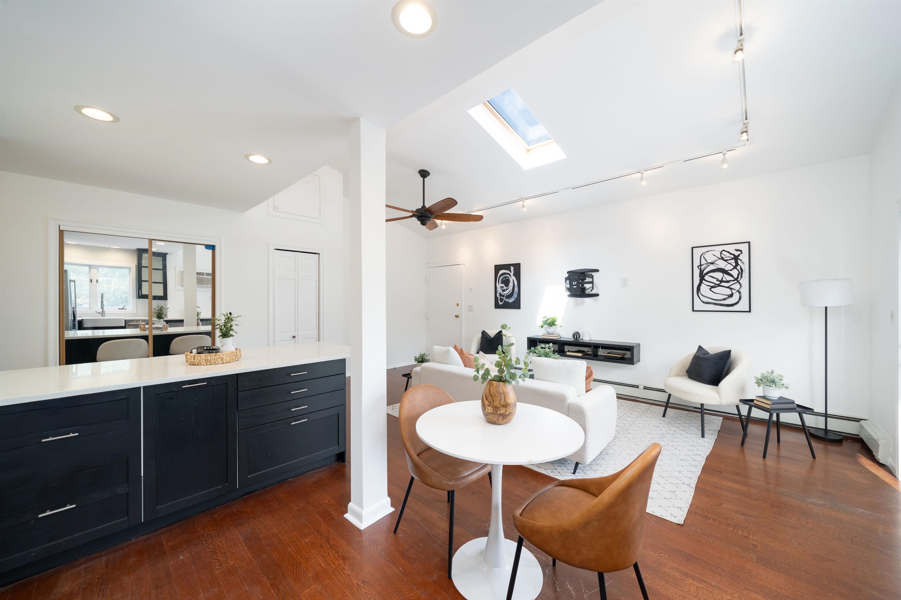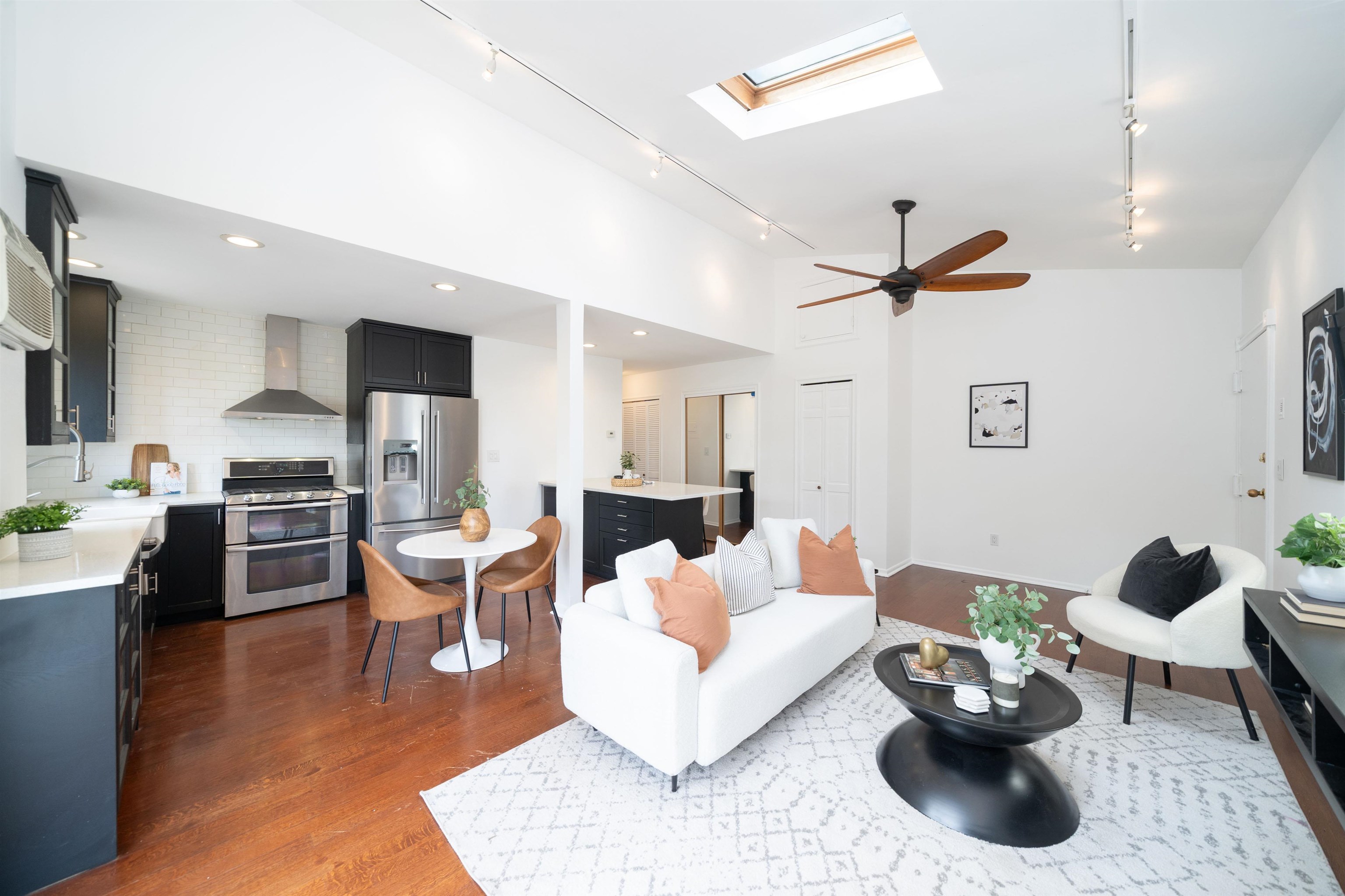 The best value in Hudson County is at your fingertips! This incredibly designed one bedroom condo in North Bergen has absolutely everything you need right down to a private garage! Enter into your open concept living space, drenched in sun from the skylight and the sliding glass doors to your private patio. The stylishly remodeled kitchen features a full breakfast bar, farmhouse sink, and deluxe stainless steel appliances, including a dishwasher AND a double oven. The bedroom is spacious with high ceilings, hardwood floors and a ceiling fan in addition to the wall unit AC. The building has a washer/dryer room as well as a camera intercom, and all conveniently located to public transit, shopping, restaurants and easy access to major highways. Great opportunity for anyone who is tired of paying rent; with so much potential to make it your own this home is perfect for first time buyers or investors. Schedule your showings today!