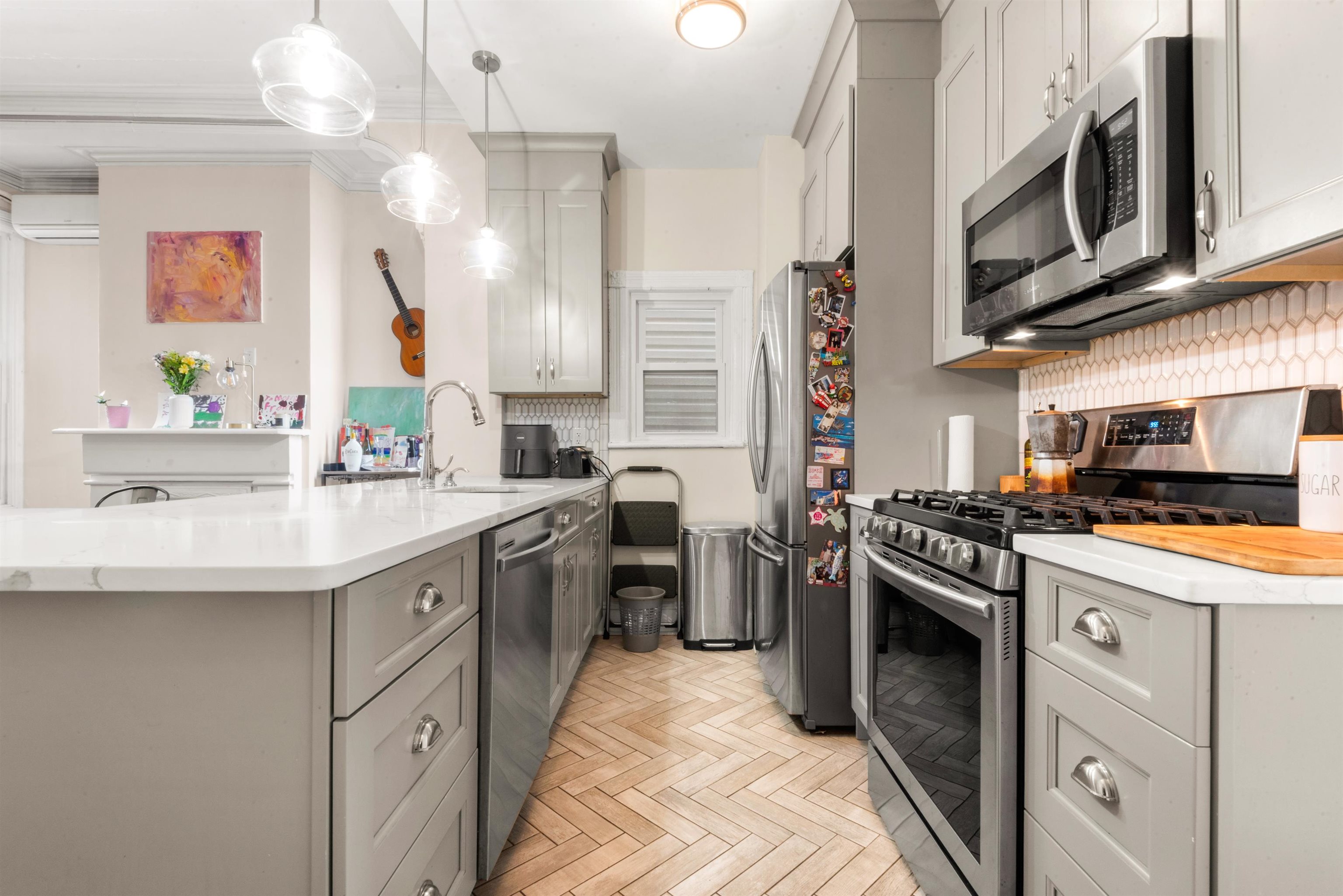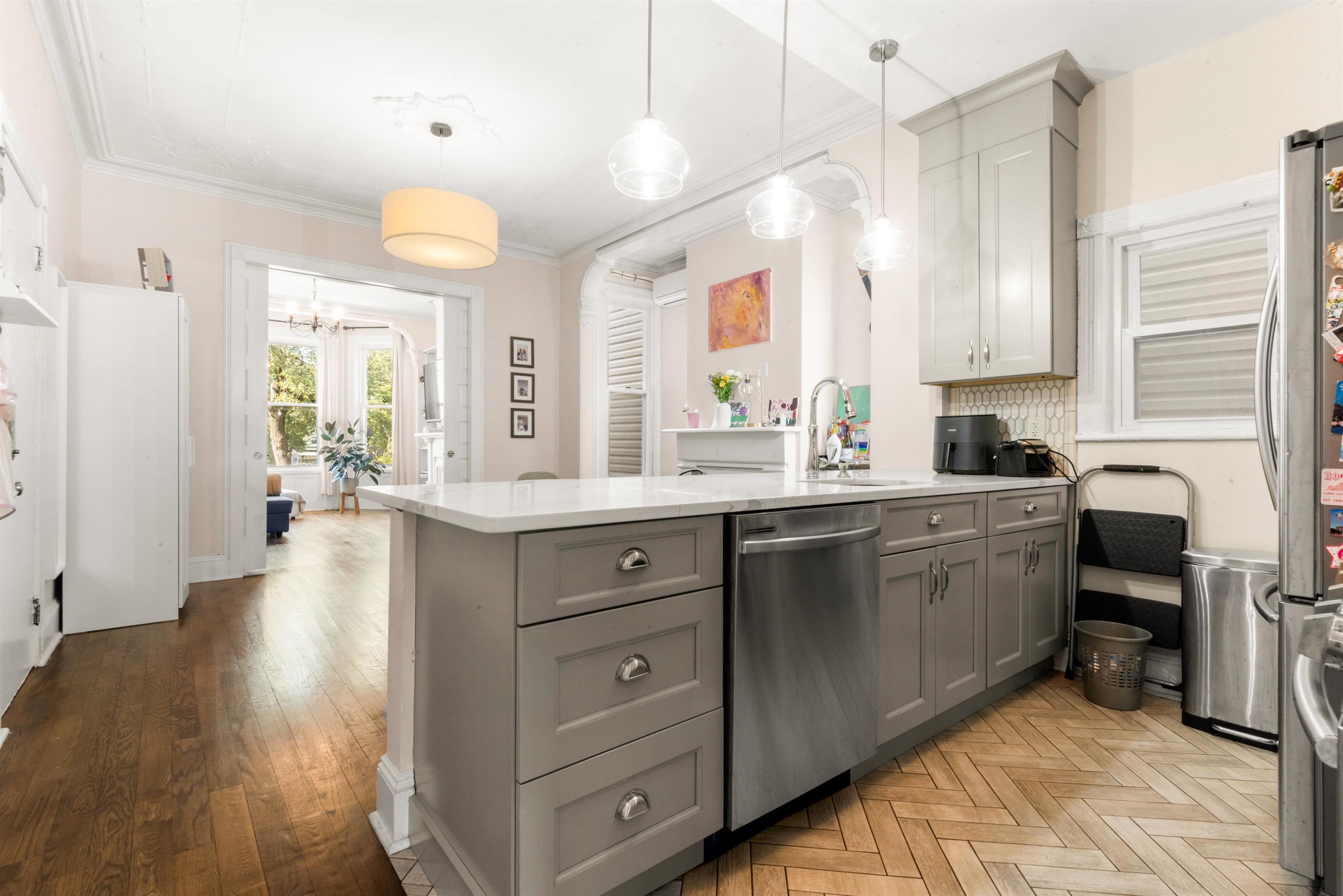 Open house Sat 11/22 1-3PM and Sun 11/23 1-3PM. Beautifully renovated Victorian two-family home with a bonus ground-floor mother-daughter suite. Original ornate fireplaces with antique details, 10 ft ceilings, along with original crown moulding, decorative ceiling trim and arches, oversized pocket doors and bay window, adding the perfect custom architectural charm. Offering a total of 7 bedrooms and 3 full baths situated on an oversized lot of 25x100 with potential to put extension. Renovated hardwood floors, kitchens and bathrooms include beautiful white quartz countertop, stainless steel appliances and an open layout. The living/dining room areas are large in size and extremely spacious to customize personal layouts. Located in the heart of Jersey City heights, within walking access to bus right on the corner to NYC or Journal Square/Hoboken path stations direct to NYC. Located near all major shops, central ave, cafes, restaurants and more!