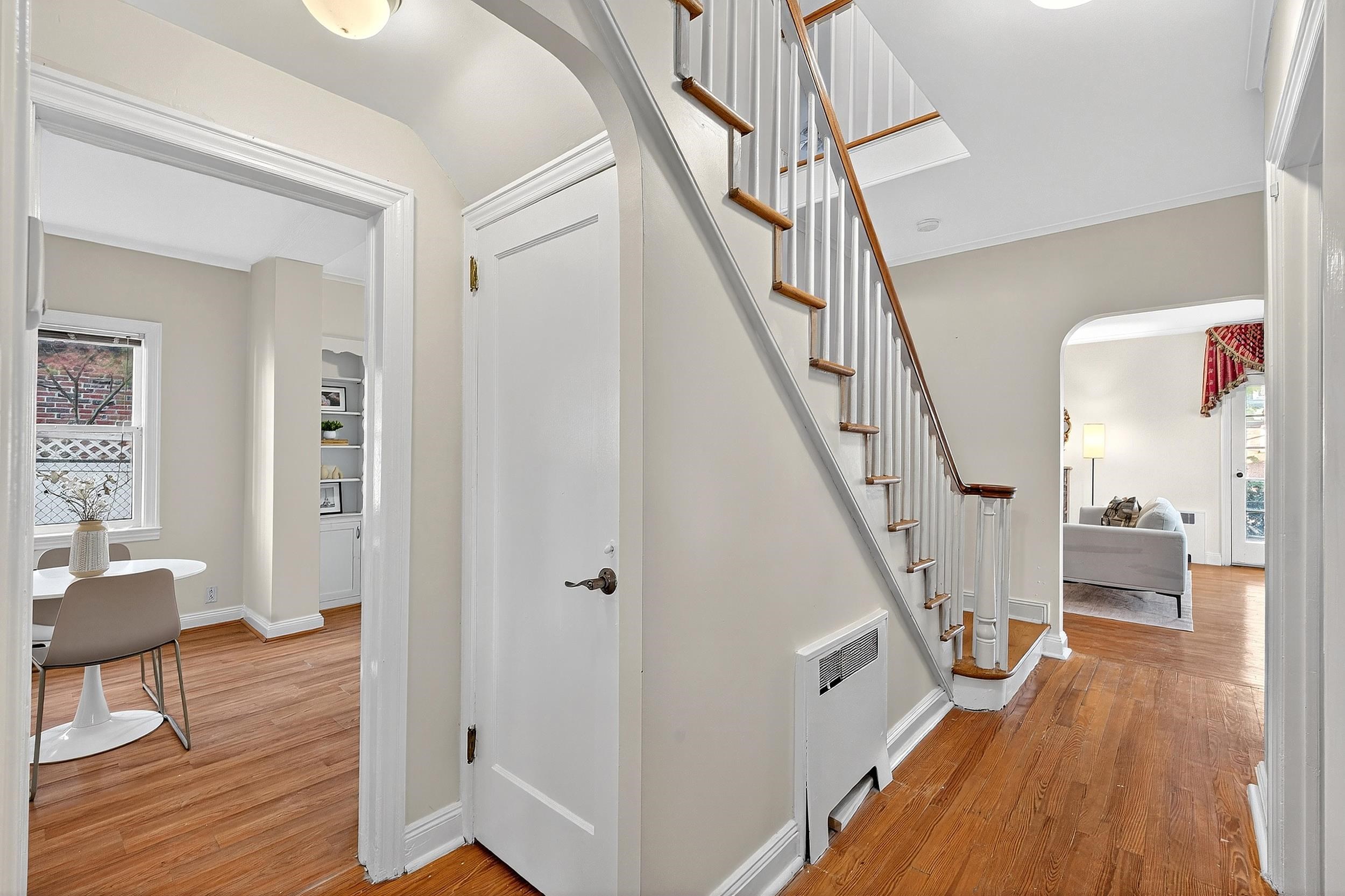 Discover a rare opportunity to own a custom built center-hall colonial on one of Bayonne's most exclusive streets. Located on prestigious Roosevelt Terrace, home to some of the city's highest value properties, this stately 1950 single-family residence offers size, character, and timeless design that you simply won’t find anywhere else in town. Sitting on a beautiful corner lot just three short blocks from Hudson County Park, this home makes an immediate impression. Inside, the main level follows a true center-hall layout. To one side is a spacious formal living room with a soapstone mantle and two French doors leading to the slate patio. To the other side sits the elegant formal dining room. From there, the home flows into a charming breakfast nook and the original kitchen, featuring preserved details rarely seen today, including built-in bread boxes and a dedicated bread kneading station. Toward the rear of the home, you'll find a second living area that works perfectly as a study or den. A retro half bath with stained-glass accents completes the floor. Upstairs, you’ll discover four oversized bedrooms, all on the same level, a standout feature in Bayonne. Each room easily accommodates any size bed, with space to spare. One of the bedrooms includes access to a flat roof area above the garage, offering incredible potential for a future rooftop deck or private outdoor retreat. The second floor also includes two beautifully preserved full bathrooms. One highlighted by original tilework and stained glass, and another exceptionally large, fully tiled suite offering a soaking tub, separate shower with body jets, and convenient hallway access. These spaces reflect the craftsmanship of their era and are ideal for anyone who appreciates authentic mid-century design. Throughout the home, hardwood floors, natural light, and solid custom construction anchor every level. The basement is expansive and ready to be reimagined. It includes a large recreation room with fireplace, a full bathroom, a sauna with an additional shower, a storage/office room, and a dedicated laundry area. A two-car attached garage completes the property. Many of the home's finishes are in beautifully preserved original condition, offering both charm and the potential for thoughtful personalization. Combined with its location on one of Bayonne’s most coveted streets, this creates an opportunity that is seldom available. As Bayonne continues to draw major investment, including the pending arrival of the 1888 Studios project and ferry service, this area is poised for continued growth. With a quick commute to NYC plus shops, restaurants, schools, and the park nearby, 7 Roosevelt Terrace offers a lifestyle that's as special as the home itself. Schedule a showing today!