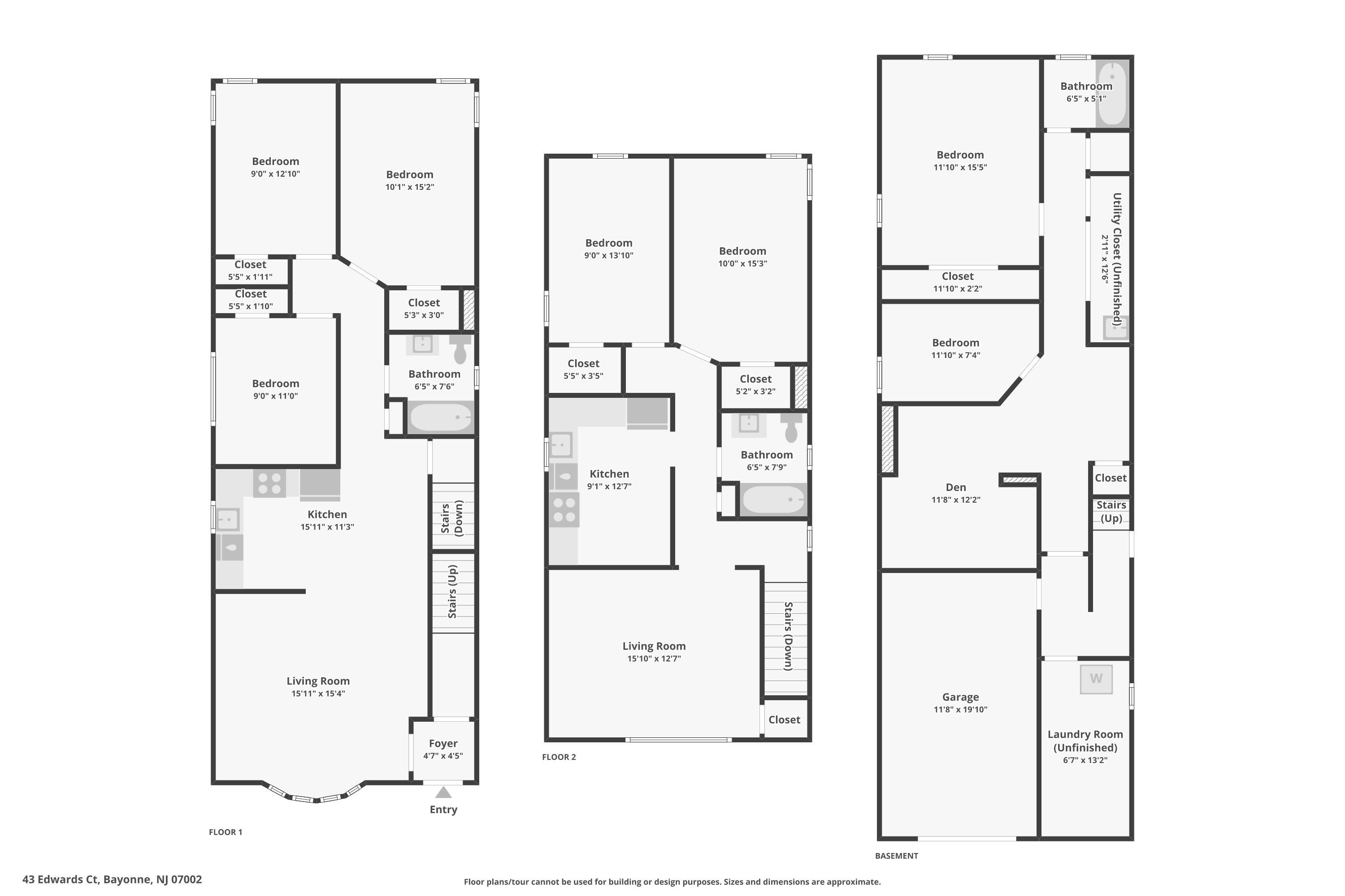 Discover this beautifully updated 2-family at 43 Edwards Ct in Bayonne! Each of the two units offers a spacious layout with 3-beds on the first floor and 2-beds on the top floor. Both have fully renovated designer baths, bright living rooms, and beautifully modern and upgraded kitchens featuring quartz counters and backsplashes, soft-close cabinets, and new appliances. The home features freshly repainted walls, new windows, hardwood flooring, and new light fixtures. The bedrooms are very spacious and have good closet space throughout the home. The lower level includes flexible spaces — perfect for storage, recreation, or future customization along with a full bathroom. Additionally, there is a dedicated but unfinished laundry room, side entrance to the alleyway, and a garage. Conveniently located near parks, schools, shopping, and transportation, this property is ideal for both investors and owner-occupants seeking a modern turnkey home with ultimate versatility.