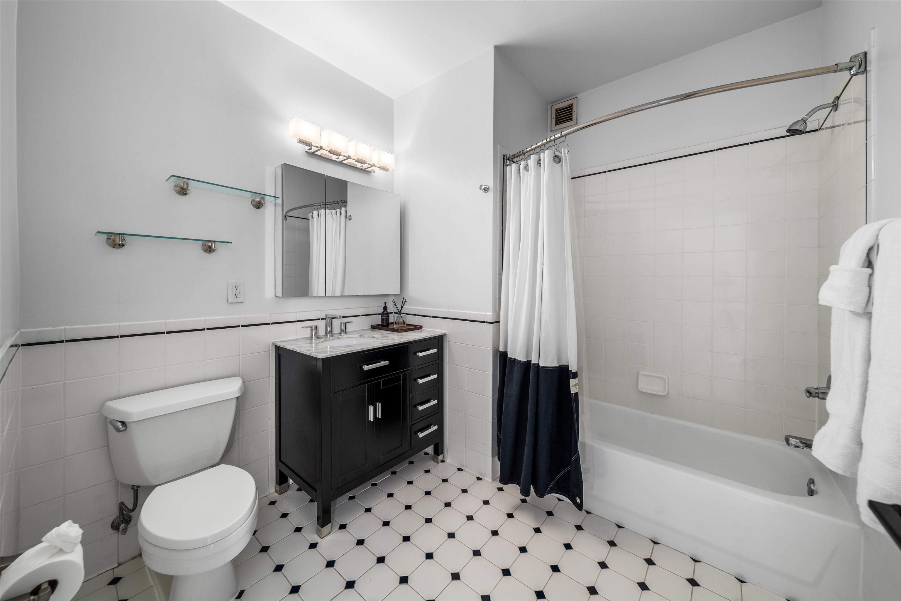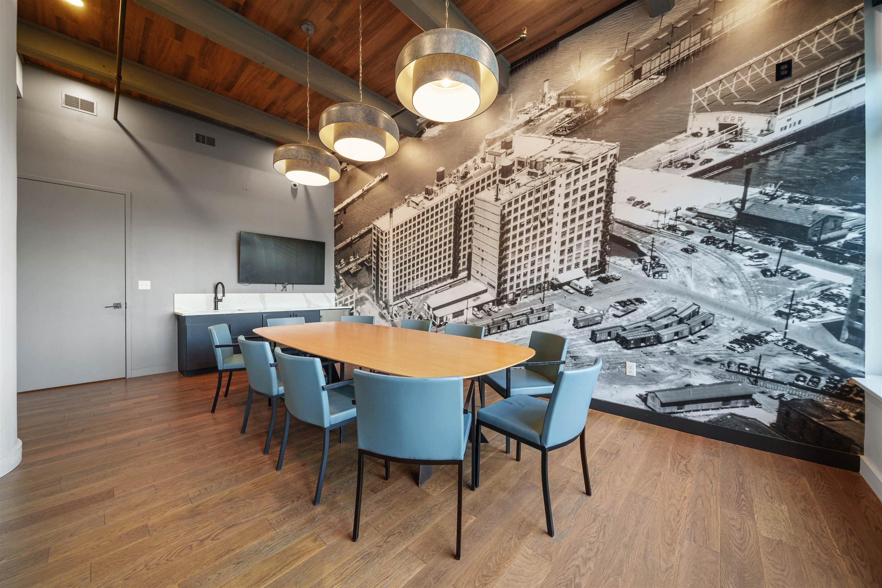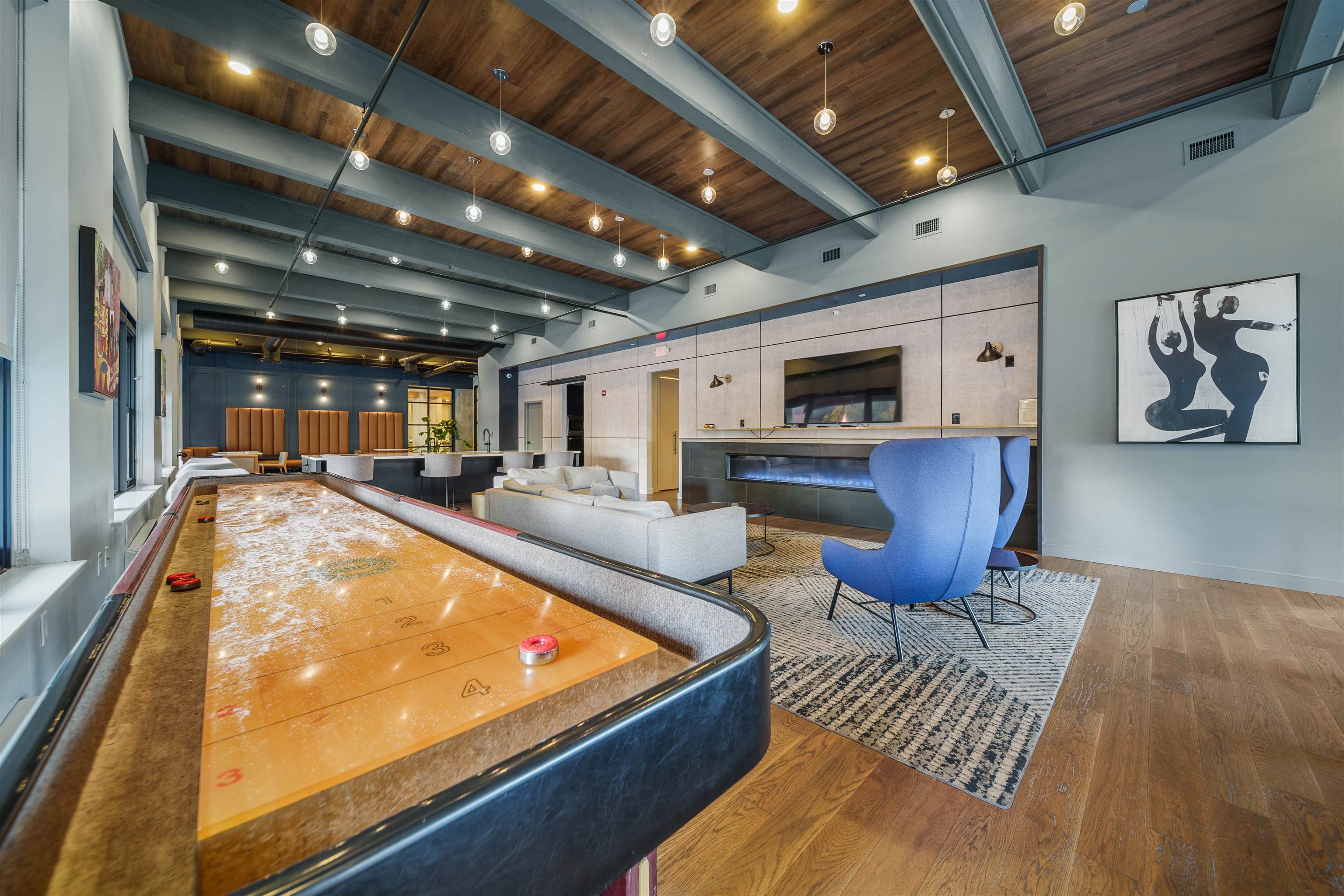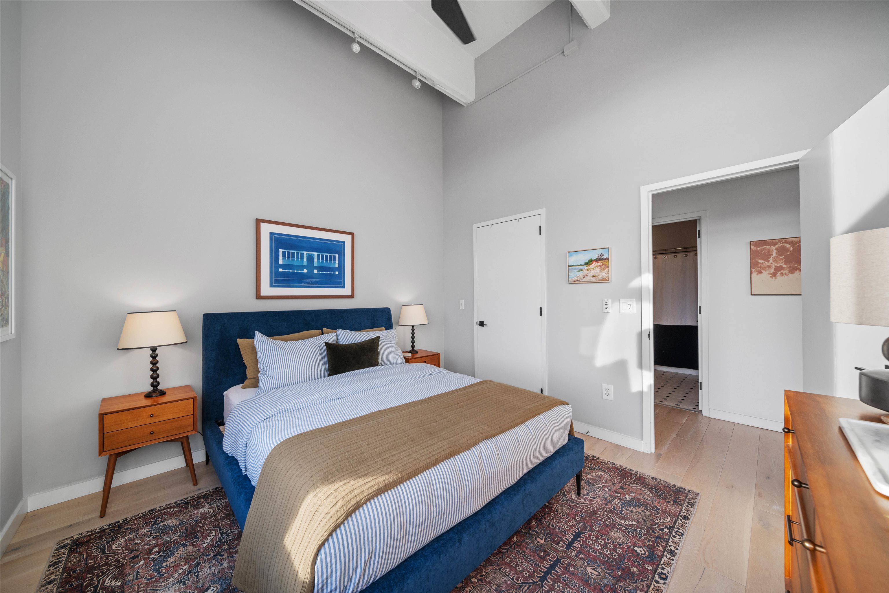 Welcome to Residence 11P at the iconic Hudson Tea — a bright, south-facing true one-bedroom with soaring 14-foot ceilings and open New York City skyline views, including the Freedom Tower. Spanning 755 square feet, this beautifully upgraded home blends historic loft character with modern finishes and an effortless uptown lifestyle. The open layout features light oak wide-plank floors, oversized windows, and incredible natural light. The kitchen is outfitted with espresso cabinetry, full granite counters, stainless steel appliances, and a sleek backsplash. The spacious bedroom enjoys NYC views and includes a custom walk-in closet with built-ins. Additional comforts include full-size washer/dryer, abundant hallway storage, and an oversized crawl space for seasonal items. Hudson Tea amenities include a 24-hour doorman, on-site gym, resident lounge, children’s playroom, and shuttle to the PATH. Perfectly located along the uptown waterfront near the ferry to NYC, shops, cafés, parks, schools, and dining. One covered garage parking space is included in nearby garage with a $140/mo HOA.