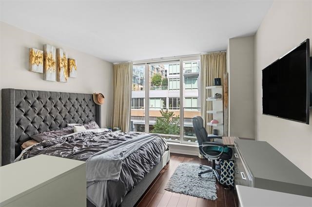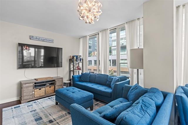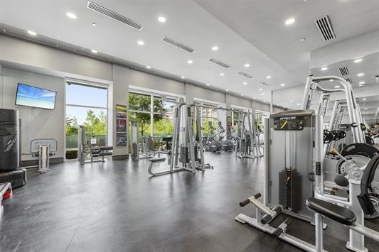 Experience upscale living in this stunning 3-bedroom, 3-bathroom corner unit condo spanning 1,784 square feet. This luxurious home features a wrap-around balcony, offering breathtaking views and abundant natural light through floor-to-ceiling windows. Hardwood floors throughout enhance the spacious and bright ambiance. The chef-designed kitchen is a culinary masterpiece, boasting a waterfall quartz countertop and Spazzi custom cabinetry. Ample storage ensures all your needs are met. This prestigious building offers unparalleled amenities, including 24-hour concierge service, a fully-equipped gym, a serene pool, a screening room, and an elegant sky lounge. Additionally, enjoy the convenience of one-car garage parking. Embrace a lifestyle of sophistication and comfort in this exquisite residence. Welcome home.