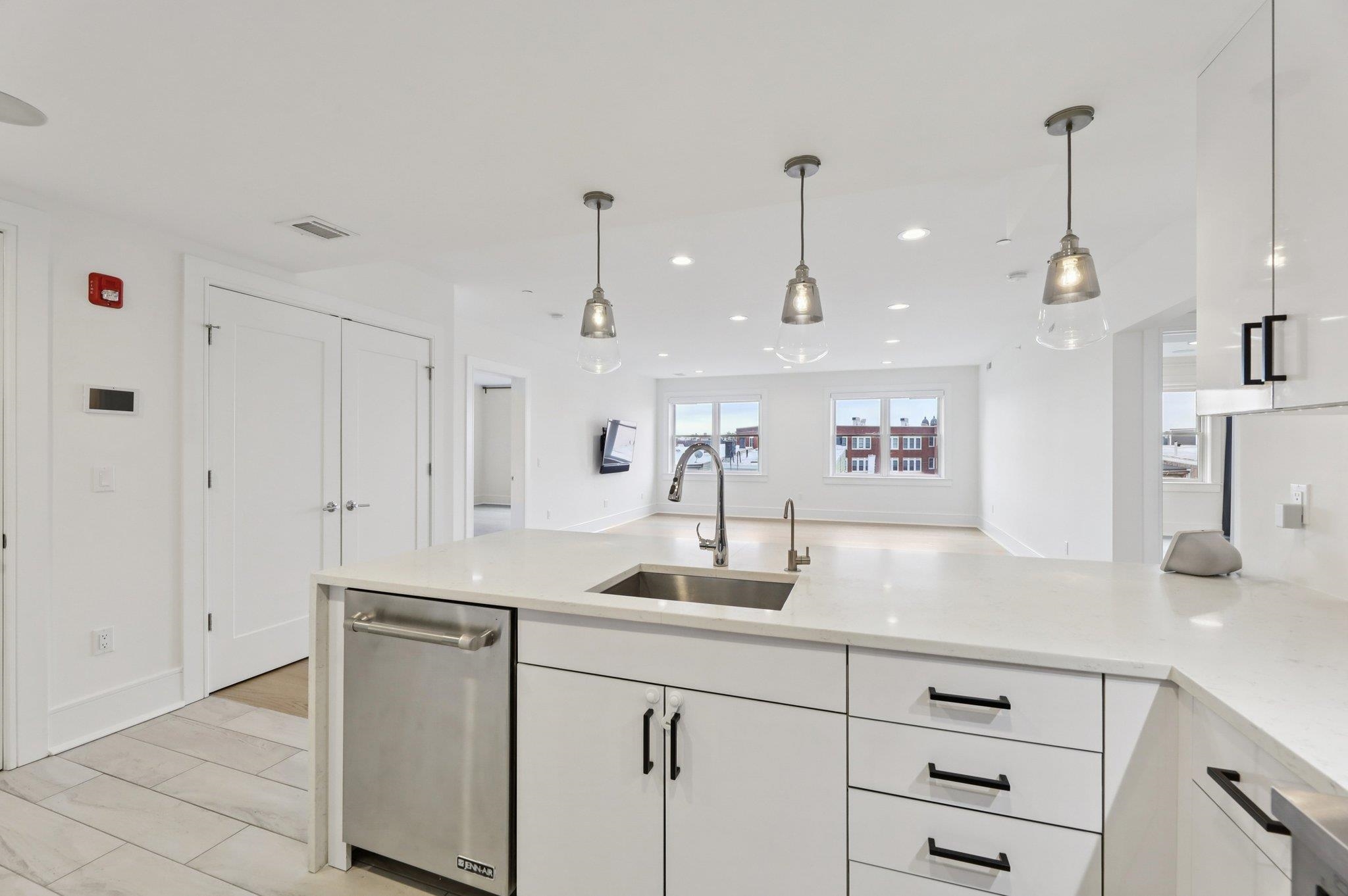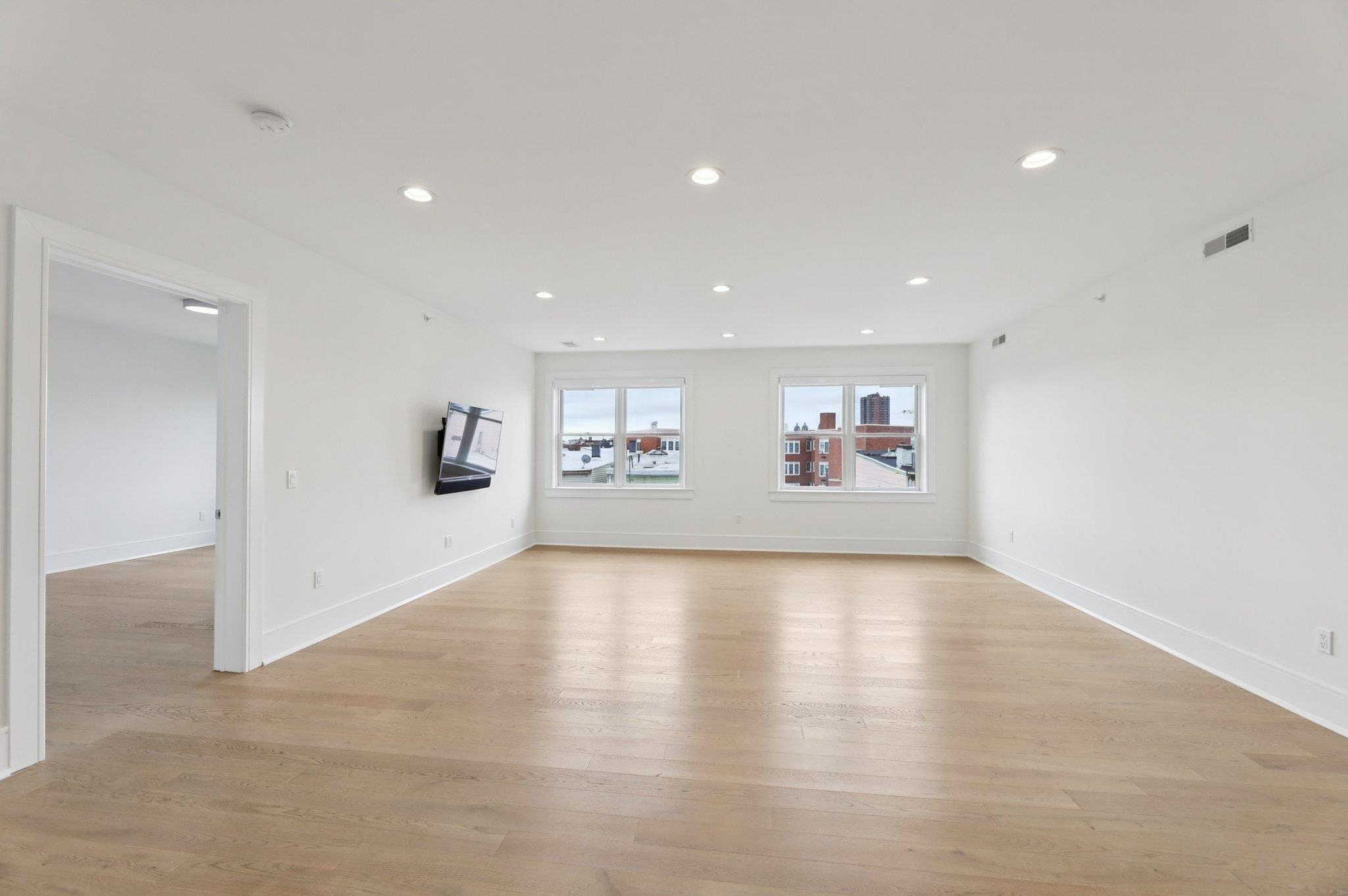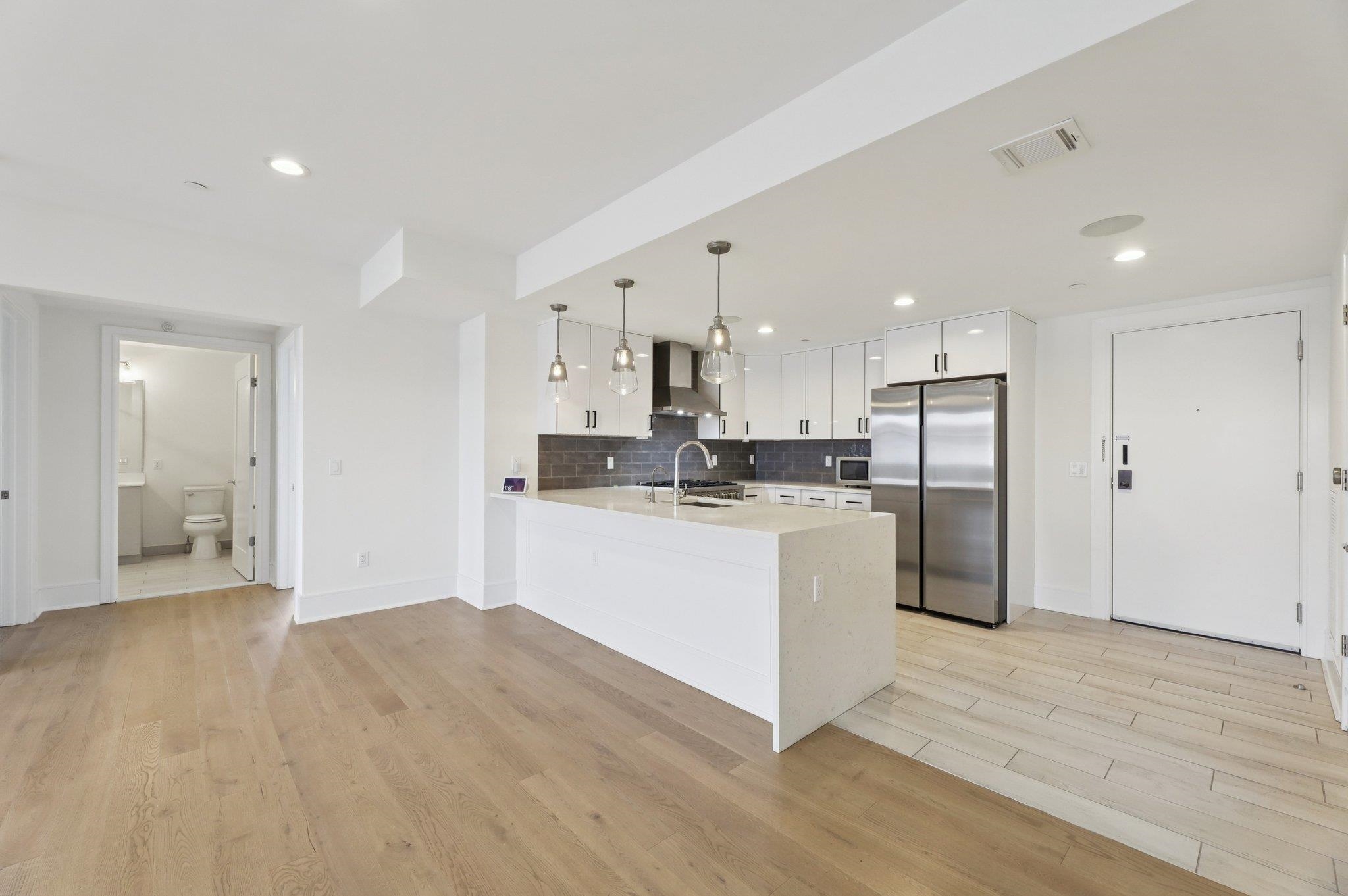 Modern and airy 3-bedroom, 2-bath condo offering 1,635 sq ft of thoughtfully designed living space and a deeded garage parking spot. The open-concept layout features a spacious living and dining area that flows seamlessly into a chef’s kitchen with quartz waterfall countertops, gas range with vented hood, and premium stainless steel appliances. The king-sized primary suite includes a spa-inspired bathroom with a rainfall shower, dual vanity, and a custom walk-in closet. Two additional bedrooms and a full bath are situated on the opposite side of the home, providing privacy and flexibility for guests, family, or a home office. Smart home upgrades include hardwired controls for lighting, music, and doorbell. Recently refreshed with premium zero-VOC Benjamin Moore paint, the home also features central air and heat, in-unit washer/dryer, and garage parking spot #6—one of the most convenient in the building. Esperta, built in 2019, is a modern elevator building with a virtual doorman and security. Ideally located just ~200 feet from NJ Transit express buses offering 20+ direct routes to NYC (second to last stop before the Lincoln Tunnel), commuting is effortless. Enjoy proximity to the Weehawken waterfront, Whole Foods, Reservoir Park, and local dining.