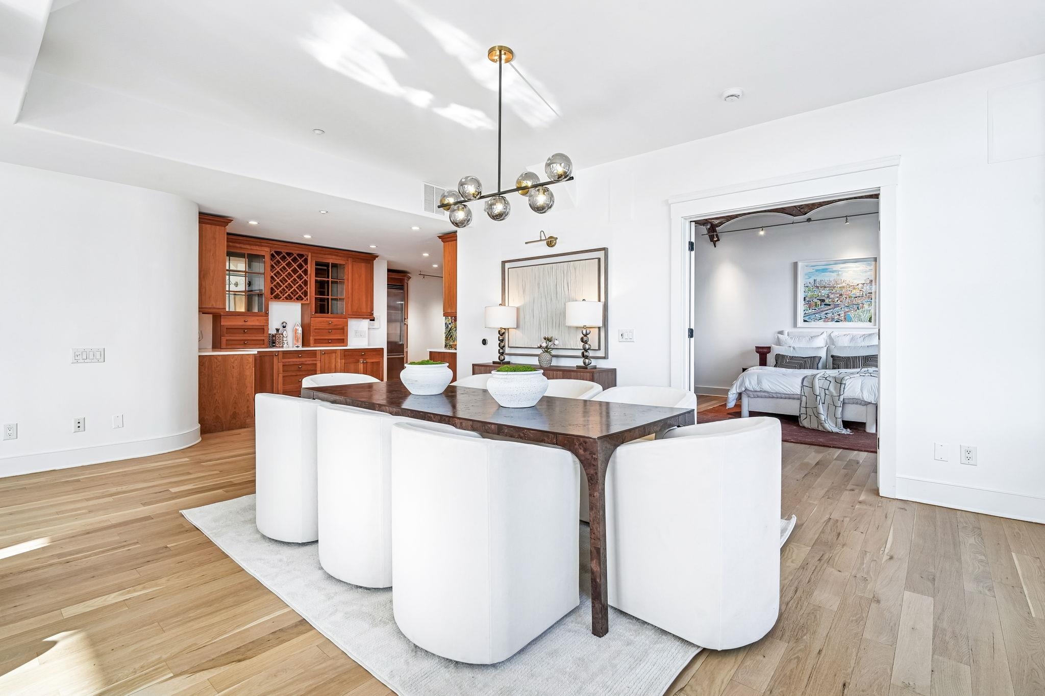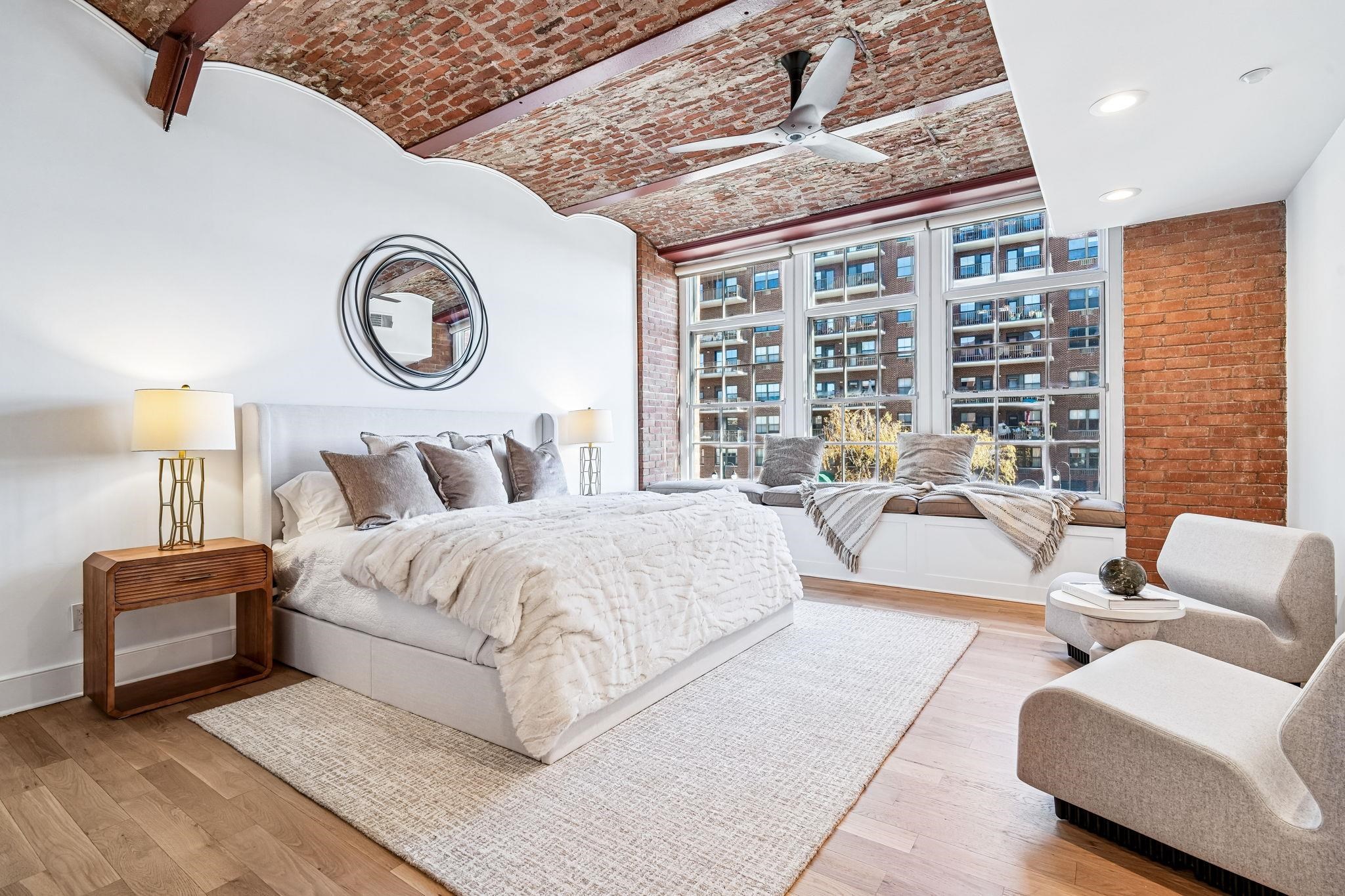 Spectacular living with over 2000 sq ft of opulence positioned directly on the Hudson River! This beyond rare "L" line in the coveted Sugar House is just 1 of 4 homes in the entire building with direct, protected, and unobstructed panoramic South AND East views. Encased in glass, this massive corner trophy home is finished to the highest level of luxury and refinement. Brilliant matte hardwood floors are offset by historic, exposed, barrel vaulted brick ceilings and detail. Taking full advantage of the prominent location, streaming sunlight fills the entire home throughout the day. The world is your moving artwork as the magnificence of the Hudson River and surrounding landmarks unfold in front of you. Your sprawling living/dining grand salon features 2 sets of french sliders opening onto dual Juliette balconies. Host any number of friends and family in this magnificent space, complete with roaring gas fireplace, custom built-ins, and architectural lighting. Chef's rejoice, as your culinary haven awaits, with a full suite of Viking appliances, new calacatta statuario quartz countertops, and abundant Ultracraft wood cabinetry. The primary suite is nothing short of a luxury retreat......king-sized proportions, separate sitting/home office/nursery area, California style walk-in closet, and tumbled marble spa bath with two person shower and separate jetted tub. The second bedroom is equally large, with oversized transom windows and those showstopper vaulted brick ceilings! The second full bathroom is smartly placed for privacy and features custom wainscoting and stone tile. One private, on-site, garage parking space is included with the sale. The Paulus Hook icon, Sugar House, features 24-hour concierge/security, fully equipped gym with Pelotons, steam room, dry sauna, trainer changing rooms, lovely manicured resident outdoor terrace with mature plantings, professional grade bbq grills, lounge, dining, and play areas. Enjoy this magnificent neighborhood with the best dining, nightlife, shopping, parks, Hudson River promenade, and coveted PS16/Bradford school district. Minutes to NYC via 2 Path stations, NY Waterway, or auto. A remarkable and fabulous opportunity!
