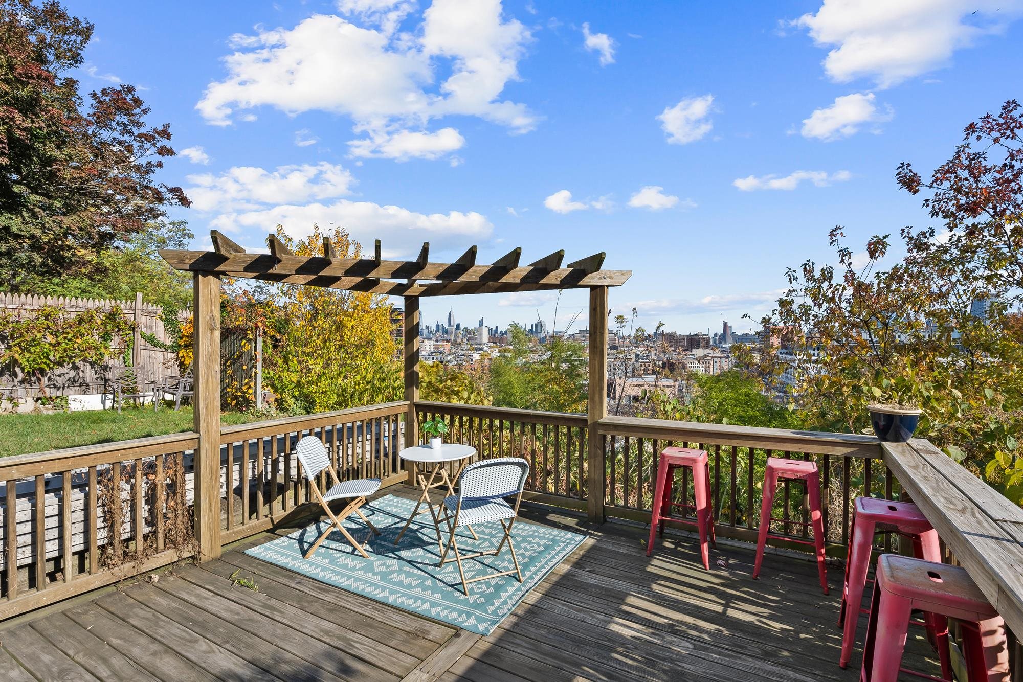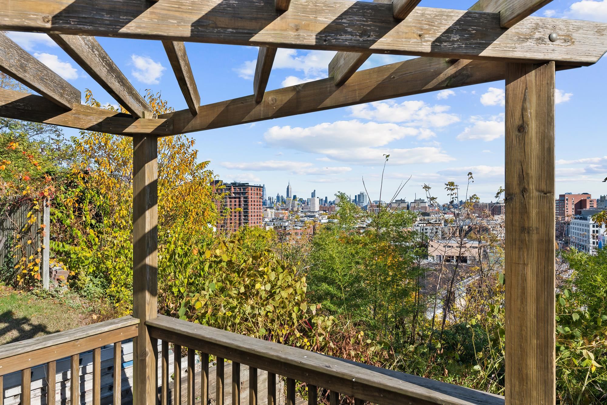 Location, location, location: this one family home enjoys unobstructed NYC skyline views on the east side of Ogden Avenue, Jersey City Heights most coveted block. The parlor floor features an open floor plan with spacious living room and generous dining room with original mantle, parquet floors and high ceilings, and a modern kitchen, full bathroom and laundry. Just off the dining room is the yard access with a spacious deck and yard with its dramatic NYC views. Upstairs are three bedrooms and a full bath; the oversized primary bedroom features a bay window and a walk-in closet. The lower level has a separate entrance and extra space for extended family. This home is being sold AS IS, and is ready to be personalized and updated for the next homeowner's taste. Fantastic location within the Riverview Arts District, with its restaurants, shopping, and community garden. Just down the block from stunning Riverview Park and farmers market. Ideal for commuting, with easy access to NYC bus and the "100 Steps" to Light Rail & Hoboken PATH.