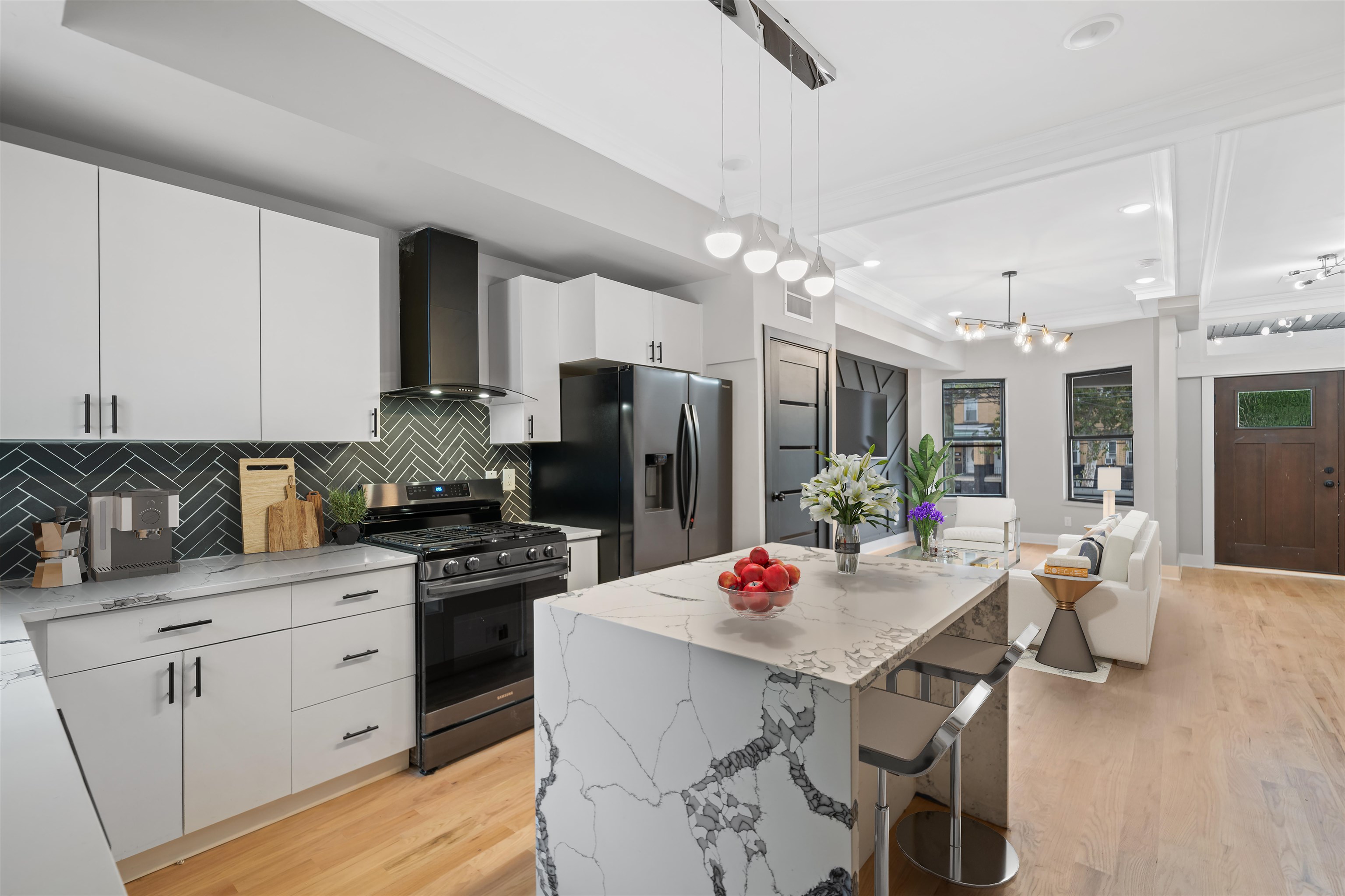 OH this Sat 12/06 @ 1:30PM-3:30PM & Sun 12/07 @ 1PM-3PM!! Mega lavish single family home with a parking spot 1/2 block away in Ultra desirable Jersey City Heights! One of Jersey City's top builders brings you this jaw-dropping single family home, re-built from the ground up with the utmost of elegance and style. EVERYTHING is top of the line and brand new, including the water and sewer lines! Marvel as you walk in to the open layout living room and kitchen, with sleek Calcutta Quartz Countertops & white Shaker cabinets, accented with a beautiful herringbone backsplash and a Samsung luxury appliance package. The first level is personified with magnificently designed coffered ceilings and a meticulously handcrafted fireplace accent wall. Enjoy the convenience of a bedroom on the first floor, leading out to a beautifully manicured Backyard Oasis & access to your lower level fully finished basement, with a laundry room and an open layout. The first level also contains a full bathroom with exceptional tile work! The second level is beautifully laid out with an additional 3 MASSIVE bedrooms with large closets & another full bathroom. The conveniences of Kennedy Blvd and various forms of public transportation, make commuting to the PATH a breeze, while also offering you many options for your dining pleasures. Truly a remarkable quality of life location, combined with the most sophisticated of living! *virtually staged photos