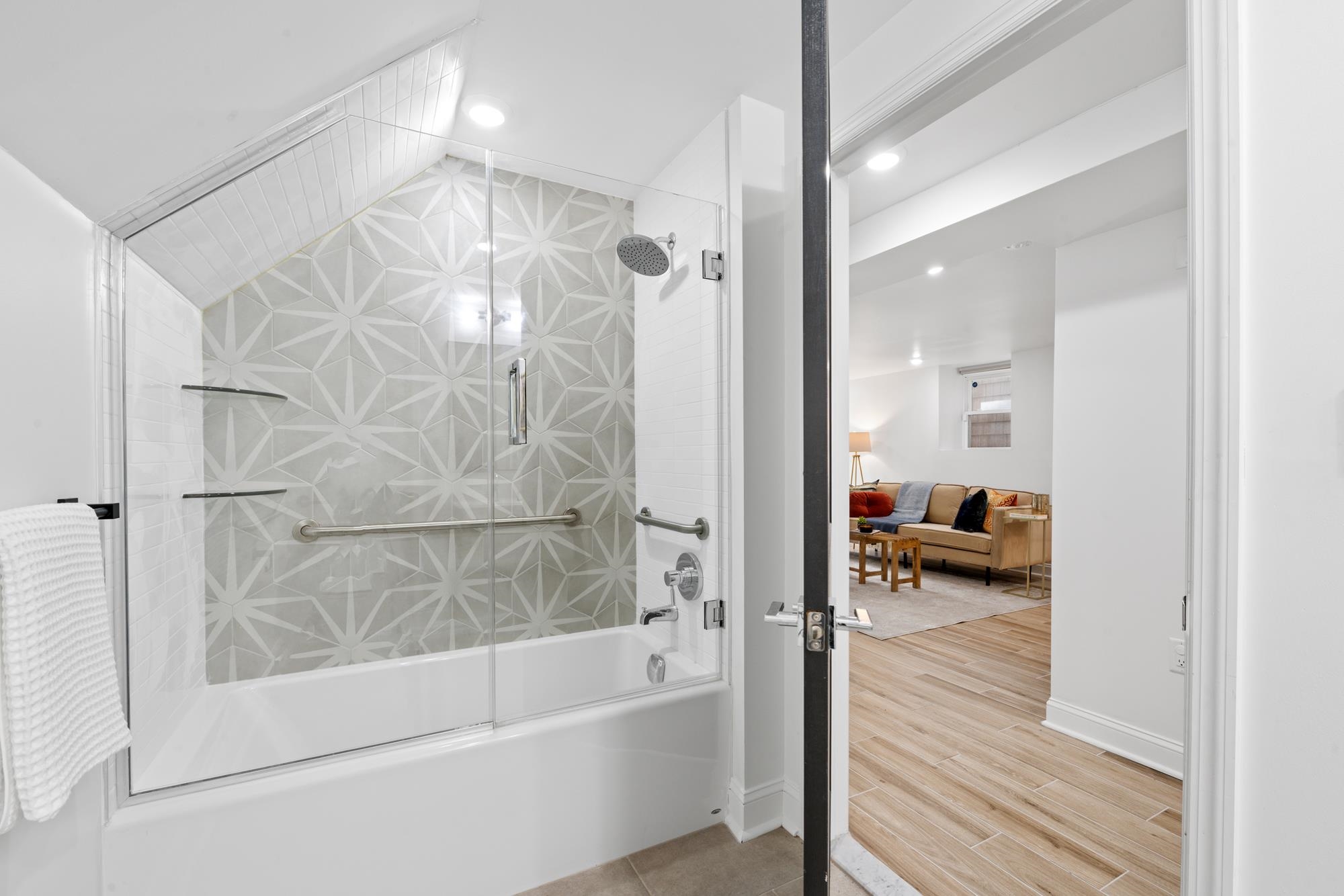 **PRIVATE BACKYARD + PARKING** Your next chapter begins at 201 Zabriskie #1, a beautifully redesigned two-story home in the heart of Jersey City Heights. Spanning nearly 1,800 square feet, this spacious 3-bedroom, 2.5-bath residence perfectly blends smart function, design, character, and comfort. This is true modern city living, complete with a fully finished private backyard and valuable private, off-street parking. Tucked away just moments from Leonard Gordon Park, Tonnelle Avenue, and the Holland Tunnel, this peaceful retreat offers quick access to the energy and amenities of the Heights and NYC. Step inside to a bright, open-concept main level. The living area is instantly inviting, centered around a cozy fireplace featuring a custom wood mantle and shiplap detail. Wood tile floors and custom lighting flow seamlessly into the full-size dining area and the gourmet kitchen, designed equally for everyday living and stylish entertainment. The kitchen is a sleek contemporary dream with Calcutta Bellow white quartz waterfall countertops and matching backsplash, custom cabinetry, and black stainless steel appliances and fixtures. It also boasts a large eat-in island, perfect for casual meals or larger gatherings. While the main level hosts two sizable bedrooms, each with a walk-in closet, the upper level is dedicated entirely to the private primary ensuite, offering a secluded sanctuary. Throughout the home, excellent built-in cabinets and closet space provide function and ease for daily living. The bathrooms feature luxurious touches, including a gorgeous glass shower with floor-to-ceiling herringbone tile, a spacious double vanity, and warm brass fixtures. Modern upgrades include central heating and air, a stacking LG washer & dryer, and a state-of-the-art video intercom system. Situated on a quiet, tree-lined street, this home delivers the best of modern city living in a prime location. Owners enjoy recently renovated Leonard Gordon Park with walking paths, playgrounds, farmers’ markets, and gardens. Jersey City Heights is known for its vibrant community, eclectic art scene, excellent schools, beautiful parks, and remarkably easy access to NYC. This is more than a home—it’s where smart luxury meets prime location. Welcome home to 201 Zabriskie #1.
