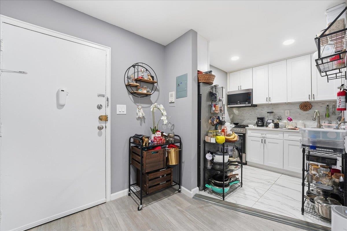 This beautifully renovated, bright, south-facing one bedroom condo in the Cambridge building also comes with one parking spot. Highly connected location with a quick 13 minute commute to midtown Manhattan, as well as easy access to Hoboken and Weehawken. Contemporary kitchen and bath, easy layout, and plenty of storage make this the perfect home. The building is pet friendly, has on-site laundry facilities, and low monthly maintenance costs.