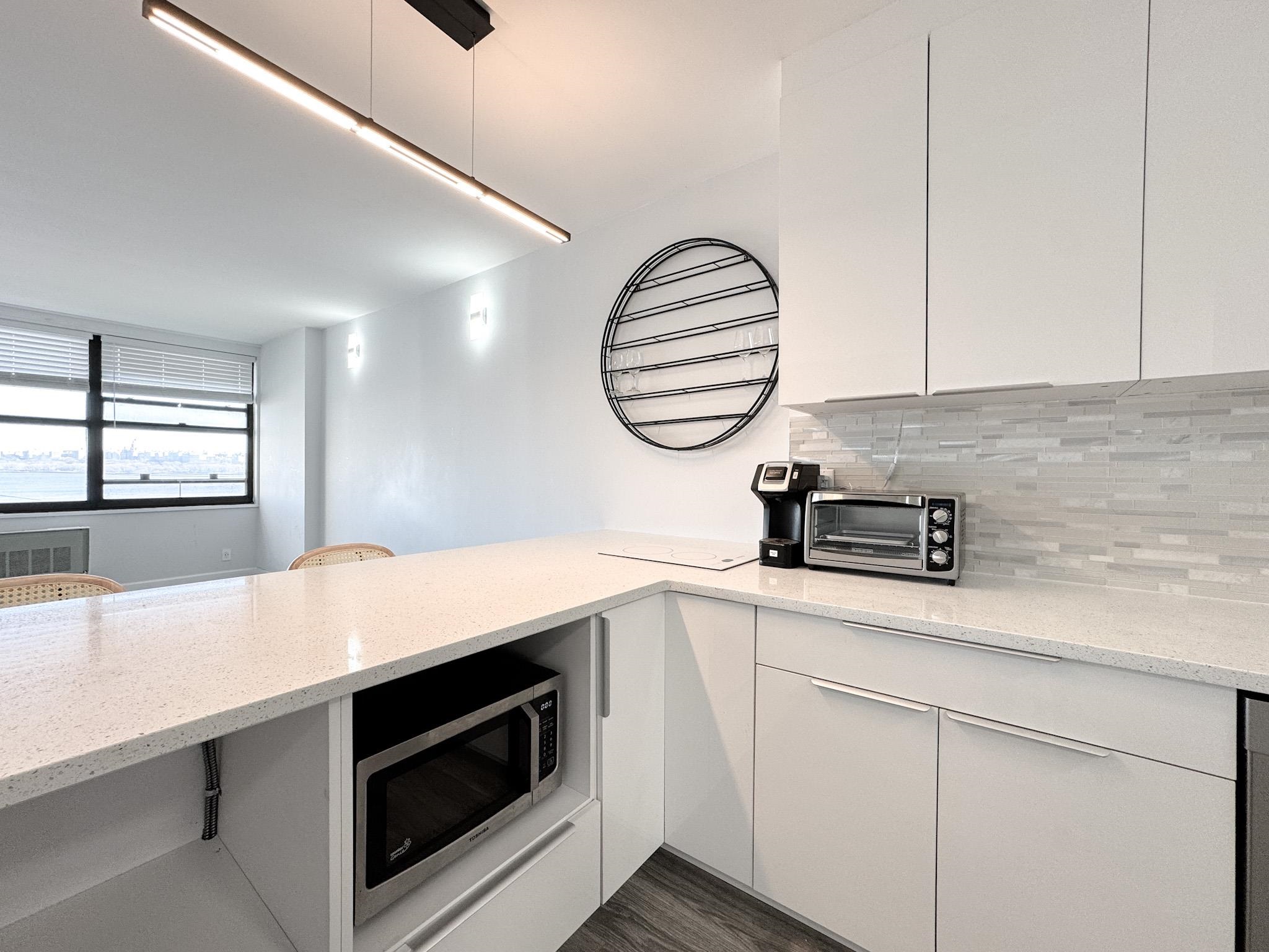 Don’t miss this spacious 932 sq. ft. 1-bed, 1.5-bath home in Galaxy Towers, offering breathtaking NYC skyline and Hudson River views from wall-to-wall windows. This oversized unit features hardwood floors, a modern kitchen with stainless steel appliances, and excellent storage—ideal for comfortable living or sharing. HOA fee includes all utilities, plus access to resort-style amenities: 24-hour concierge, state-of-the-art gym, indoor/outdoor pools, tennis & pickleball courts, sauna, steam rooms, jacuzzi, game room, and a beautifully landscaped private park. The attached mini-mall provides unmatched convenience with restaurants, a grocery store, pharmacy, dry cleaner, and more. Enjoy a quick 15-minute commute to Manhattan by bus or ferry, and close proximity to Whole Foods and Trader Joe’s. Parking is available for $120/month. Pet-friendly—up to two pets allowed. This gem won’t last!