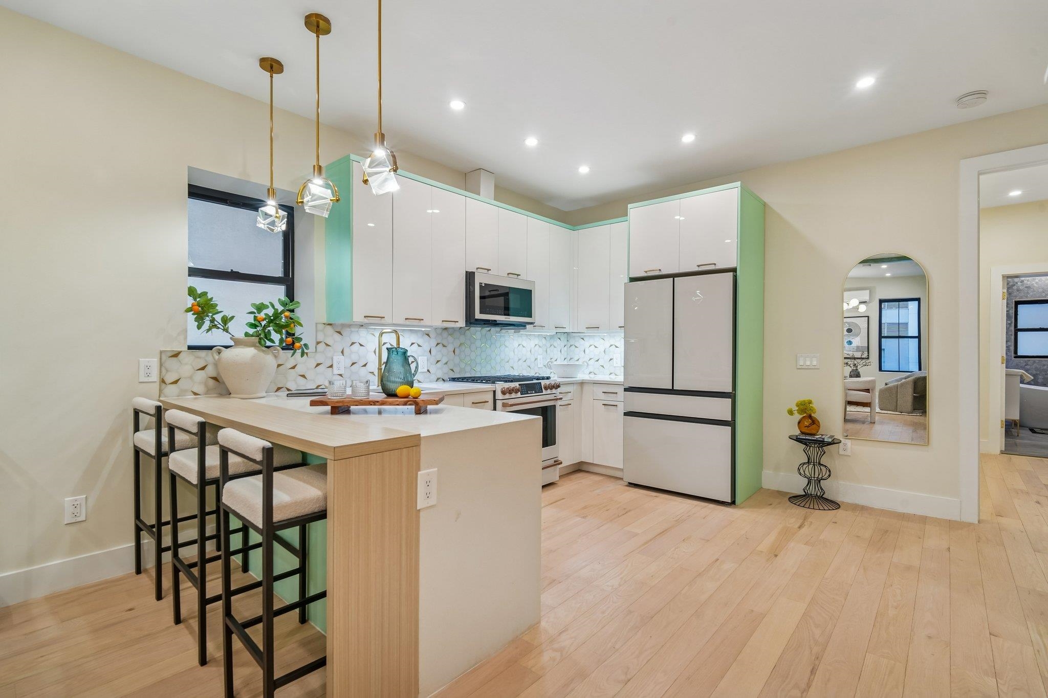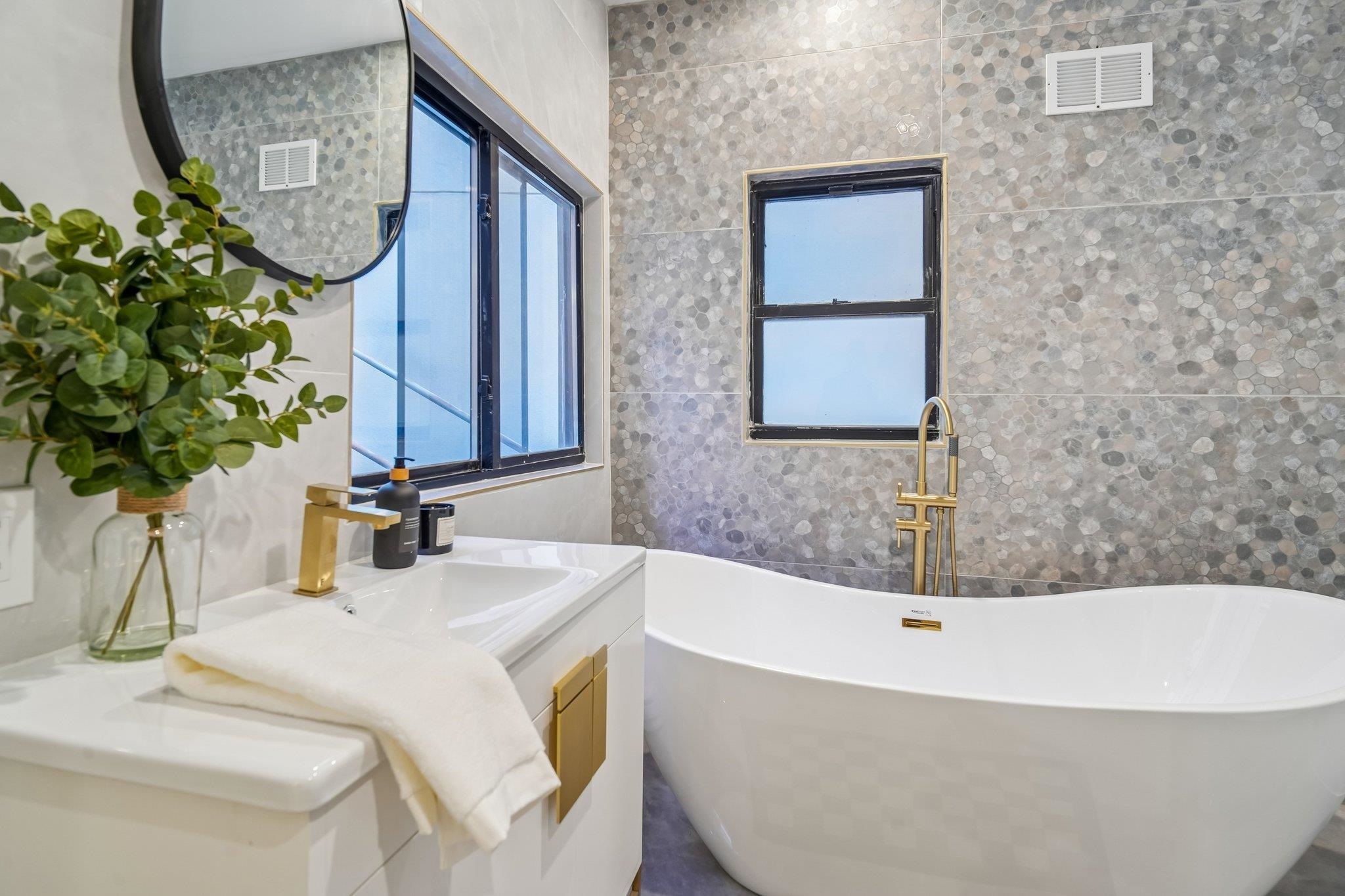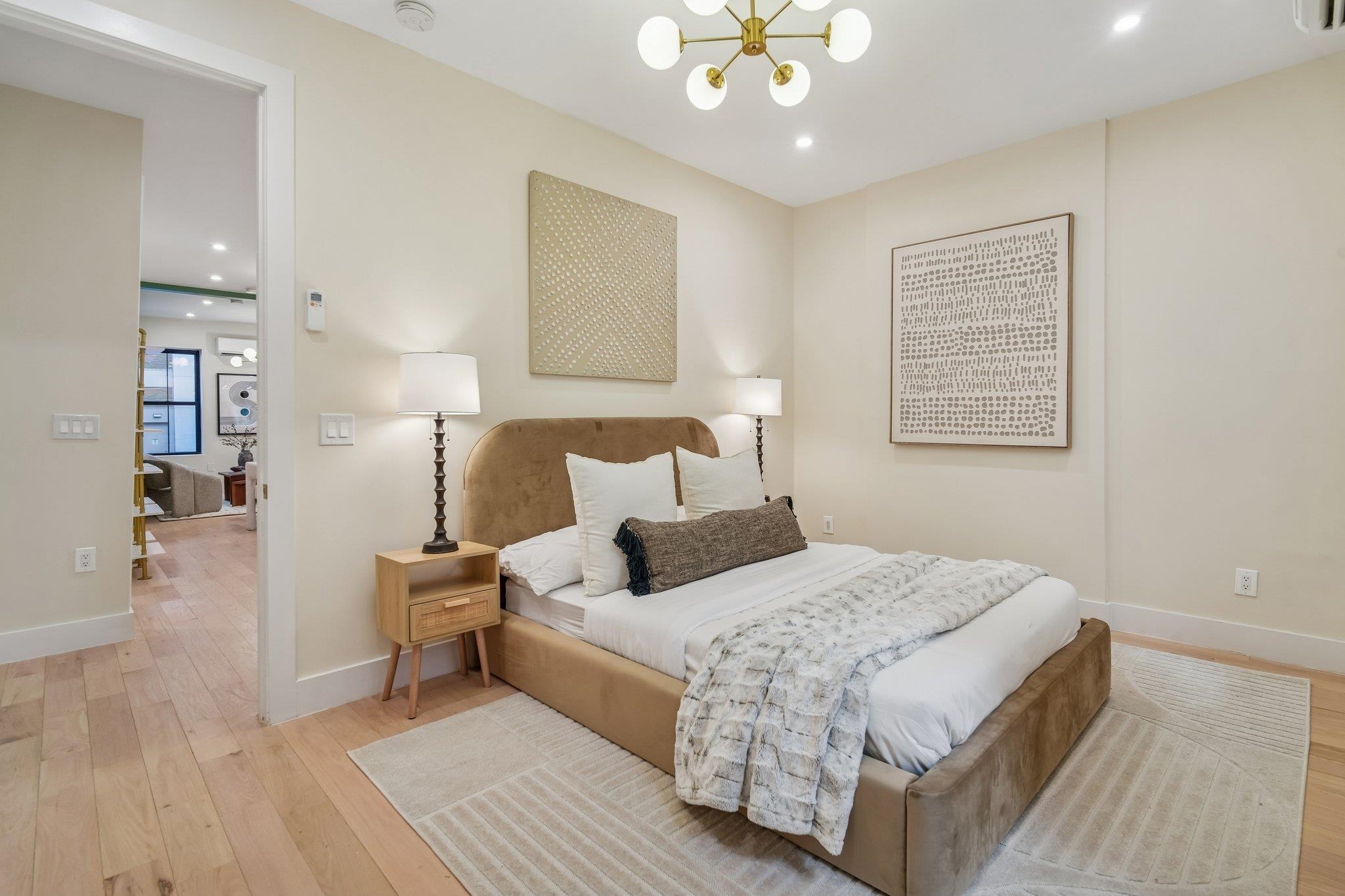 Sprawling 3 bedroom, 3 bath, Powerhouse Arts District stunner offering 1,750 sq. ft. of luxury! A complete renovation in 2023, this fabulous DUPLEX has it all and is the perfect family-sized home. Enter your open concept primary level featuring soaring ceilings, hardwood floors, chef's kitchen with a full suite of Samsung smart technology appliances, quartz countertops, breakfast bar, and stone backsplash. The living room (one of two!) features a custom architectural built-in, beautiful light installations, and is perfect entertaining space, while the separate dining area is meant for memorable meals with family and friends. Your primary bedroom suite is off the main living space for privacy and convenience, featuring king-sized proportions, a fabulous private deck which is perfect for morning coffee or a yoga pose, double closets, and a stunning windowed spa bath with freestanding soaking tub, and separate stone shower. A guest powder room with large format stone tile is smartly placed on this level as well. Downstairs is the perfect space for family, friends, and children...complete with another large family room, two bedrooms, full-sized W/D, another beautiful full bathroom, and a huge storage room which leads to a second private outdoor space! Want more? You are less than two minutes from the Grove St PATH! Imagine being at any number of locations in NYC in 15 minutes or so......the perfect commute. Right outside your front door awaits phenomenal restaurants, shopping, Whole Foods, Starbucks, Base Gym, and the Newark Ave pedestrian mall. A truly remarkable opportunity to own a large, Downtown home, at a fabulous price point.