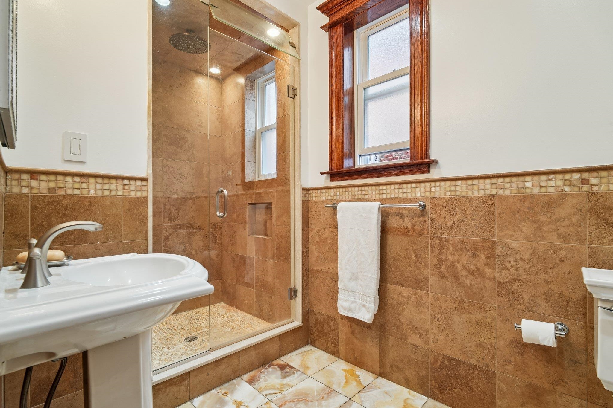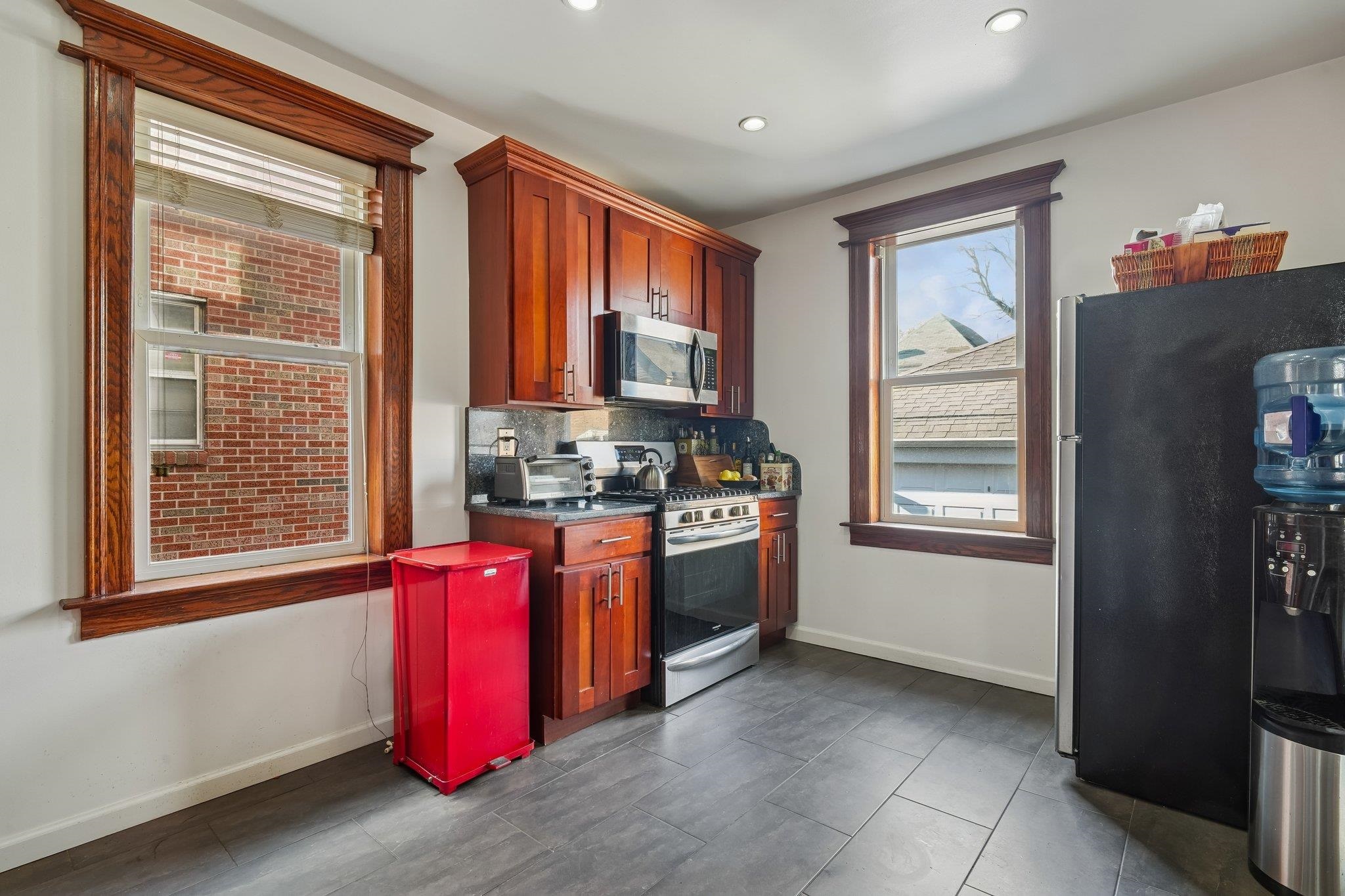 Outstanding legal brick two-family home in prime North Bergen location. The first two floors are spacious and versatile, offering flexible living or rental configurations. Notable features include a finished attic with skylights, refinished wood floors and doors, and a rock-solid block and bluestone foundation. Major upgrades throughout: 12-year roof with 30 years remaining on transferable warranty, new brick chimney with bluestone cap, separated 200 amp electric with new panels and permit signoffs, new water and gas lines with new meters, two high-quality gas boilers, two new 40-gallon hot water heaters, and fully separated utilities including two washers and two dryers. Exterior highlights include a brick two-car garage and long driveway accommodating up to four cars. A rare, impeccably maintained property in outstanding overall condition.