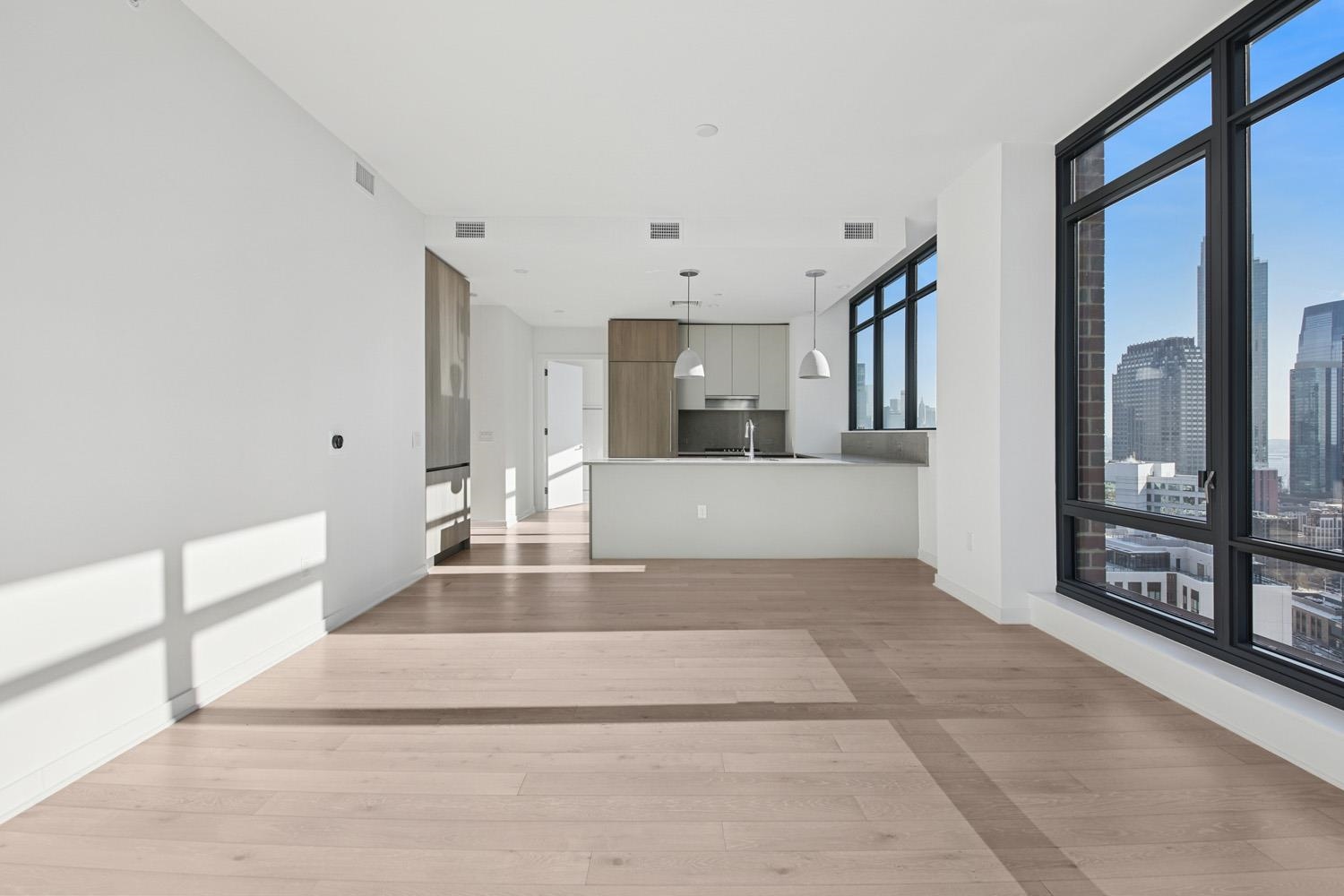 Limited-time seller incentive available: $15,000 toward closing costs or HOA fees for studios and one-bedroom residences; $25,000 toward closing costs or HOA fees for two and three-bedroom residences. Experience elevated urban living in Residence 2907, nestled in Jersey City's vibrant Powerhouse Arts District. This thoughtfully designed 1199 sq. ft. corner, two-bedroom, two-bathroom home blends modern form with refined function. Floor to ceiling southwest-facing windows flood the space with natural light, enhancing the sleek, minimalist design and white oak flooring. This home offers 10ft. ceilings, large walk-in closet and plenty of kitchen storage and cabinet space with added custom pantry. The open-concept gourmet kitchen seamlessly integrates with the living area, featuring custom Italian walnut and dove gray cabinetry, quartz countertops, and Bosch and Thermador appliances. The kitchen is a true chef's dream, designed to cater to both casual living and refined entertaining. The primary suite offers an unparalleled retreat, featuring a large walk-in closet and a spa-inspired ensuite with dual custom vanities, Kohler fixtures, and refined porcelain tile accents. The 2nd bathroom features a single custom vanity, Kohler fixtures, and a soaking tub with porcelain tile surround, offering a serene space. Additional highlights include a Whirlpool washer and vented dryer and 1 deeded parking space. Residents enjoy access to world-class amenities, including a sky lounge, rooftop terrace, fitness center, sundeck and pool, residents' lounge, children's playroom, dog run and spa, and a 24-hour attended lobby. Located just moments from the Grove Street PATH station, this residence offers unparalleled convenience and sophistication. This building features 259 residences distributed over 34 floors, offering an array of options, including studio, one-bedroom, two-bedroom, two-bedroom with den, and three-bedroom layouts.