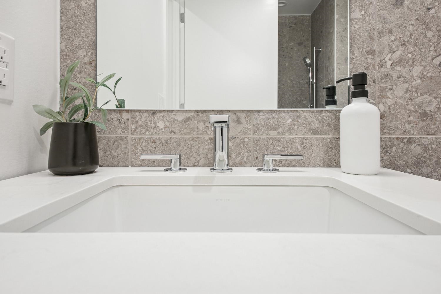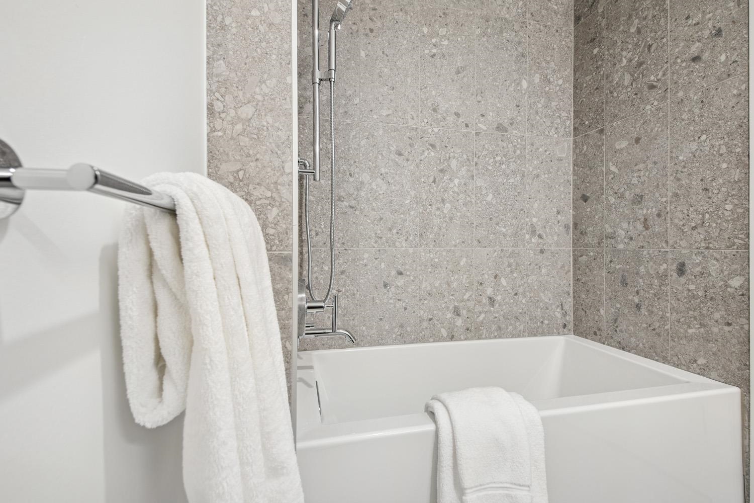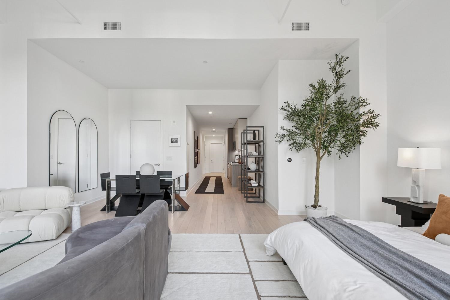 Limited-time seller incentive available: $15,000 toward closing costs or HOA fees for studios and one-bedroom residences; $25,000 toward closing costs or HOA fees for two and three-bedroom residences. Experience elevated urban living in Residence 707, nestled in Jersey City’s vibrant Powerhouse Arts District. This thoughtfully designed 920 sq. ft. residence offers an expansive layout that balances comfort and modern style. Soaring 13-foot ceilings enhance the sense of space, while east-facing windows welcome gentle morning light throughout the home, highlighting the sleek, minimalist design characterized by mixed material finishes and white oak flooring. The open-concept kitchen seamlessly integrates with the living area, featuring custom Italian walnut and dove gray cabinetry, quartz countertops, and Bosch appliances. The spa-inspired bathroom features a single custom vanity, Kohler fixtures, and a soaking tub with porcelain tile surround, offering a serene, modern retreat. Additional highlights include a vented Whirlpool washer and dryer and 1 deeded parking space. This building features 259 residences distributed over 34 floors, offering an array of options, including studio, one-bedroom, two-bedroom, two-bedroom with den, and three-bedroom layouts. Residents enjoy access to world-class amenities, including a sky lounge, rooftop terrace, fitness center, sundeck and pool, residents' lounge, children's playroom, dog run and spa, and a 24-hour attended lobby. Located just moments from the Grove Street PATH station, this residence offers unparalleled convenience and sophistication.