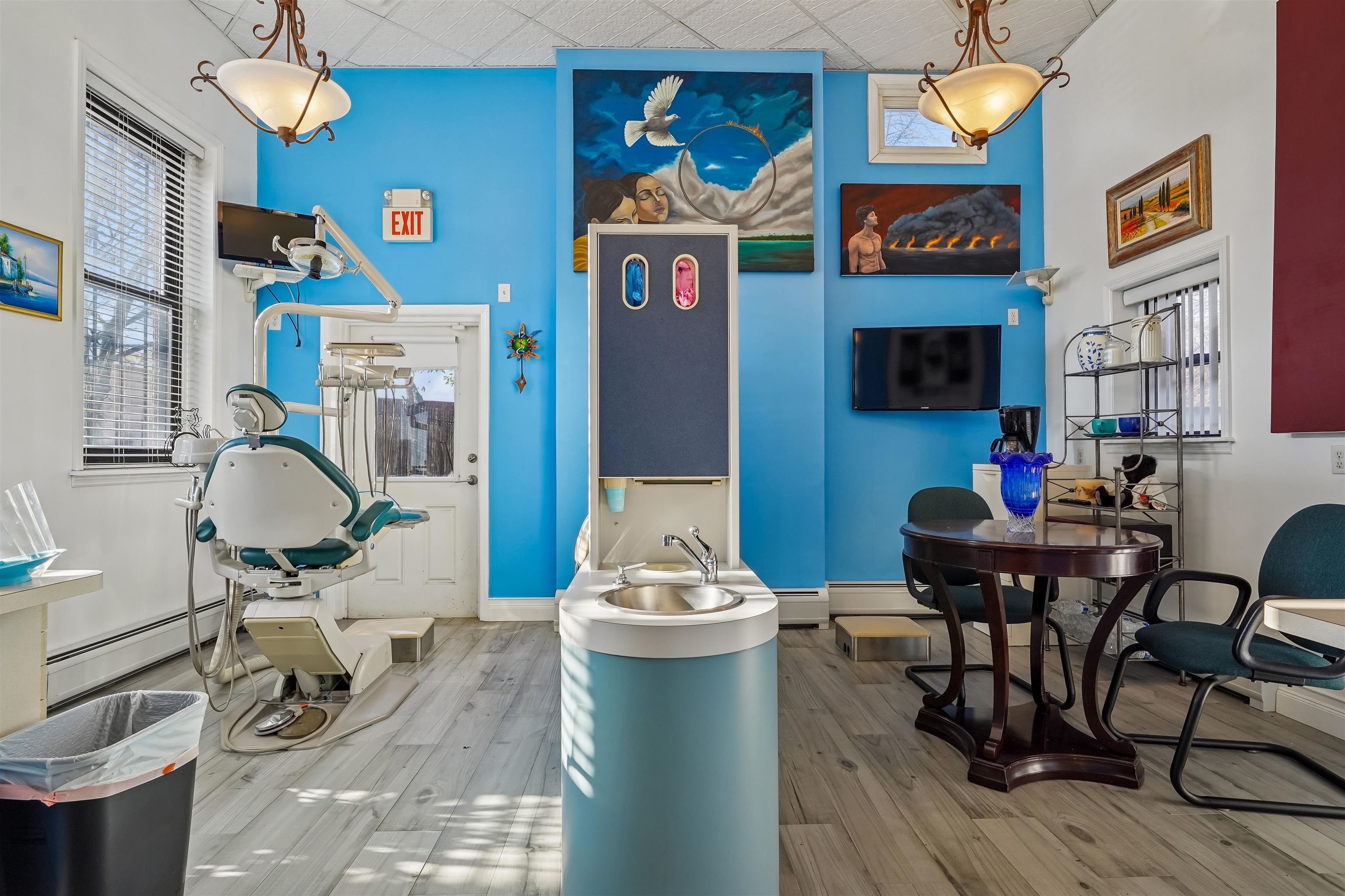VAN VORST PARK COMMERCIAL OFFICE CONDO in the heart of Downtown Jersey City! This high traffic corner TURNKEY condominium offers 900 square feet of modern, street level space, PLUS a full stand-up height basement! Large, plate glass windows showcase the outstanding corner location, while the historic exterior facade is attractive and inviting. Adjacent to a major shopping center, this is the perfect space for all professionals, physicians, attorneys, dentists, training/yoga/pilates studios, etc. Currently set up as a medical/dental professional space with waiting room, treatment rooms, private bathroom, and staff break rooms. Located close to the Grove St PATH and major transportation. Want more?......private backyard/outdoor space is included! A must see and rare opportunity to own office/commercial space in the center of this uber desirable downtown neighborhood!