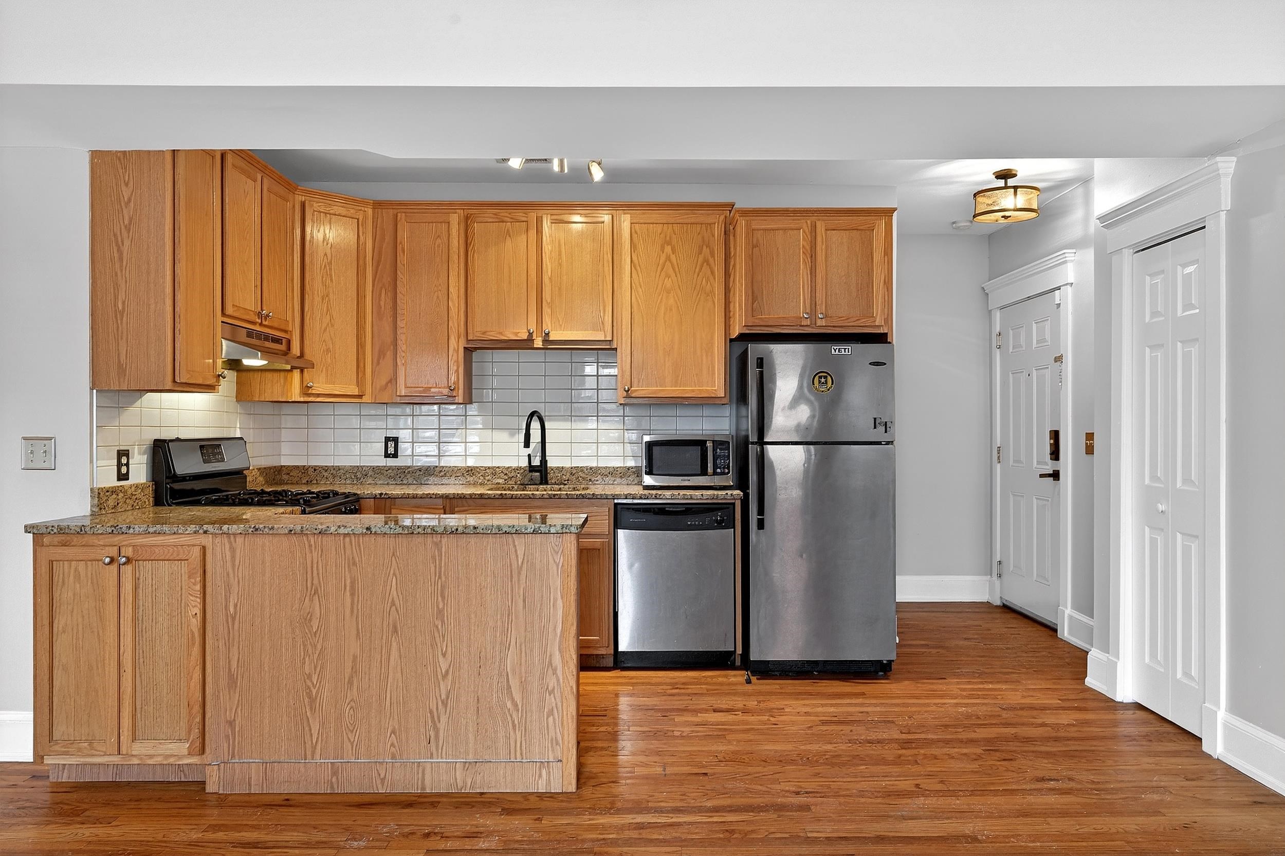 Spacious and sun-filled 3-bedroom, 1-bath apartment located on the first floor in the desirable Bergen-Lafayette section of Jersey City. Enjoy true step-free living with no stairs or elevator required. This bright home features high ceilings, abundant natural light, central air, ceiling fans in every room for efficient airflow, and a Nest thermostat for modern comfort and energy efficiency. Each bedroom offers generous closet space, while the updated bathroom includes a new vanity, modern toilet, and a heated mirror with integrated lighting. The building offers secure key-fob access and a conveniently located laundry room just one short flight down, with both coin-operated and app-based payment options. Ideally situated just an 8-minute walk to the Light Rail, with bus service to and from NYC right around the corner. Only a few blocks from Lincoln Park, offering green space, recreation, and easy access to neighborhood amenities. A fantastic opportunity for comfortable living with excellent transit access.