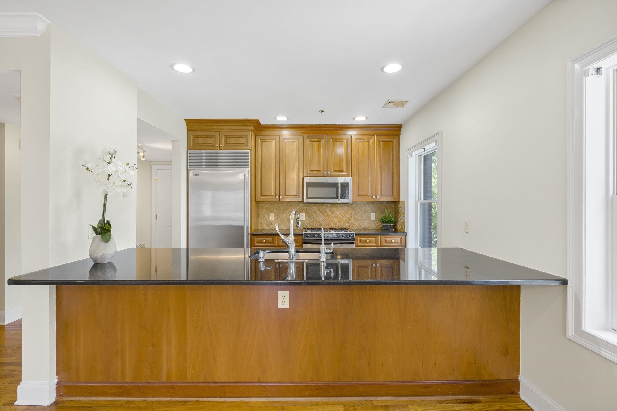 Newly Renovated Condo unit with hardwood floors and Manhattan view. The recently renovated kitchen boasts Stainless appliance package, Granite Counters and more. French door leads to large bedroom with a Manhattan view. The building has an elevator, Washer Dryer rooms on each floor with recently updated hallways and common space.