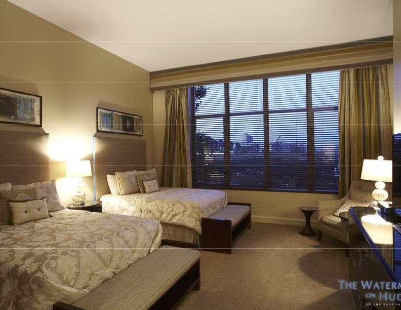 Chic 2-Bed, 2-Bath Condominium at The Watermark – Prime Hudson River Waterfront. Beautiful wood floors add warmth and sophistication to the open living space layout. The modern kitchen boasts wooden cabinetry, sleek stainless steel appliances, and elegant countertops. The spacious living room offers breathtaking northeast-facing views of the Hudson River, filling the space with natural light. The primary suite is a tranquil retreat, featuring a generously sized bedroom, an en-suite bathroom with a soaking tub, and a large walk-in closet. The second bedroom also includes a walk-in closet, enjoys westward exposure, and is conveniently located near the second full bathroom and in-unit washer/dryer. 1 deeded parking spot included. World-class amenities at The Watermark include over 40,000 sq. ft. of indoor and outdoor resort-style facilities, featuring indoor and outdoor pools and hot tubs. Fully equipped fitness center featuring a steam and sauna room.Children's playroom, Pool table, and media room.Golf simulator and business center.Private shuttle to Weehawken Ferry, valet parking, and 24-hour concierge service.Guest suite available on-site for visitors. Enjoy seamless city living with easy access to NYC (via a private shuttle to the ferry) or the NYC bus service just outside your door.Perfect blend of lifestyle and long-term investment value