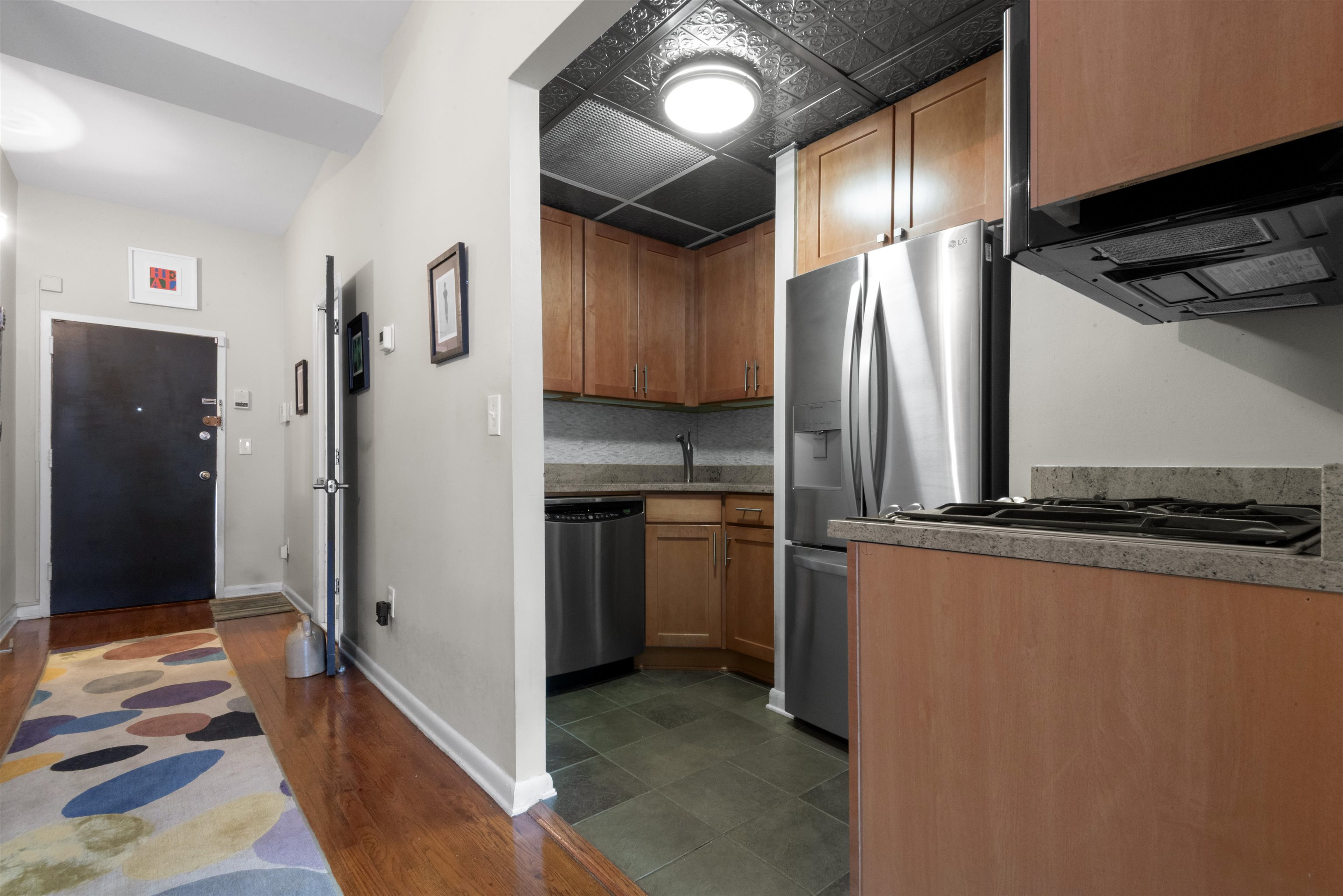 Rarely available, this sun-filled 2-bedroom, 2-bath residence seamlessly blends indoor and outdoor living, anchored by an impressive nearly 500 sq. ft. private terrace—ideal for entertaining, unwinding, or enjoying quiet moments outdoors. Expansive windows flood the home with natural light, highlighting rich hardwood floors throughout. An indoor, deeded heated parking bay with dedicated storage adds a level of convenience that’s hard to find. This duplex is also one of the few in the community featuring a true straight staircase, offering both style and functionality. The modern kitchen is outfitted with stainless steel appliances, granite countertops, and an efficient layout designed for everyday living. Both bedrooms are generously sized with ample closet space, and an in-unit washer and dryer complete this thoughtfully designed home. Set within the historic Dixon Mills, known for its charm and amenities, residents enjoy 24-hour security and concierge service, as well as access to an 8,000 sq. ft. lifestyle center that includes a state-of-the-art fitness center, indoor basketball court, sauna, screening room, club lounge with fireplace and billiards, and even a children’s playroom. All of this just a short walk to the Grove Street PATH Station, shops, restaurants, and everything Downtown Jersey City has to offer.