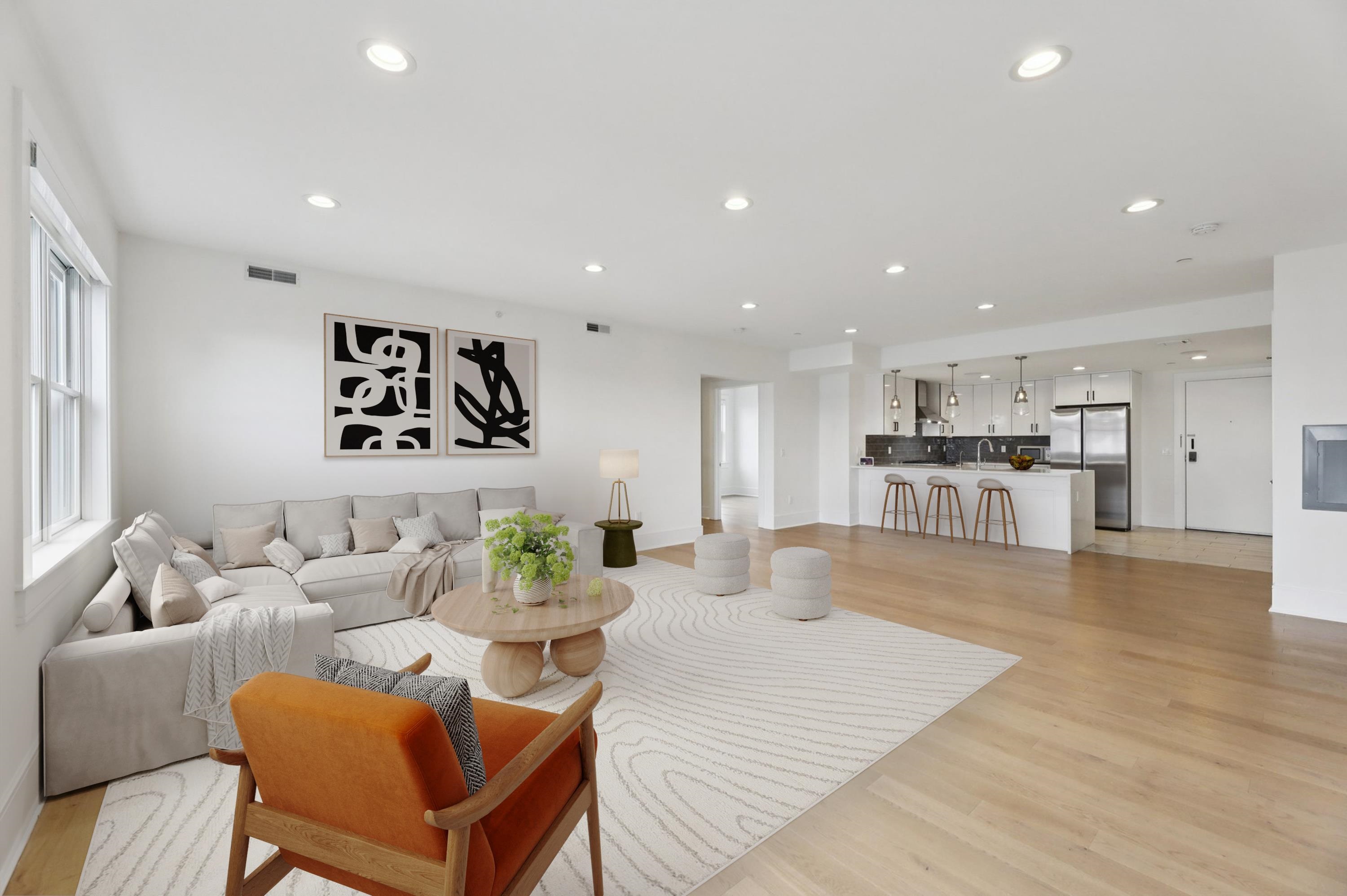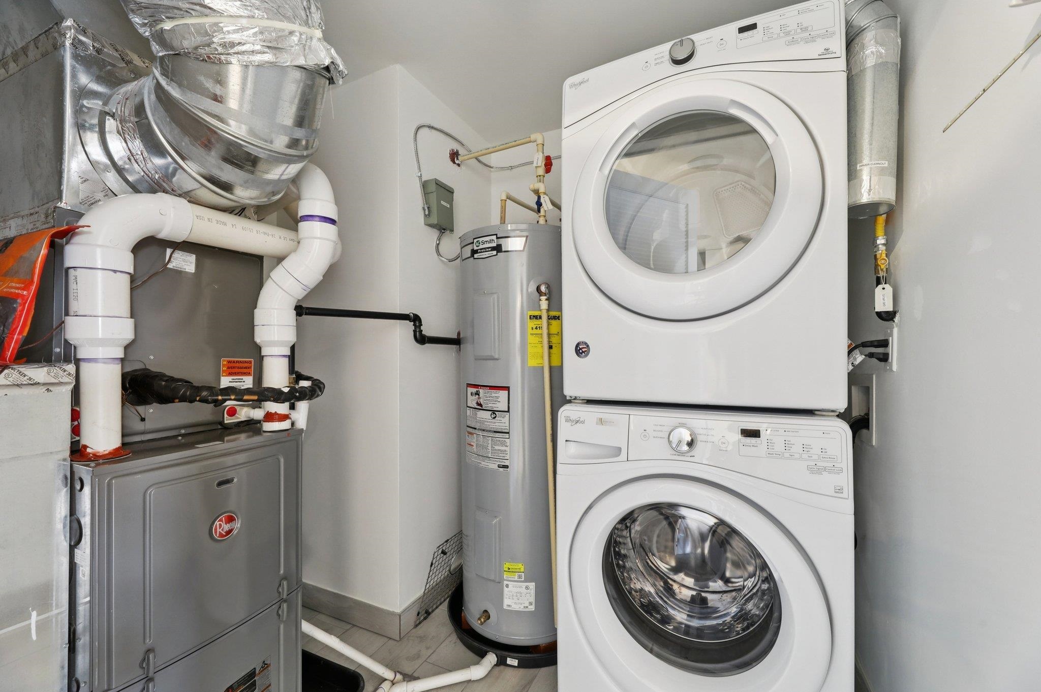 Modern and airy 3-bedroom, 2-bath condo offering 1,635 sq ft of thoughtfully designed living space and a deeded garage parking spot. The open-concept layout features a spacious living and dining area that flows seamlessly into a chef’s kitchen with quartz waterfall countertops, gas range with vented hood, and premium stainless steel appliances. The king-sized primary suite includes a spa-inspired bathroom with a rainfall shower, dual vanity, and a custom walk-in closet. Two additional bedrooms and a full bath are situated on the opposite side of the home, providing privacy and flexibility for guests, family, or a home office. Smart home upgrades include hardwired controls for lighting, music, and doorbell. Recently refreshed with premium zero-VOC Benjamin Moore paint, the home also features central air and heat, in-unit washer/dryer, and garage parking spot #6—one of the most convenient in the building. Esperta, built in 2019, is a modern elevator building with a virtual doorman and security. Ideally located just ~200 feet from NJ Transit express buses offering 20+ direct routes to NYC (second to last stop before the Lincoln Tunnel), commuting is effortless. Enjoy proximity to the Weehawken waterfront, Whole Foods, Reservoir Park, and local dining.