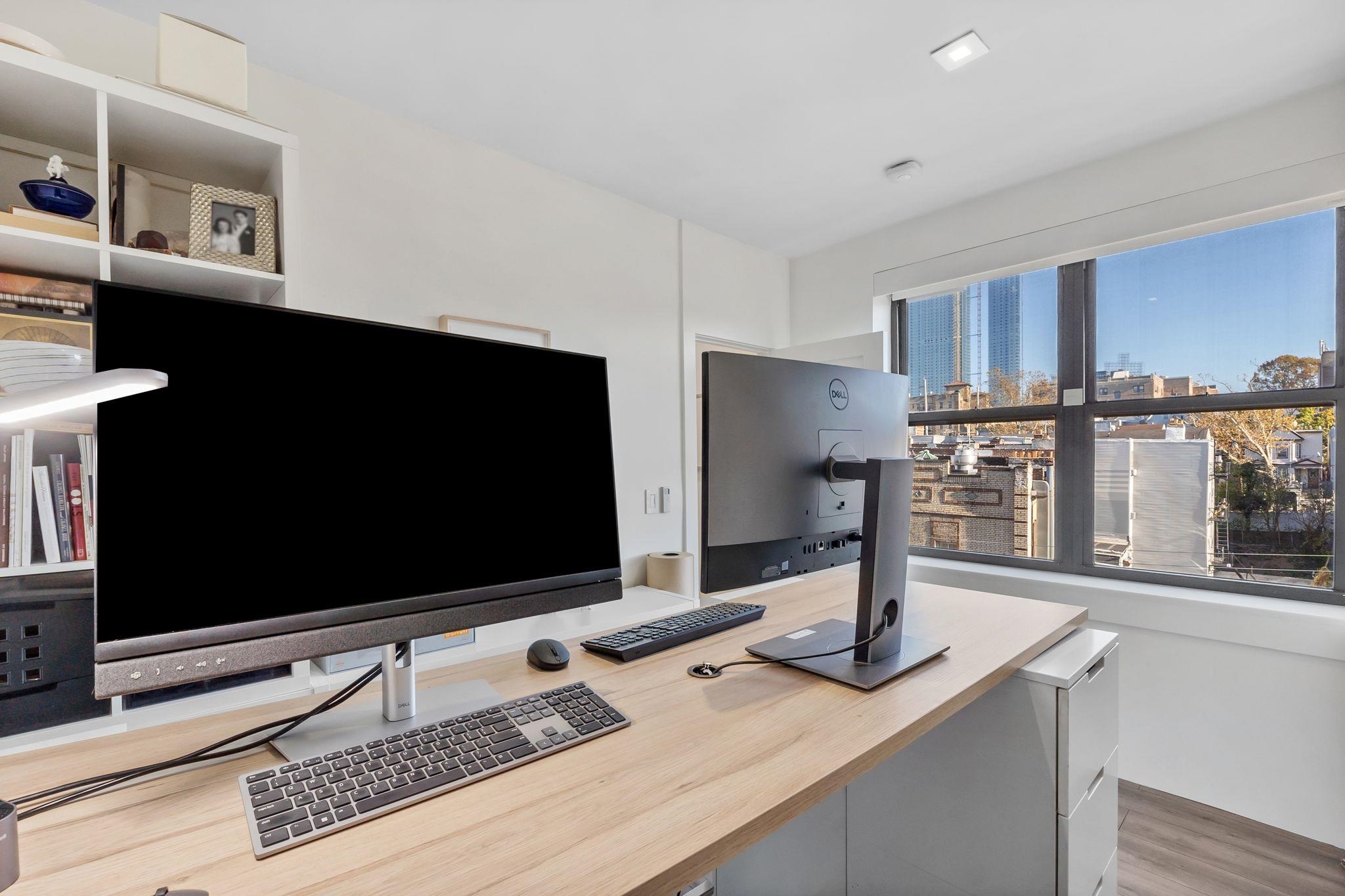 Welcome to your modern oasis at 43-49 Van Wagenen Avenue, Unit 4A, in the vibrant heart of Jersey City, NJ. This fully renovated two-bedroom, one-bathroom residence offers a seamless blend of contemporary design and comfortable living with a parking spot. Step inside to discover a thoughtfully designed open-concept layout that maximizes space and natural light. The living area is perfect for relaxation and entertainment, featuring sleek finishes and a neutral palette that complements any style. The state-of-the-art kitchen boasts high-end stainless steel appliances, custom cabinetry, and elegant countertops, making it a chef's dream. Both bedrooms are generously sized, offering ample closet space and large windows that invite an abundance of sunlight. The modern bathroom is a sanctuary of luxury, complete with designer fixtures and a sophisticated tile design. This unit is part of a well-maintained building that offers convenience and accessibility. Located in a thriving neighborhood, you'll enjoy easy access to local dining, shopping, and entertainment options. Commuting is a breeze with nearby public transportation and major highways. Experience the perfect blend of style and function in this beautifully renovated home. Whether you're a first-time buyer or looking to downsize, this Jersey City gem is ready to welcome you home. Don't miss the opportunity to make it yours today! Unique Features of this Unit: *8.8’ - 9’ ceiling. *Additional walls, floors and ceiling insulation and soundproofing installed. *New plumbing and electrical throughout. *New windows. *New HVAC units. *Integrated FIOS High Speed Internet. *LED recessed ceiling and under cabinet lighting throughout with Lutron dimmer switches. *Marble thresholds throughout. *Nano glass countertops and window sills. *Kitchen: Ceramic slab back splash, hot water on demand, garbage disposal, air fry oven, induction cooktop, pot filler, microwave drawer, filtered water, dishwasher, powerful extractor hood above cooktop vents out cooking smells. *Floor-to-ceiling marble tiled bath with heated towel racks. *Floor to ceiling closet doors. *NEST Co2 and smoke detectors. *Remote roller shades by The Shade Store. *Private balcony off 2nd bedroom (which sets us apart from other 2 bedroom apartments). *Close proximity to Journal Square Path, Mana Contemporary, future Pompidou Museum location. *Parking $150 per month