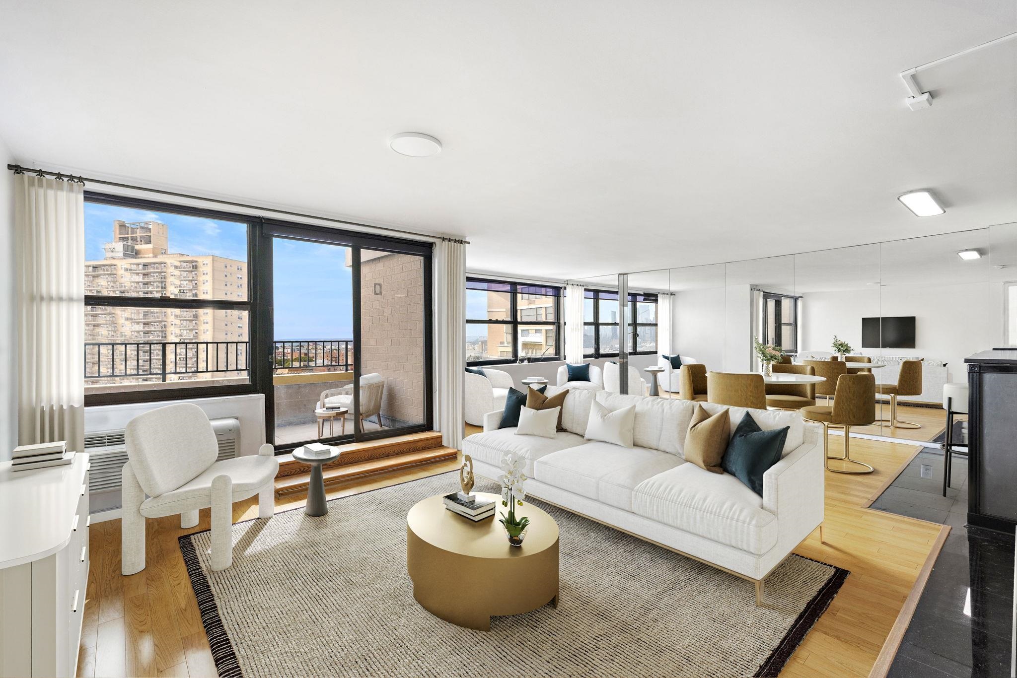 Prime Location, East-facing waterfront view, one-bedroom offering approximately 766 sq ft of sun-filled living space. This home features new hardwood floors, 2-year-old stainless steel appliances, and a well-appointed kitchen with ample cabinet and counter space. Both the living room and bedroom have east-facing windows, providing abundant natural light throughout the day. ALL UTILITIES INCLUDED in the monthly maintenance—heat, hot water, gas, electric, water, air conditioning (internet/cable additional). Building is Pet Friendly! Located in the full-service Galaxy Towers, offering a 24-hour doorman, indoor & outdoor pools, gym, children’s room, garden, on-site shops, and more. Excellent NYC commute with four NJ Transit bus lines nearby. Parking available