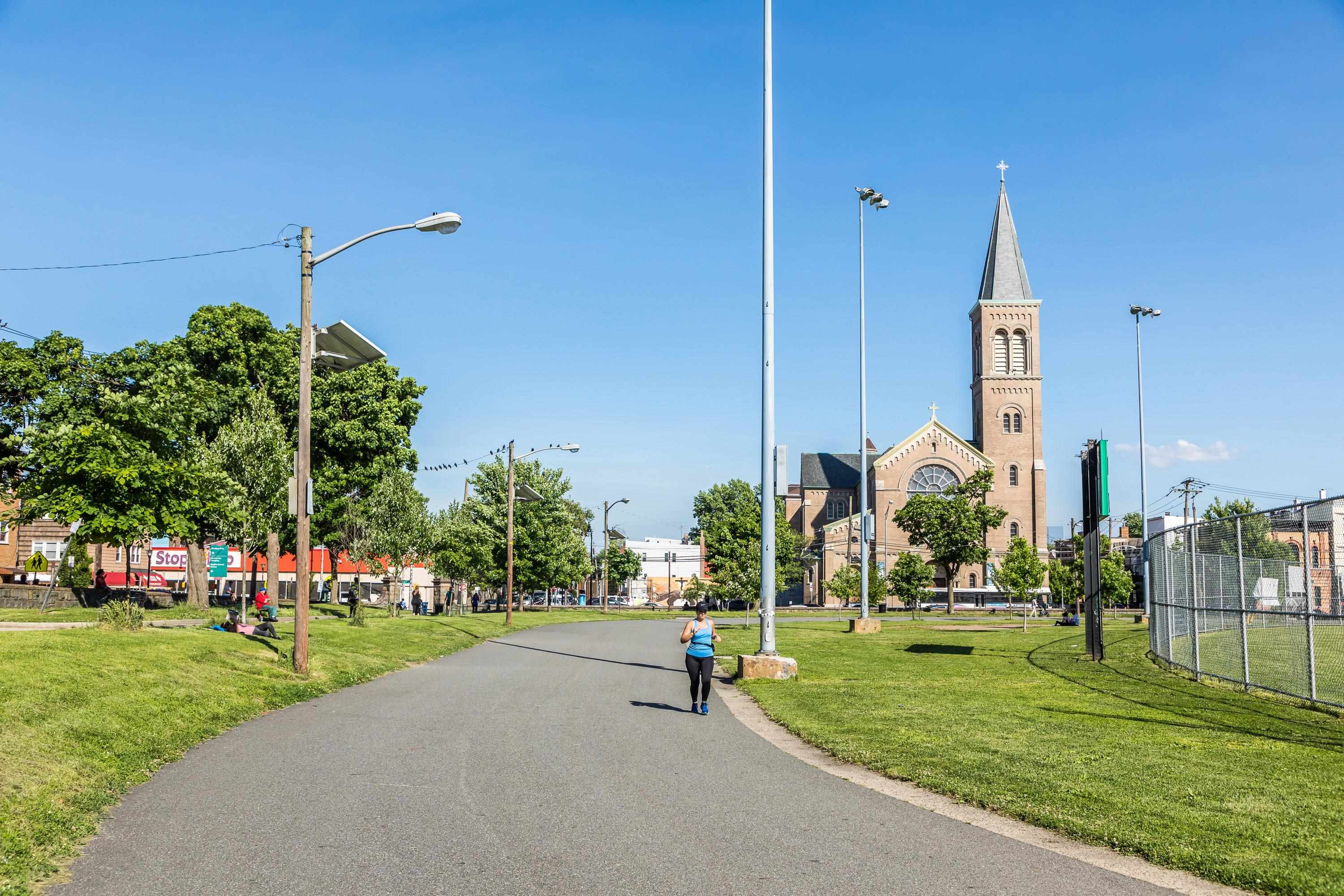 Perched above peaceful Pershing Field Park, this newly renovated residence brings a rare blend of modern indoor-outdoor living—this time, with a private backyard oasis. Brought to you by renowned local builder, this 2 bedroom, 2 bath home offers a front-row seat to parkside living, plus modern design and unbeatable location in Jersey City Heights. A wall of floor-to-ceiling windows floods the park-facing living space with light and highlights the light oak hardwood floors. The kitchen is thoughtfully composed with sleek deep navy lower cabinets, white uppers, quartz counters and eat-in peninsula, herringbone tile, and stainless appliances. Each bedroom offers double glass door access to the beautifully landscaped, fully fenced backyard complete with new pavers, offering a sanctuary away from city life. Bathrooms bring elegant extras—one with a soaking tub, the other with an oversized shower and a multi-spray system—plus tile finished to the ceiling, smart mirrors and sizable vanities keep things clean and contemporary. Tucked on a tree-lined street in the heart of Jersey City Heights, this residence is moments from Central Ave shops, Reservoir #3, and Pershing Field Park, with nearby access to the 2nd Street Light Rail, PATH, and Hoboken ferry. It’s parkside living—rooted in comfort and curated with care.