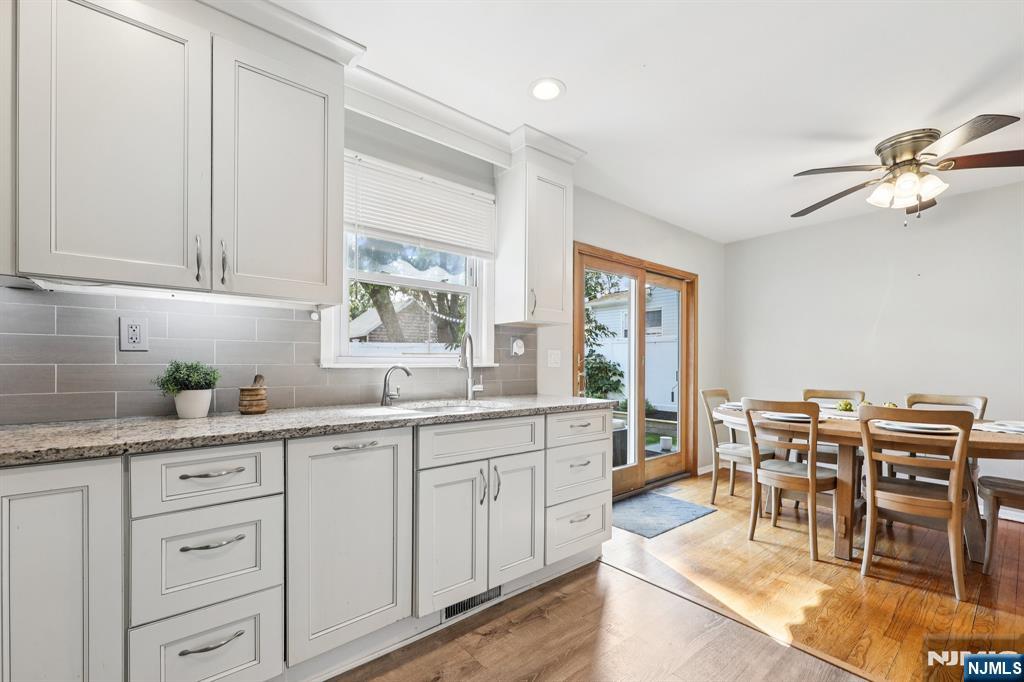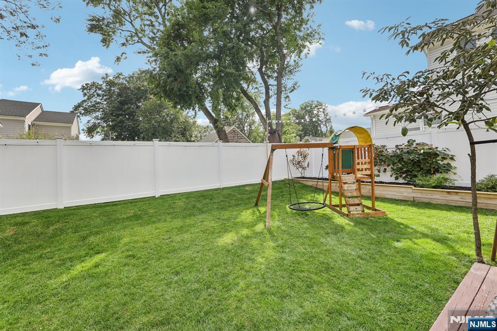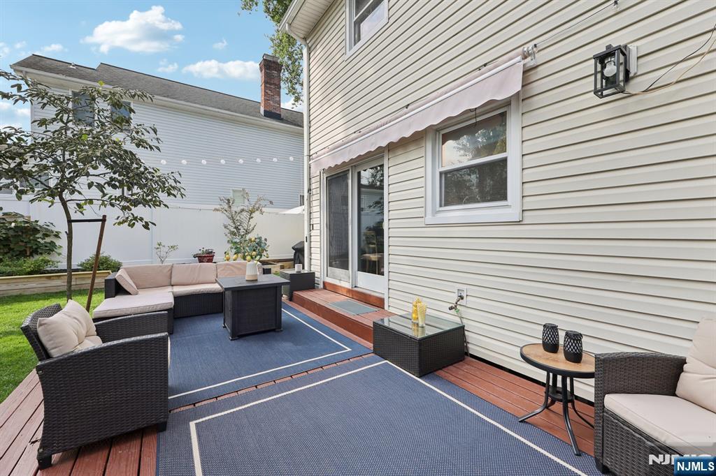Welcome to this picture-perfect Sidehall Colonial, bright and airy throughout with great updates. The inviting foyer opens to a sunny living room with bay window, recessed lighting, and open staircase with coat closet. The dining room flows to the updated kitchen with custom cabinetry, granite counters and tiled backsplash; with a sliding glass door leading to the newly fenced, private backyard. Outdoors, enjoy endless recreation and relaxation with a large deck, paver patio fire-pit area, and plenty of room for play. The 2nd floor offers three generous bedrooms and a full bathroom, along with pull-down attic storage access. The lower level features a den/recreation room, work area, laundry room, and powder room. The convenient attached garage offers a new mudroom area and is enhanced with a beautiful new garage door. Additional features include the young roof with warranty and leaf-guard gutters (2019), central air, whole-house fan, 150-amp electric, and beautifully landscaped property with mature plantings. Move right into the beloved Travell district, and enjoy all that Ridgewood has to offer!
