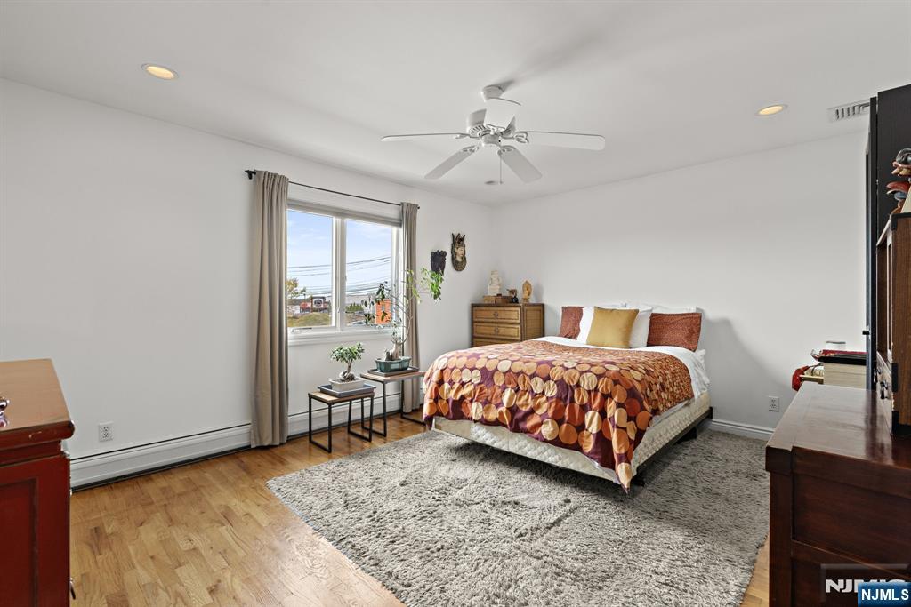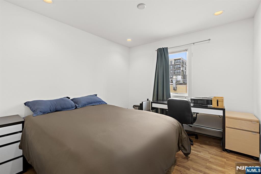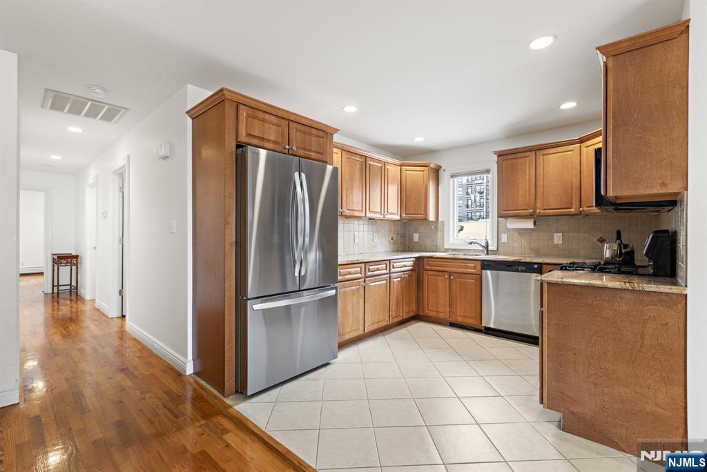 Spacious and thoughtfully designed three-bedroom, two-bathroom condo complete with one-car garage parking. The open-concept living and dining area at the front of the home provides an inviting space for both relaxing and entertaining. The large kitchen features an abundance of warm cabinetry, a stylish tiled backsplash, granite countertops, and stainless steel appliances. The private primary suite boasts generous closet space and a full bath with a Jacuzzi tub. Additional highlights include hardwood floors throughout, a large laundry room with side-by-side washer and dryer, central heating and cooling, and extra storage conveniently located behind the garage. Ideally situated near the Bergen Boulevard bus stop, this home offers an easy commute and a comfortable, convenient lifestyle.