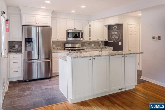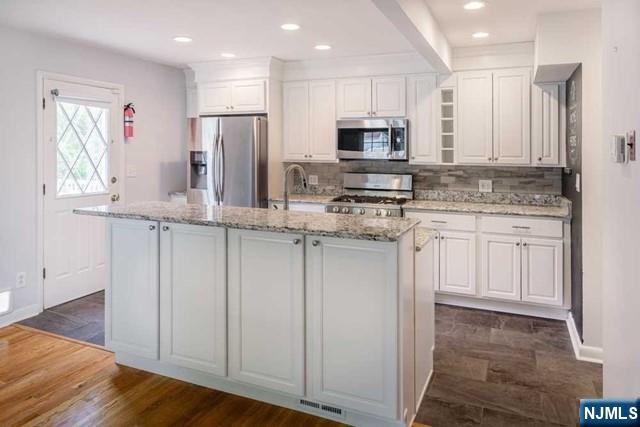 Modern living awaits you in this beautifully renovated home. Gleaming hardwood floors and open concept layout welcomes you. The bright living features stone living room. Updated kitchen boasts stainless appliances, granite counters, farmhouse sink, and center island which opens to the dining area with access to spacious deck. A powder room conveniently completes the first level. Primary suite with two double closets, modern full bath and two additional guest rooms on second level. Rec are on lower level. Desirable East Cresskill, close to all town schools! shopping, NYC and local bus!