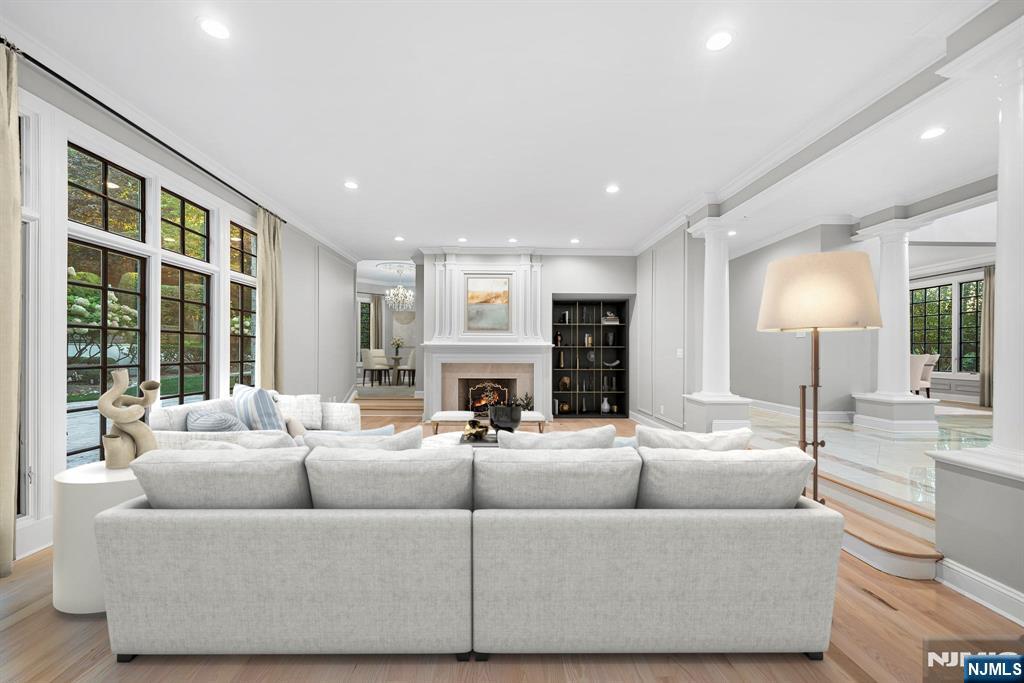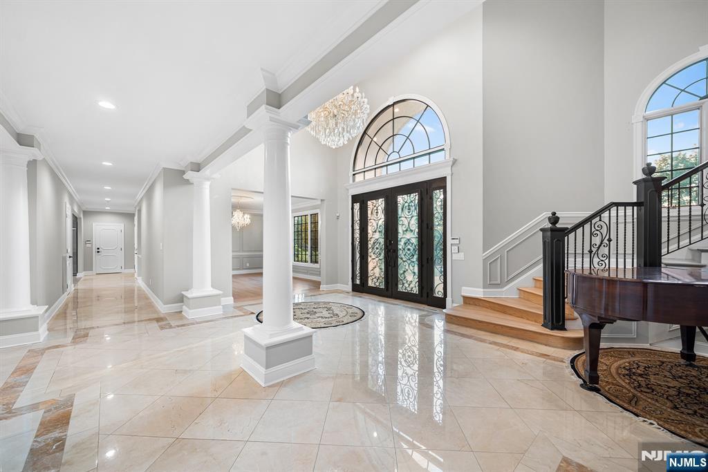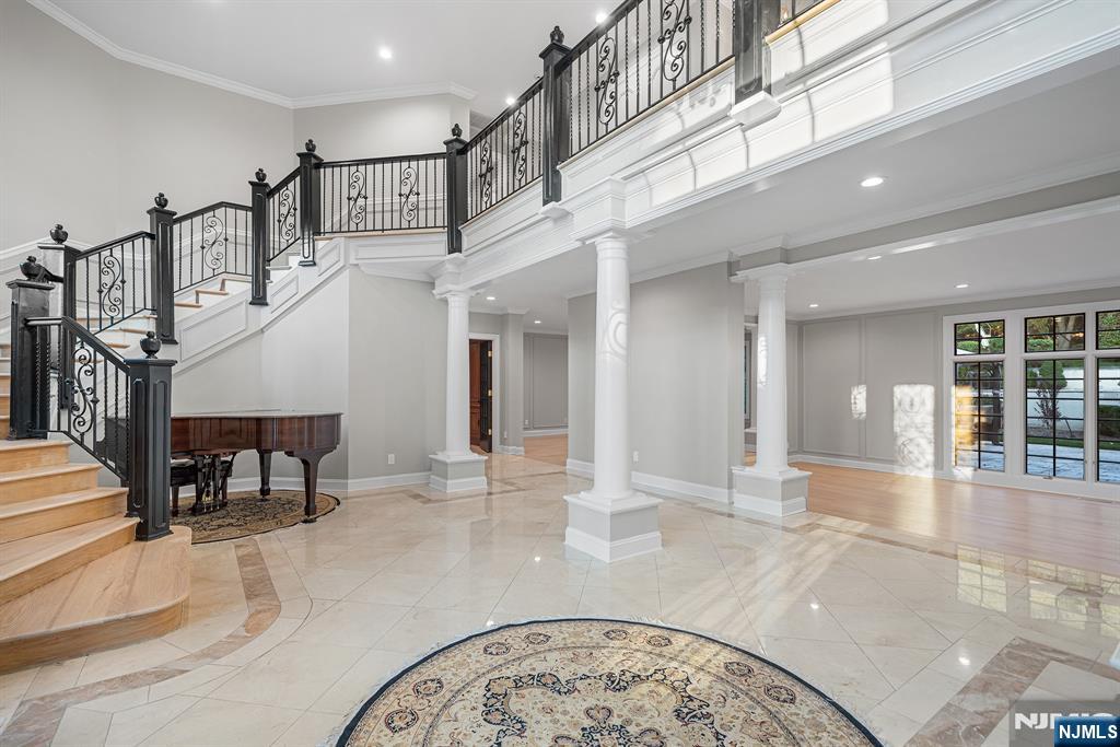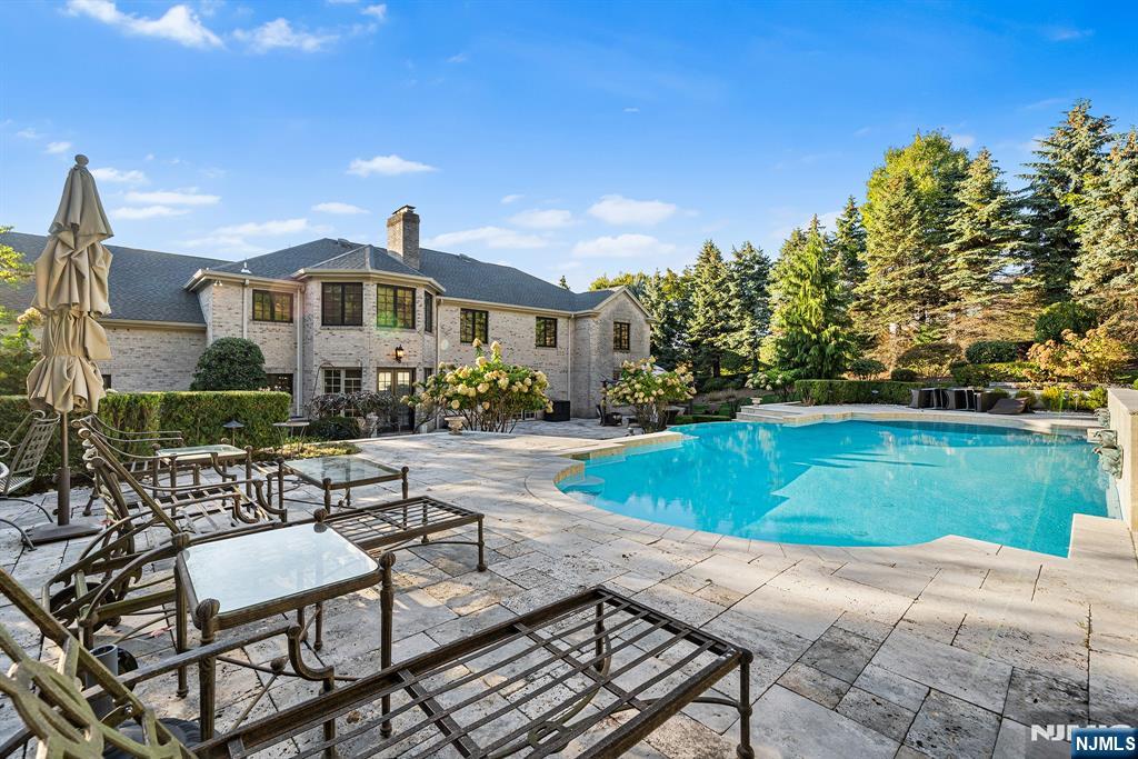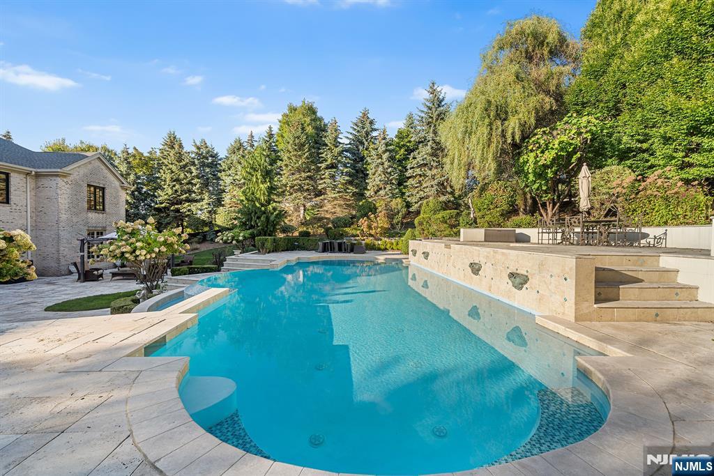 A stately brick Colonial located in the prestigious East Hill Estates. Built by acclaimed developer Joseph Di Staulo, this 6 bed, 8 bath residence offers over 6,300 SF of living space on nearly 1 acre of manicured grounds. The grand entry opens to a 2 story marble foyer, flowing into elegant formal rooms, a library and a sun filled great room with soaring ceilings and a wall of windows. A brand new gourmet kitchen with breakfast area makes entertaining seamless, while multiple fireplaces add warmth and character. The home has been freshly painted and all hardwood floors have been refinished. The 2nd level features a luxurious primary suite with spa like bath, along with 4 additional bedrooms. The finished lower level includes a recreation room, lounge, 2 baths, storage and separate entrance. Outside, the resort style backyard is a private oasis with an infinity edge saltwater pool, spa, waterfalls and expansive terraces, all set within Cresskill’s most sought after neighborhood.