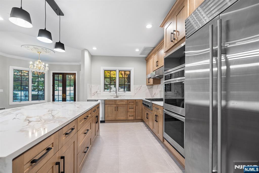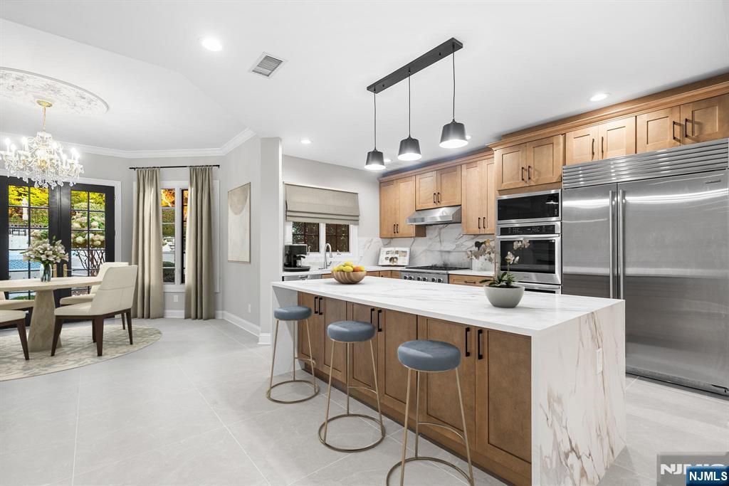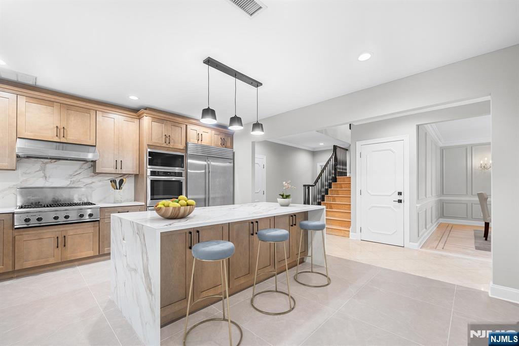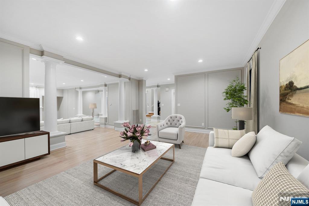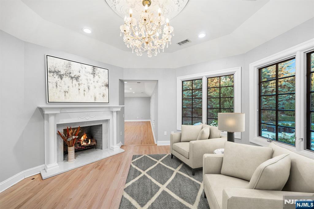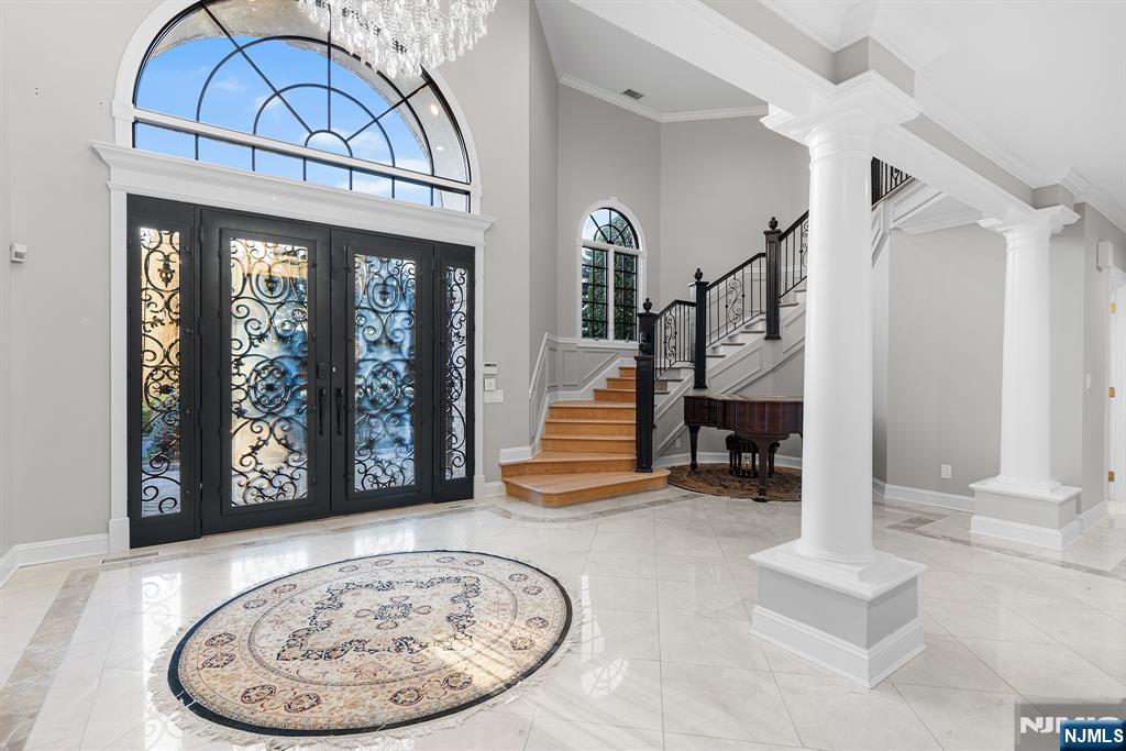 A stately brick Colonial located in the prestigious East Hill Estates. Built by acclaimed developer Joseph Di Staulo, this 6 bed, 8 bath residence offers over 6,300 SF of living space on nearly 1 acre of manicured grounds. The grand entry opens to a 2 story marble foyer, flowing into elegant formal rooms, a library and a sun filled great room with soaring ceilings and a wall of windows. A brand new gourmet kitchen with breakfast area makes entertaining seamless, while multiple fireplaces add warmth and character. The home has been freshly painted and all hardwood floors have been refinished. The 2nd level features a luxurious primary suite with spa like bath, along with 4 additional bedrooms. The finished lower level includes a recreation room, lounge, 2 baths, storage and separate entrance. Outside, the resort style backyard is a private oasis with an infinity edge saltwater pool, spa, waterfalls and expansive terraces, all set within Cresskill’s most sought after neighborhood.