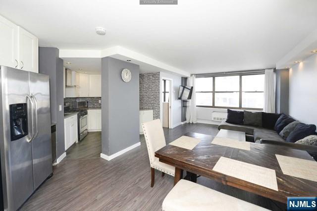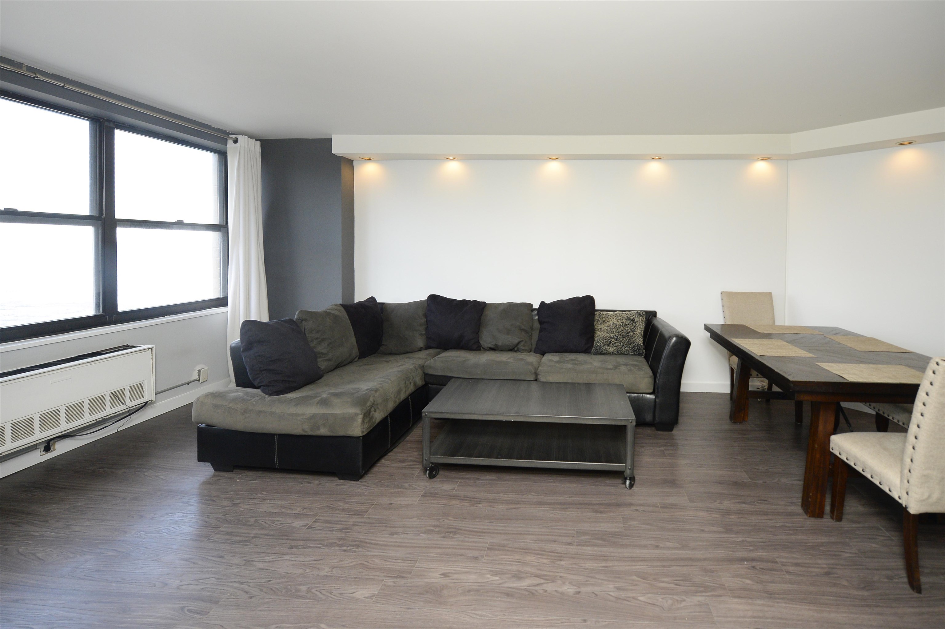 This beautifully renovated 2-bedroom, 2-bath 979 sft condo features direct NYC midtown/uptown & GWB views, modern finishes, spacious ensuite primary bedroom, hardwood & tile flooring throughout, as well as an open floor plan that allows the incredible sunrise to fill your entire living space w/ warmth & light. Located in the sought-after Galaxy Towers complex where luxury amenities & peaceful, easy living are just part of life. This includes ALL utilities, 24-hour concierge, security services, pools, hot tubs, exclusive spa & gym featuring high-end equipment, saunas, tennis & pickleball courts, landscaped outdoor sanctuary, conference, children' rooms,& much more! Perfectly situated in the heart of all the city has to offer, making any form of commuting a breeze, conveniently located near James J Braddock North Hudson County Park and North Hudson Dog Park. The Galaxy welcomes up to 2 pets.