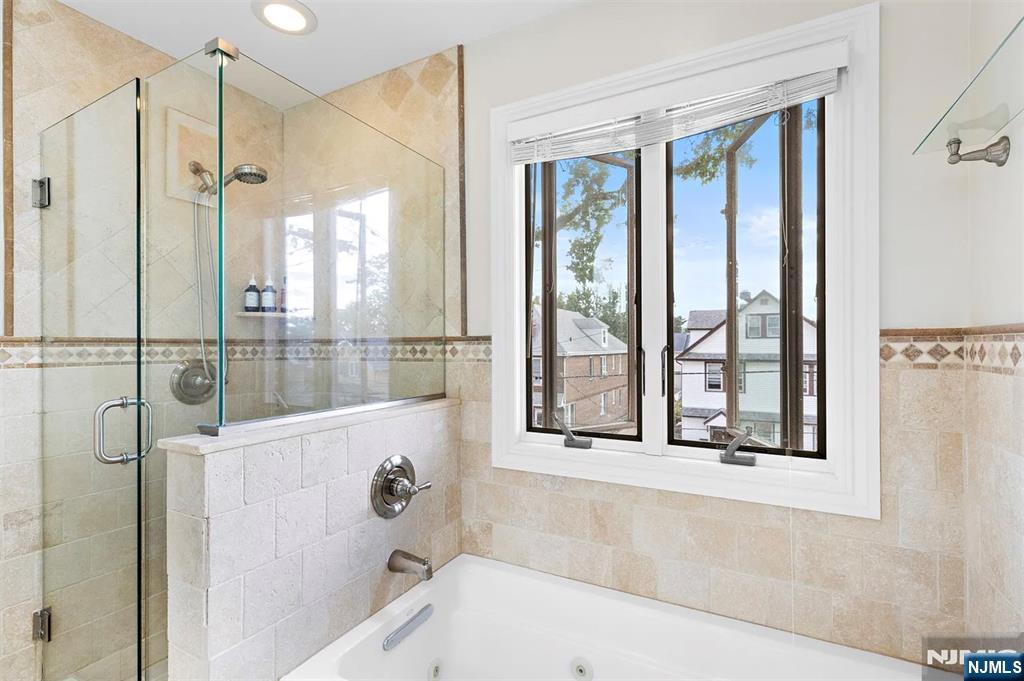 Situated in one of the most convenient locations in town with access to the downtown area and its shops and many restaurant options. Mere moments away to an NYC bus, Fort Lee and Edgewater. This unique layout feels more like a home than most you'll see. Enjoy a large eat in kitchen with an oversized wraparound island, many closets throughout, vaulted ceilings and laundry on the second floor. The primary suite provides dual closets and dual vanities in the bathroom that gets sun drenched throughout the day from the huge skylight. Whole house water softening system and a Large 2 car garage with work station and built in storage make it the perfect space for enthusiasts. Enjoy your deck off the kitchen or your fully fenced patio and side yard.