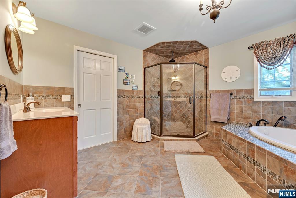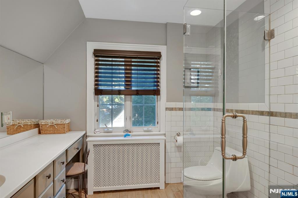 Character and comfort abound in this sun-filled 4-bedroom, 3.5-bath Tudor set on 1/3 acre in the coveted East Hill of Demarest. The original arched front door leads you to the living room with a gas fireplace, a cozy home office, a formal dining room, and an open-concept kitchen and family room. Built-in shelving, a second gas fireplace, and sliding glass doors to the backyard make the family room the ideal spot for family gatherings. Upstairs, three bedrooms and two full baths accompany an expansive primary suite boasting a cathedral ceiling, huge walk-in closet, and spa-like bathroom with soaking tub, stand-up shower, and two vanities. Relax on the primary bedroom balcony overlooking the backyard oasis complete with large slate patio, bubbling water feature and inviting fire pit. The partially finished basement and finished attic offer flexible spaces for work or play. This move-in ready home, with it's unmatched curb-appeal, includes a 4-zone sprinkler system, fine hardwood floors throughout, 4-zone central air, 3-zone heat, additional electric hot water heater, and a separate generator. Don't miss this opportunity to live in charming Demarest, known for its award-winning schools and close-knit community.
