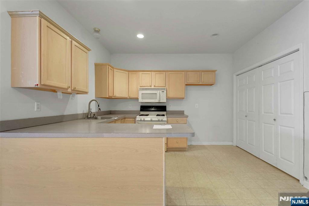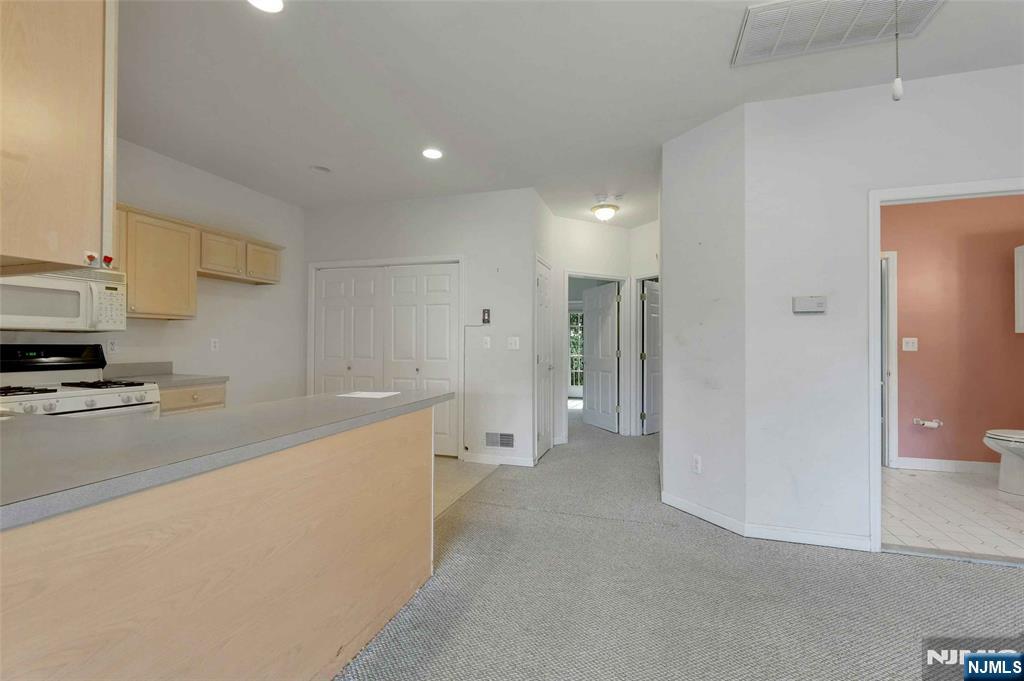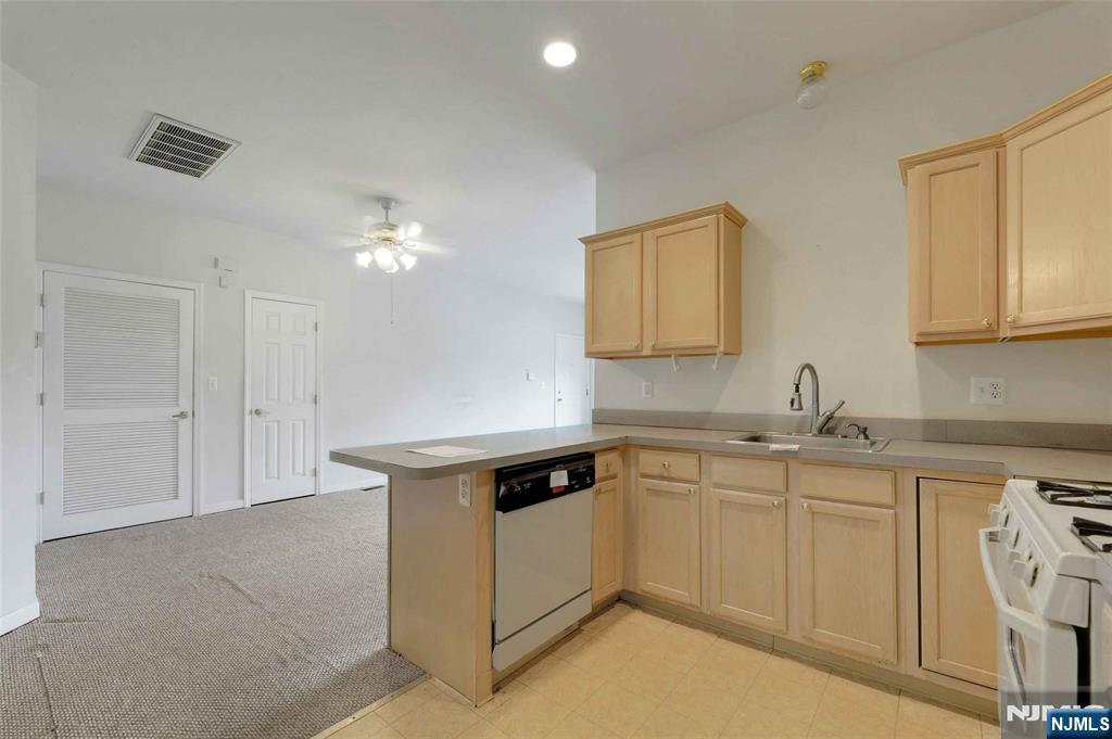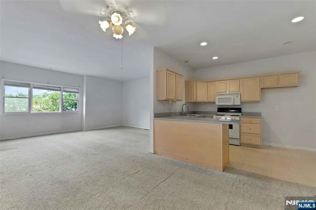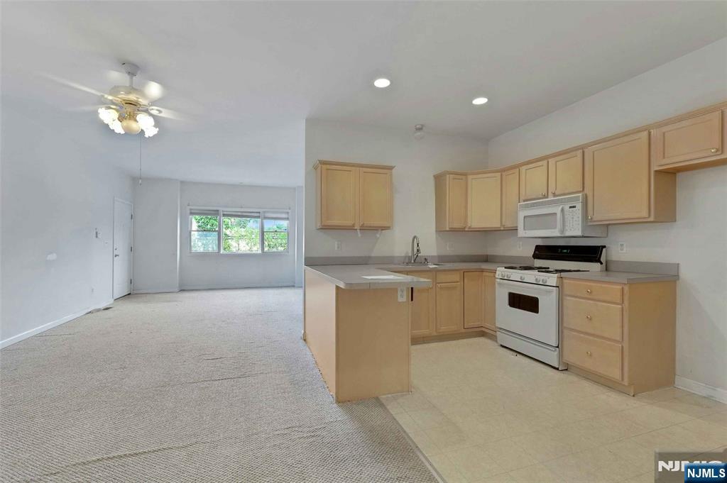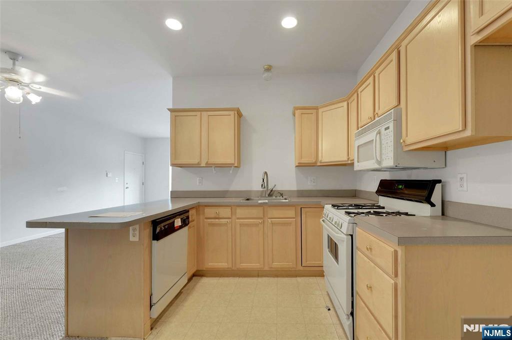 Welcome to Brookside Commons, a sought-after 55+ community in Saddle Brook. This first-floor unit features an open floor plan with a spacious living room, dining area, and kitchen complete with a breakfast bar and plenty of cabinet space. The home offers two generously sized bedrooms, each with its own private terrace overlooking the peaceful rear yard, perfect for enjoying morning coffee or quiet relaxation. An oversized bathroom provides convenient access from both the primary bedroom and the main living area. Additional highlights include central air, forced hot air heat, two designated outdoor parking spaces, and ample guest parking. Ideally located close to major highways, shopping, and with a NYC bus stop right at the corner, this home offers both comfort and convenience.