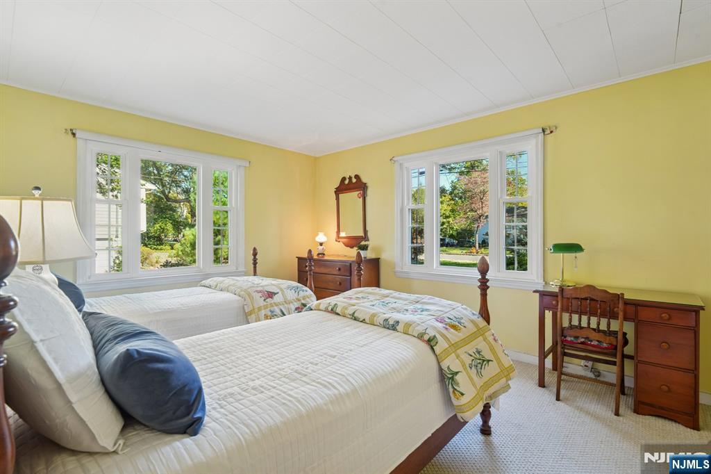 Spectacular views and golf course access! There are only so many homes in the Ramsey Golf and Country Club that have this kind of view and access to the private golf course, and this is one of them. Being offered for the first time in 45+ years, this charming 4 BR, 3 BA Expanded Cape beside the 15th tee box has stunning western exposure in a location that can't be beat. Step inside and discover a home that has almost 3000sf, filled with character and potential. An entry foyer leads you to a large formal living room with fireplace, formal dining room and a sun porch, a perfect spot to enjoy a book. The eat in kitchen has sliders to the back patio and sweeping views of the golf course and lake. Down the hall are two bedrooms, a large full bath and a cozy den that could be transformed into a bedroom or office. The 2nd level has 2 large bedrooms, a full bath and lots of storage. The huge basement is partly finished with a fun bar and fireplace, laundry and a sauna where you can warm up after a golf round in the chilly air. Enjoy morning coffee on the patio with peaceful views, meet friends at the clubhouse, pool, or first tee, or stroll into downtown Ramsey for shopping, dining, and access to the NYC train – all just minutes from your door. RGCC is a unique community with a brand new, elegant clubhouse, 18-hole golf, pool with open air bar, paddle tennis/pickleball, kayaking, social events for all ages and much more. Don’t miss this chance.