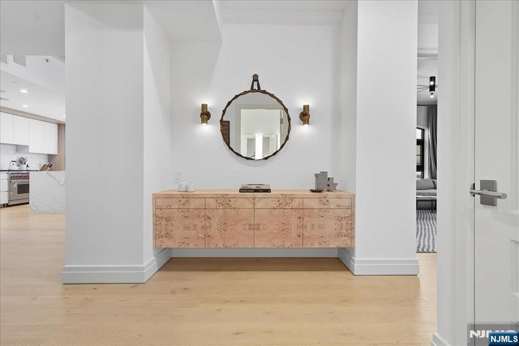Step inside this expansive 2,456 sq ft, three-bedroom + den, 3.5-bath residence at the iconic Wonder Lofts, where Hoboken’s industrial history meets sophisticated modern design. Originally part of the Wonder Bread factory, unit 508 has been thoughtfully reimagined by prominent local designer Joan Enger of J. Patryce Design & Co, while preserving the original character; exposed brick, soaring steel beams, and concrete posts. Features include custom millwork and sleek design throughout, beginning upon entry with a built-in mudroom. Bespoke cerused rift white oak base cabinets, upper cabinets w/matte lacquer door frames, and cane door fronts will help keep everything neat and organized. The expansive open floor plan is designed for both style and function. The chef’s kitchen pairs off-white cabinetry with white oak trim, Calacatta Lava countertops and backsplash, a dramatic waterfall island, and a full-height pantry with pullout drawers. Top-tier appliancesâ€â€including a Sub-Zero refrigerator, Wolf vented gas range and oven, Bosch dishwasher, microwave drawer, and under-cabinet wine fridgeâ€â€make the space as practical as it is stunning. Just beyond, the kitchen transitions effortlessly into a vast dining area, anchored by an open-backed, leather-wrapped corner banquette, accented with modern wall paneling and a handmade Blueprint Lighting fixture. The flow continues into your sophisticated living space. Open the monumental arching oak pocket doors into a sun-drenched corner